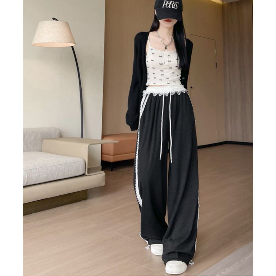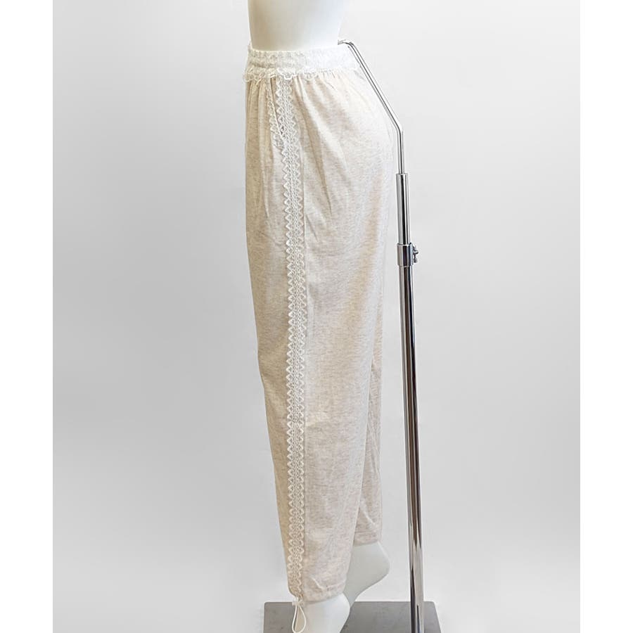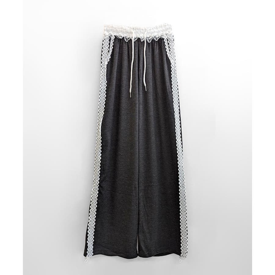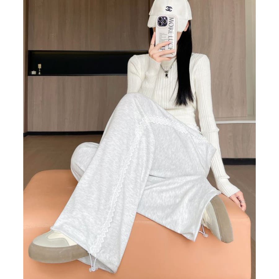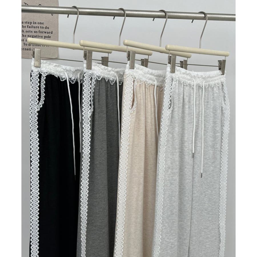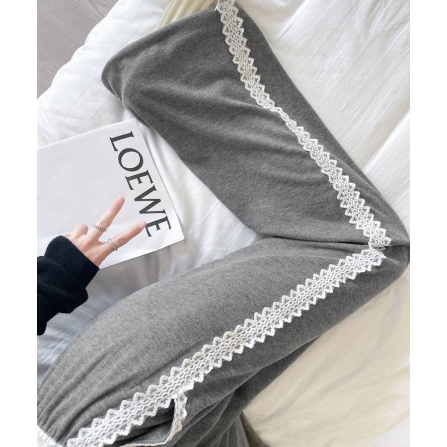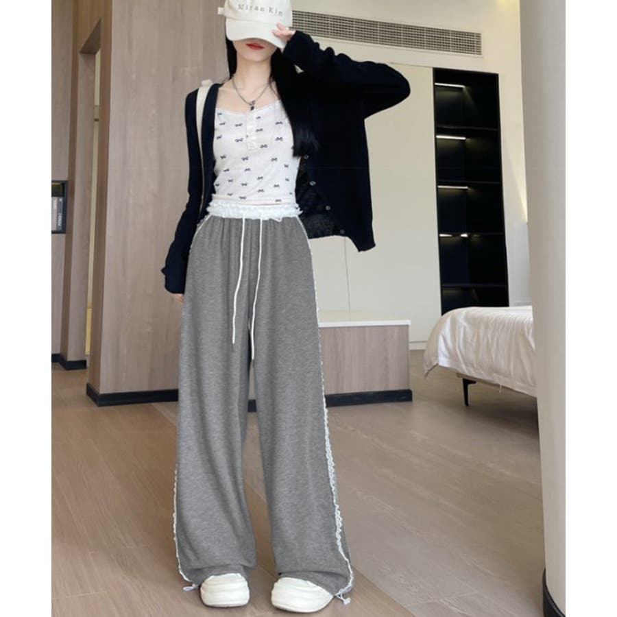 レーススウェットパンツ サイド刺繍 イージーパンツ