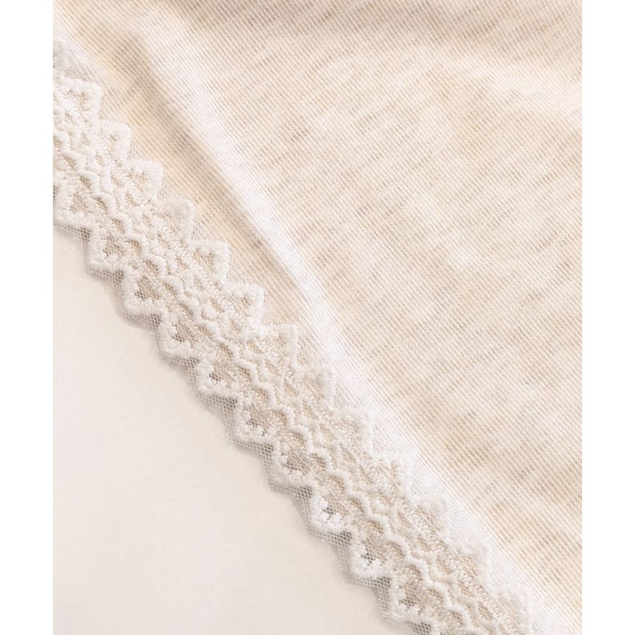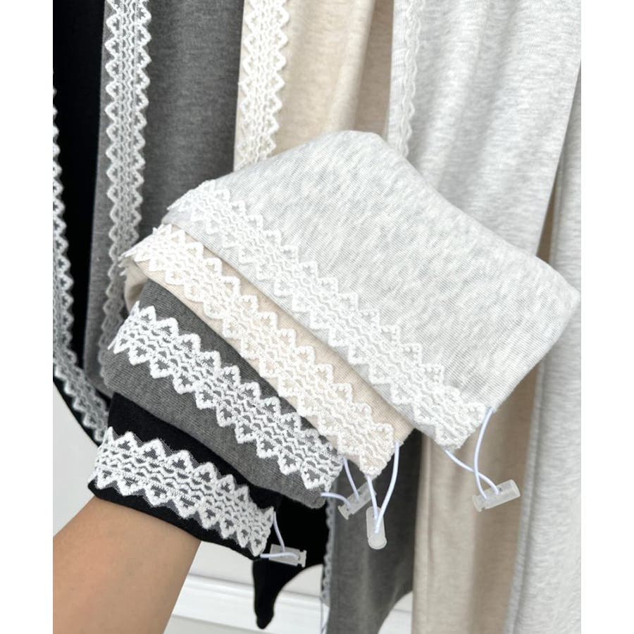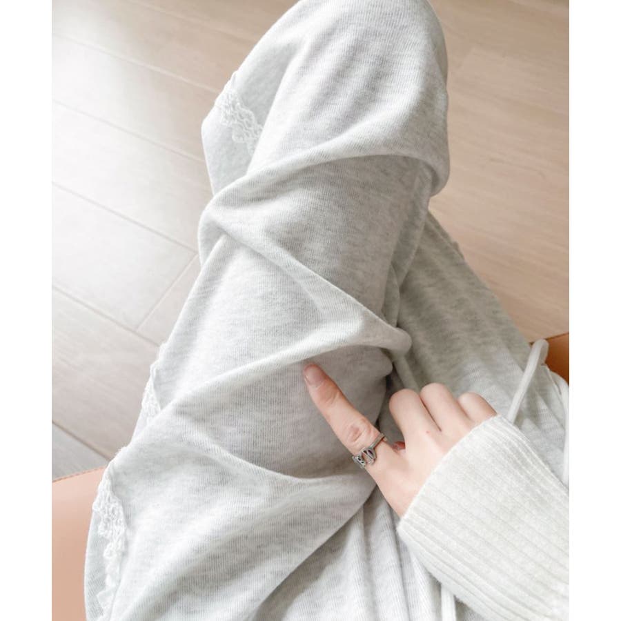 シンプルなスウェットにレースが施された、