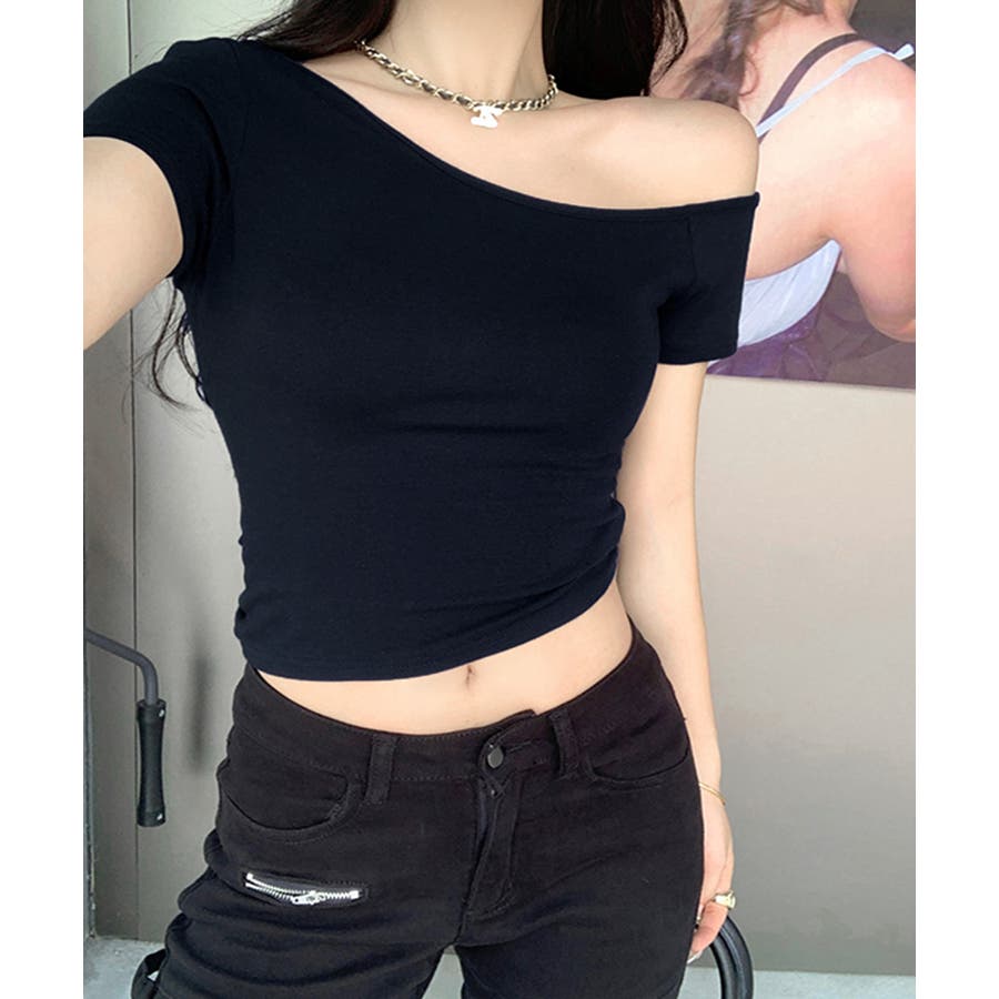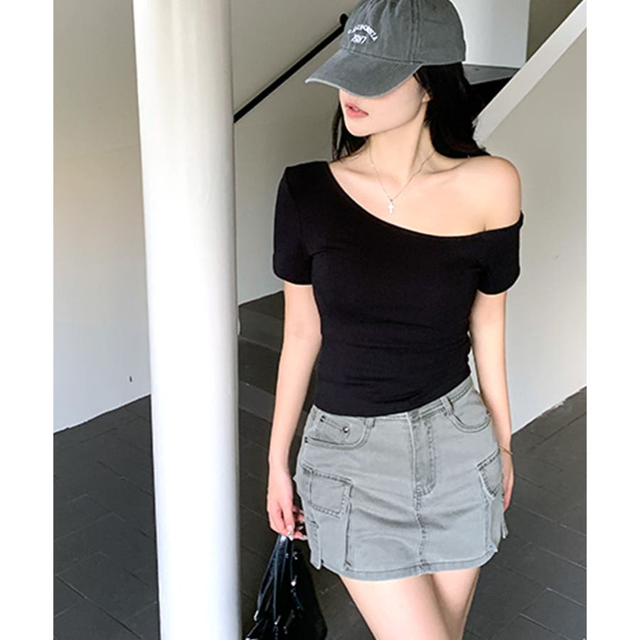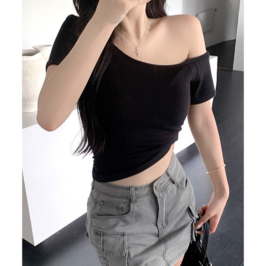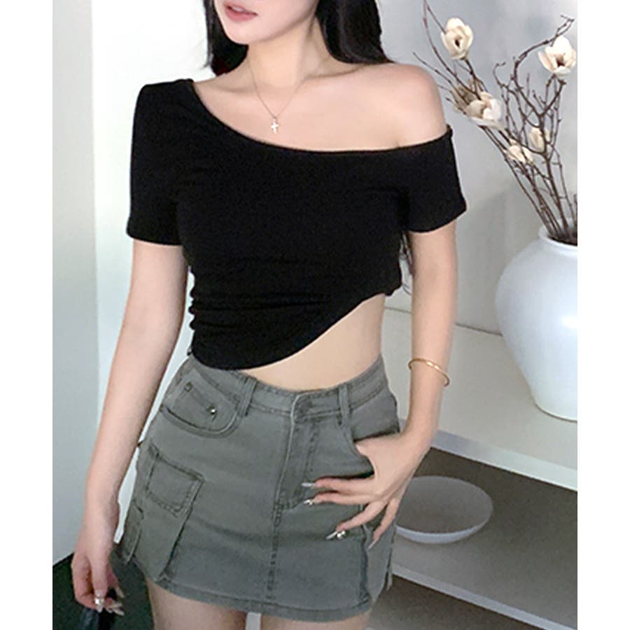 ワンショルダー半袖トップス Tシャツ カットソー