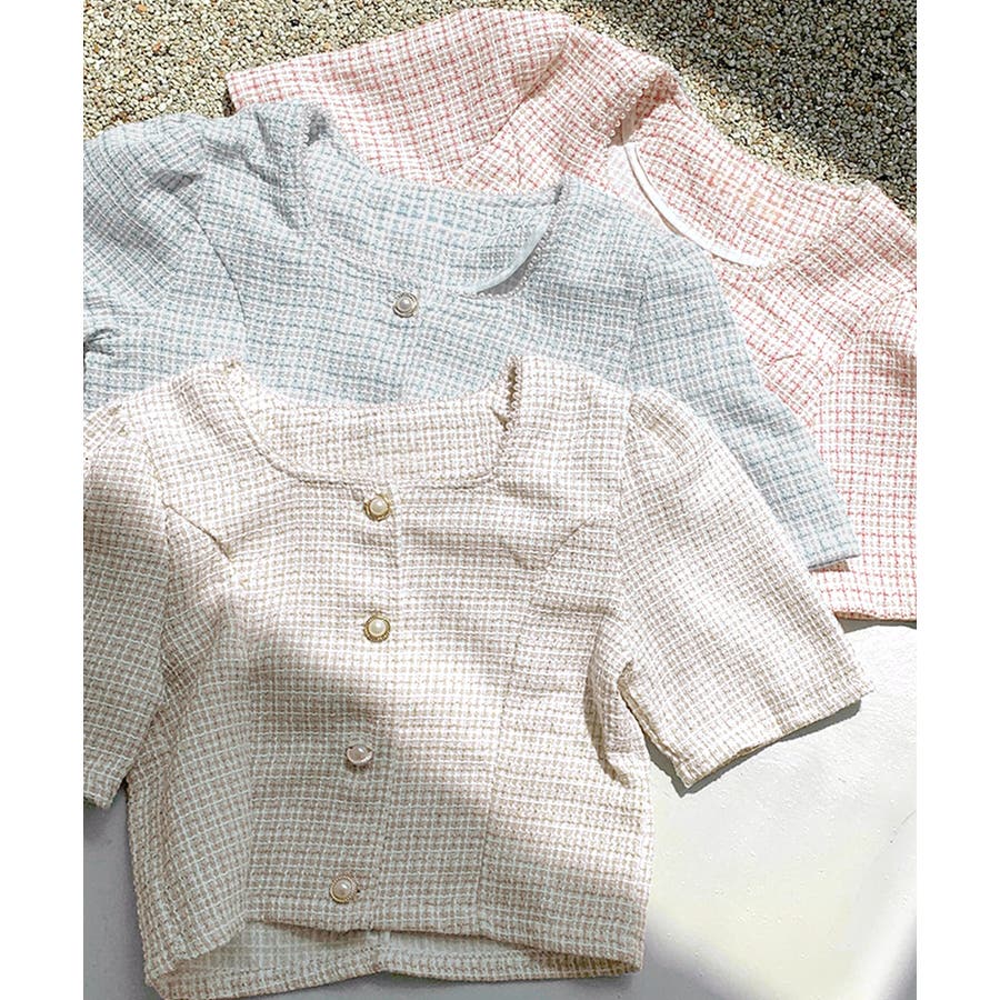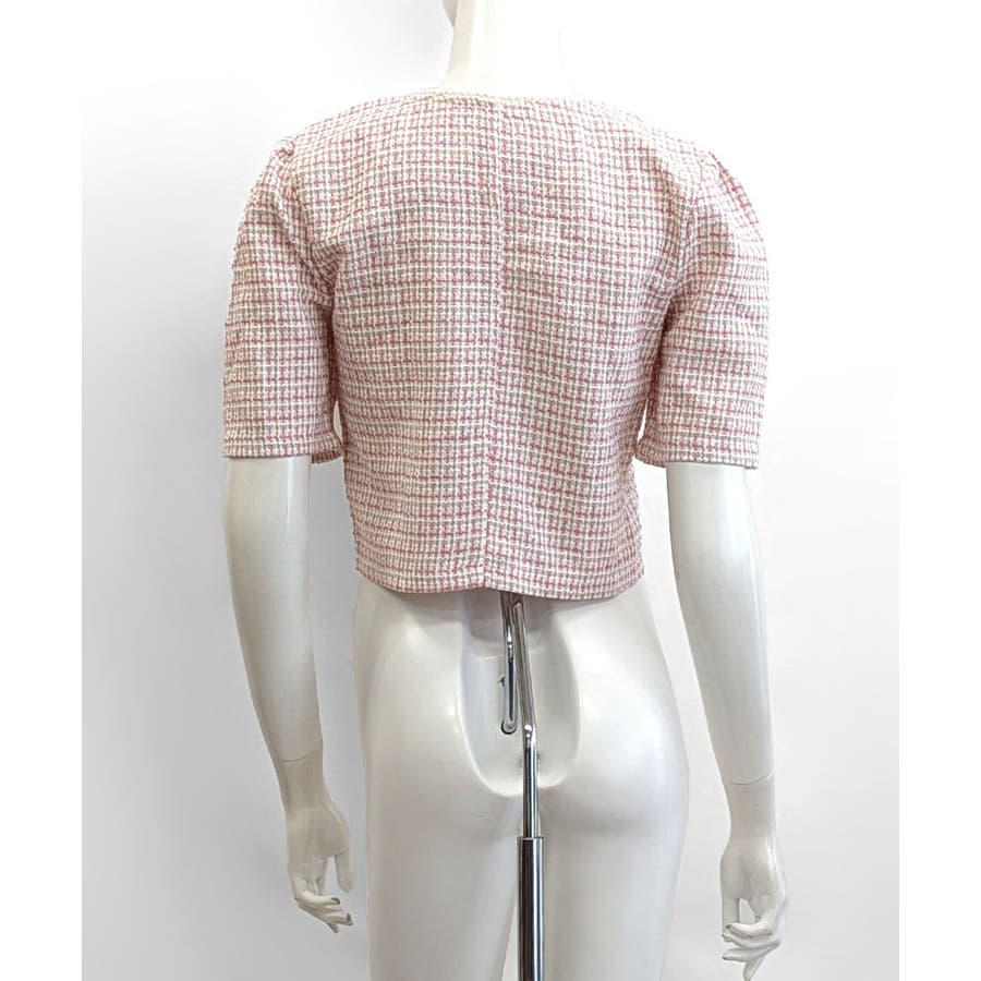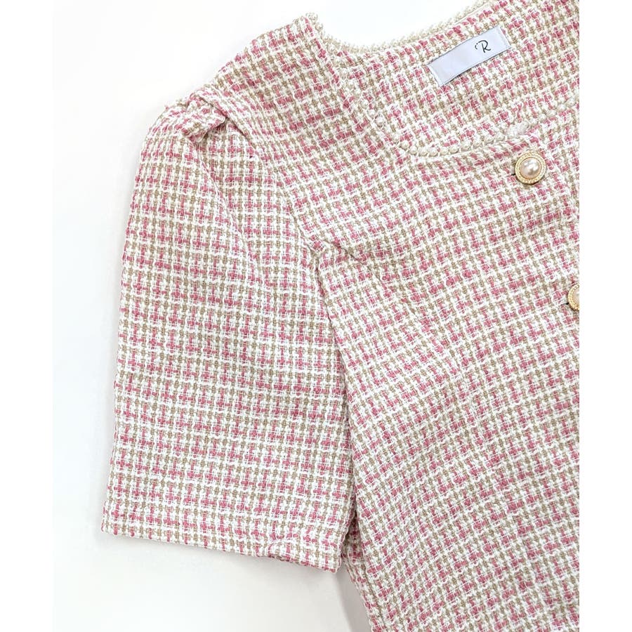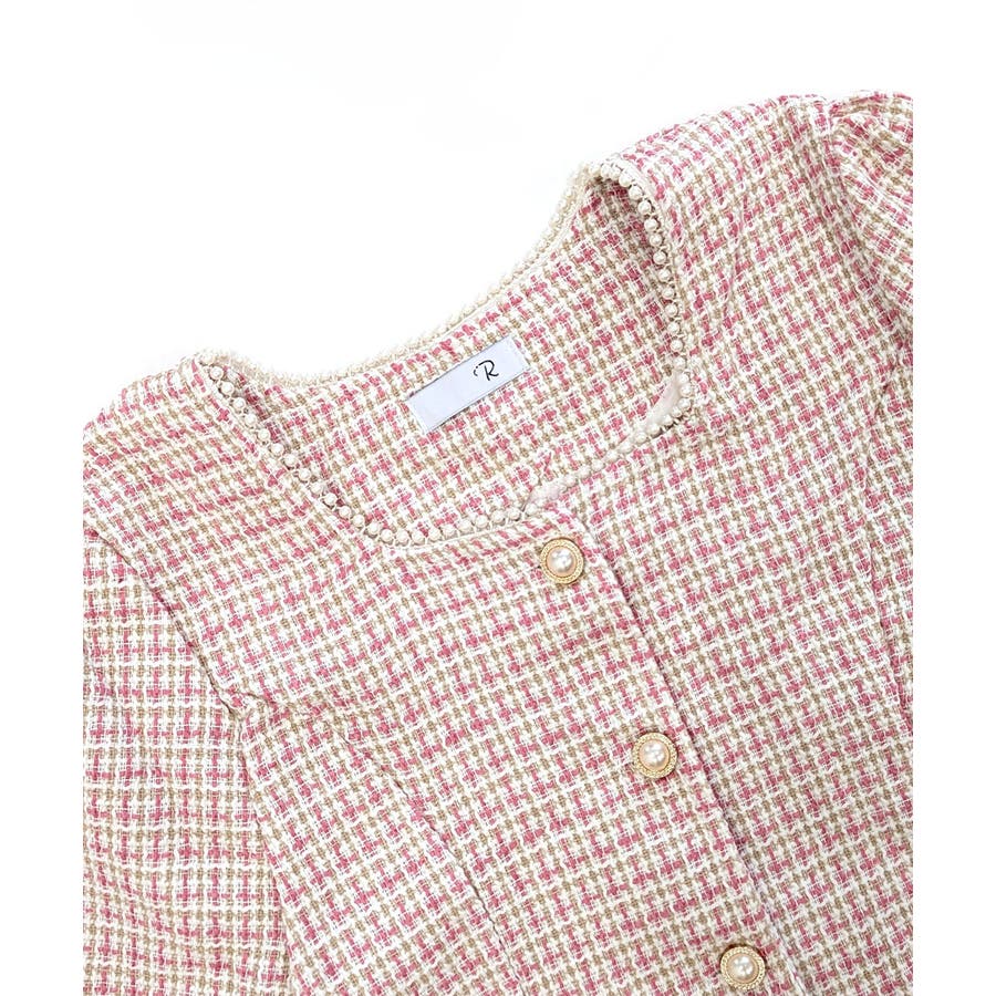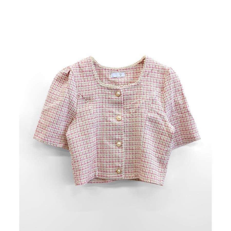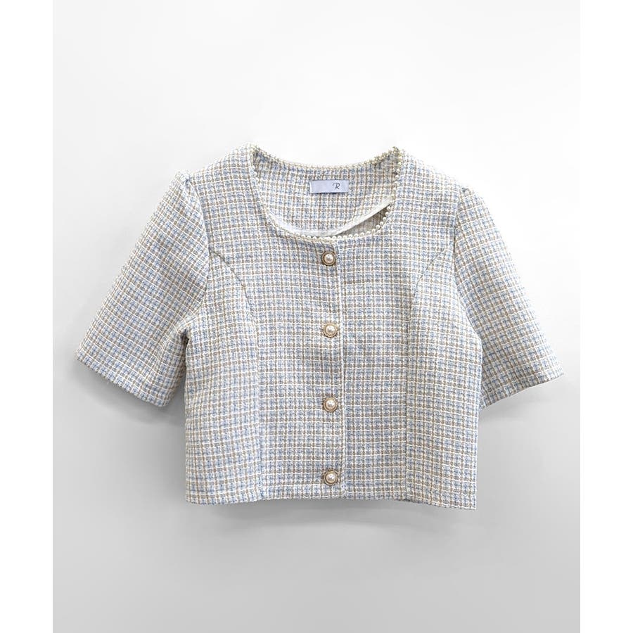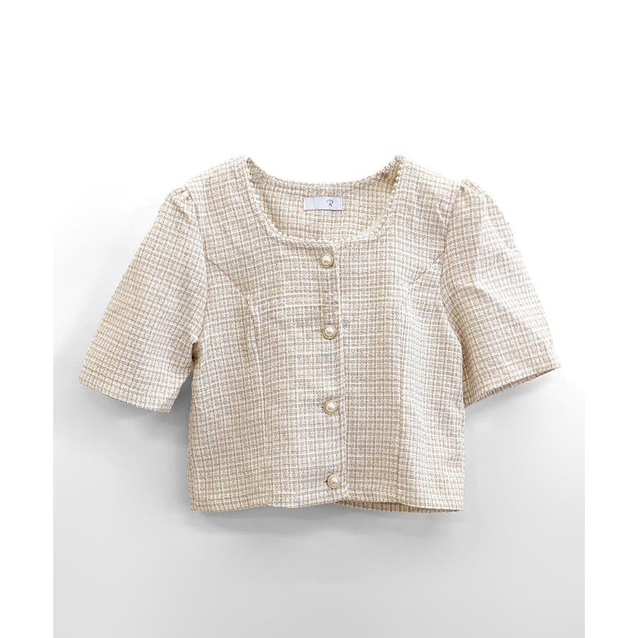ショート丈ツイードジャケット 半袖 ノーカラージャケット