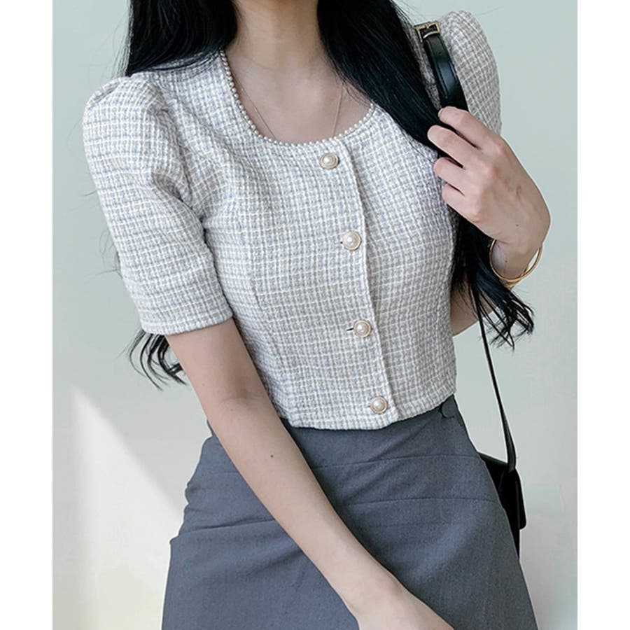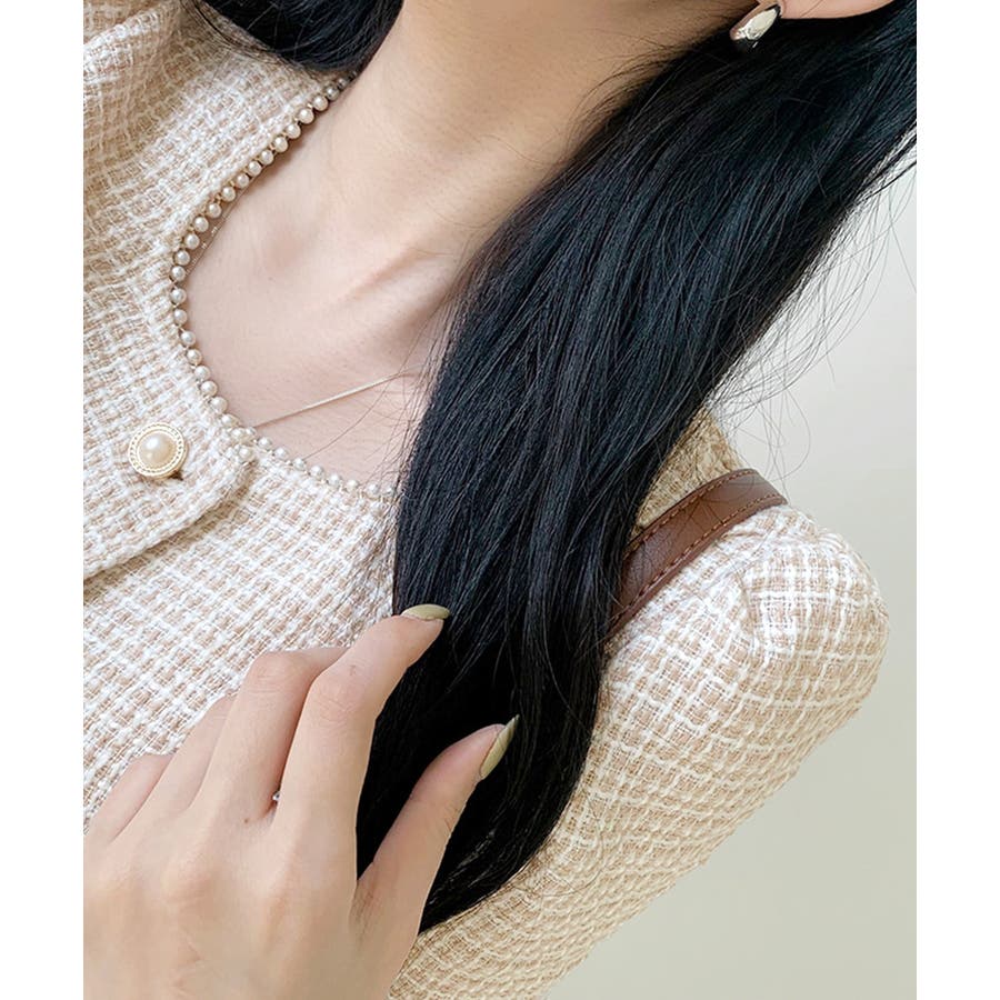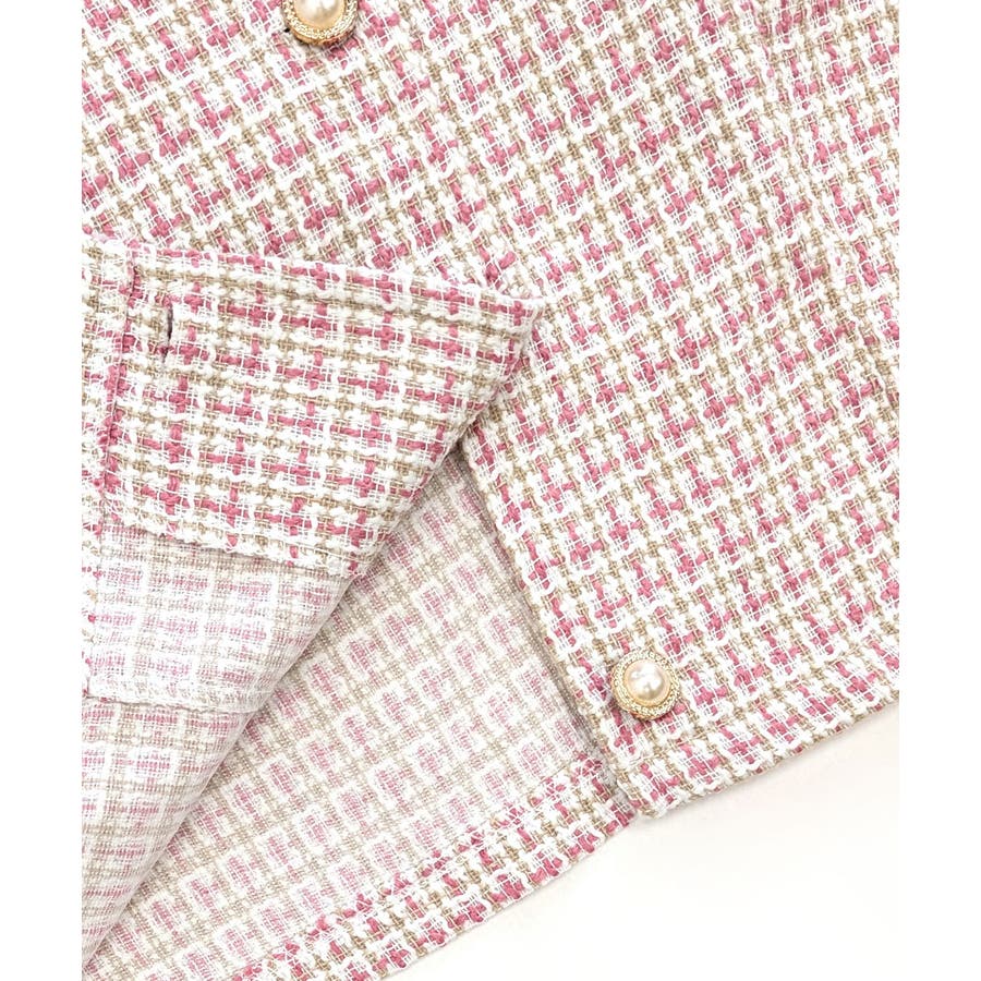 ・多色使いした立体感のあるツイード生地で華やかな印象に。