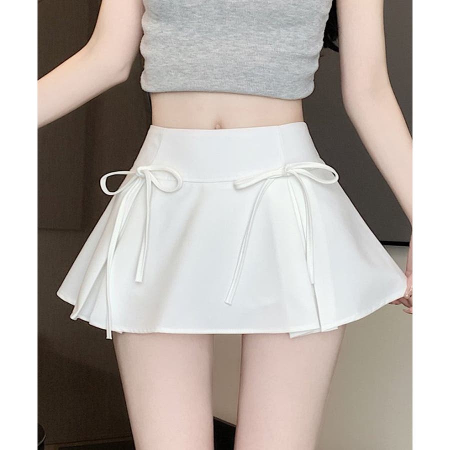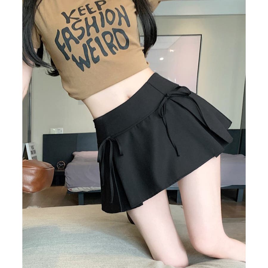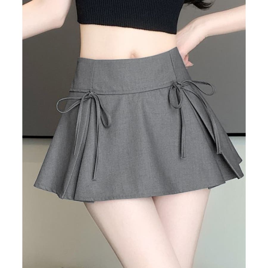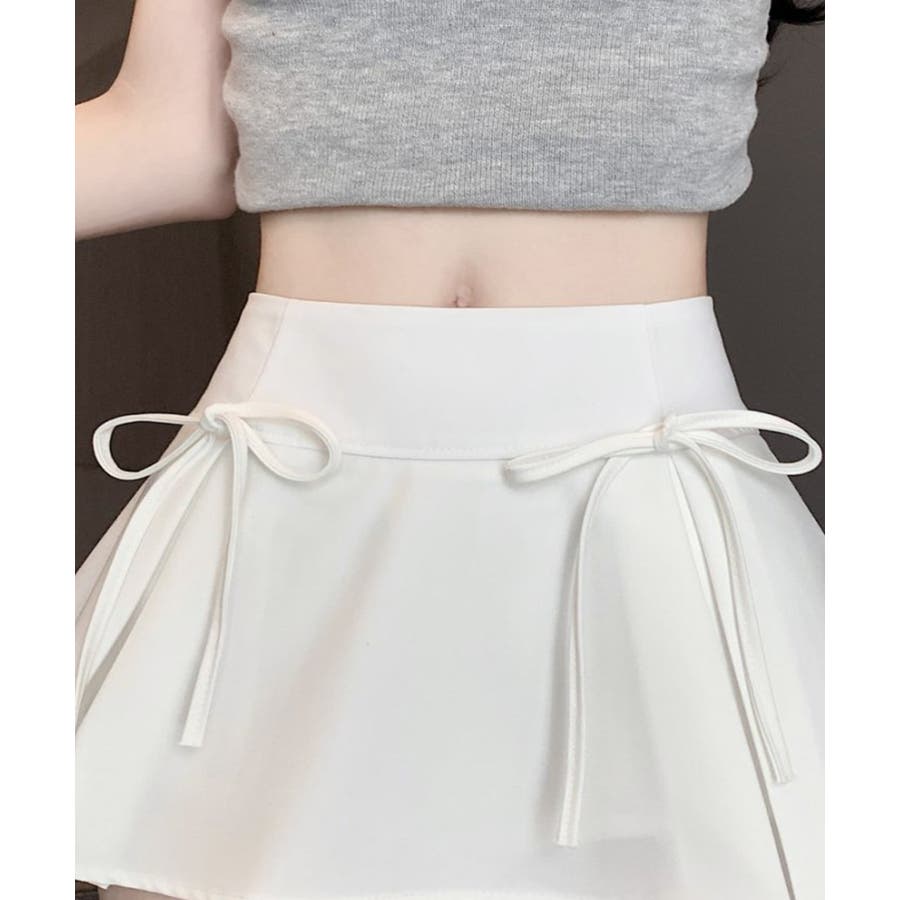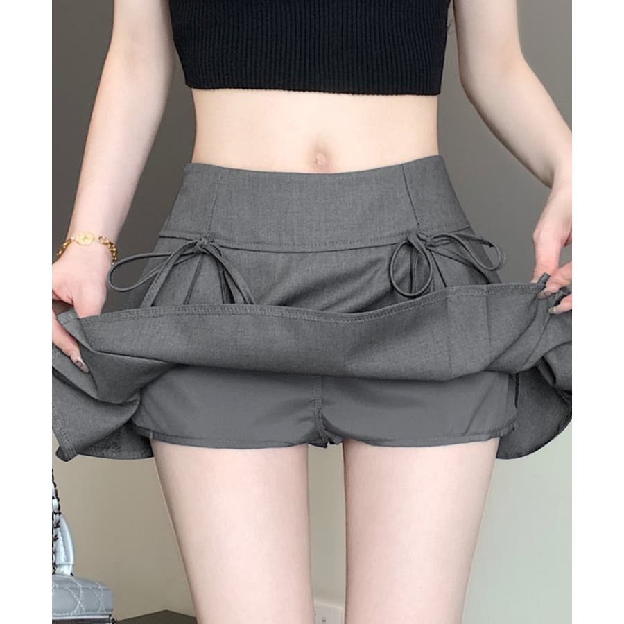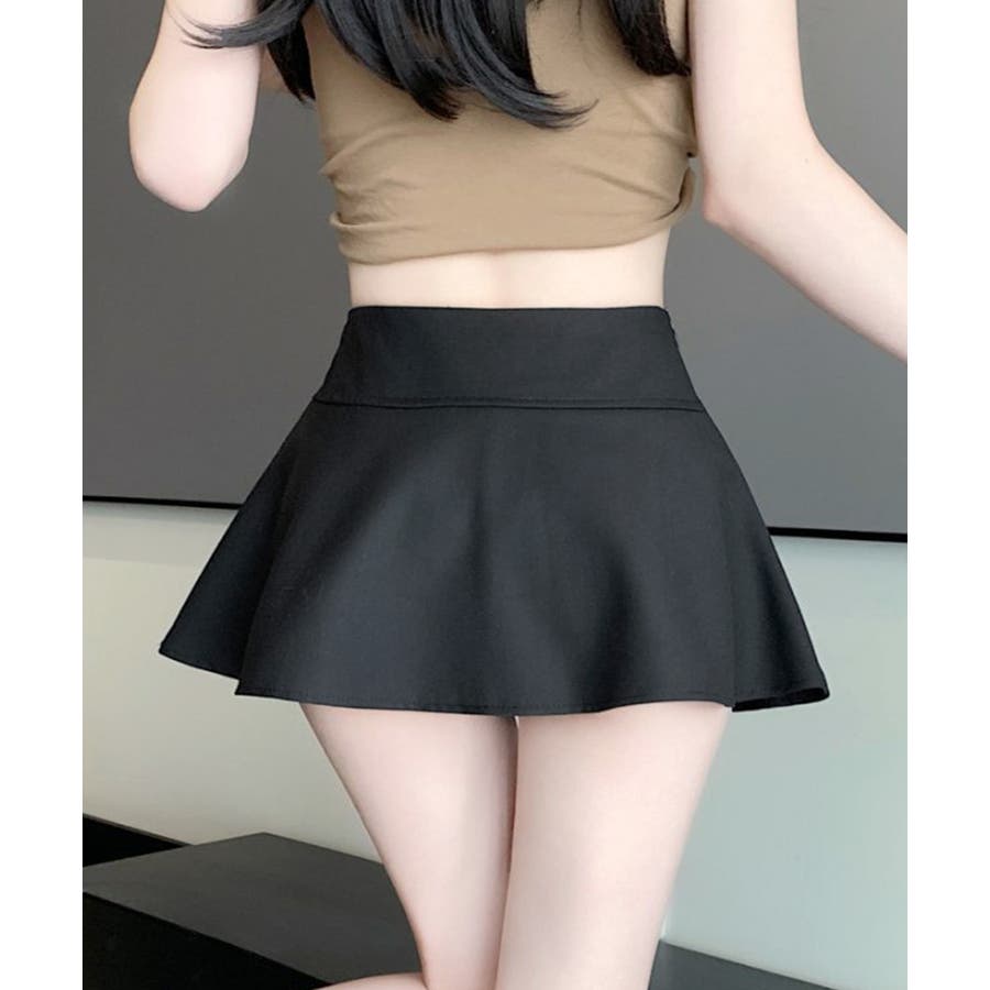 【ブラック】リボンミニスカート インナーパンツ付き フレアスカート
