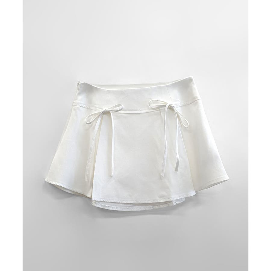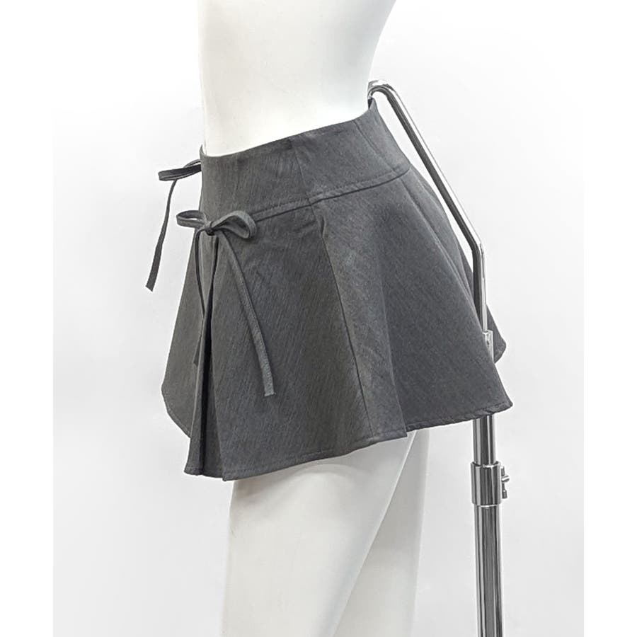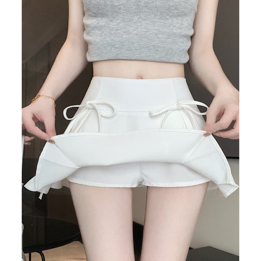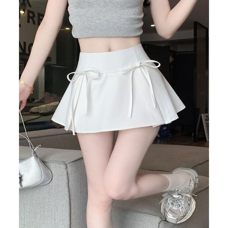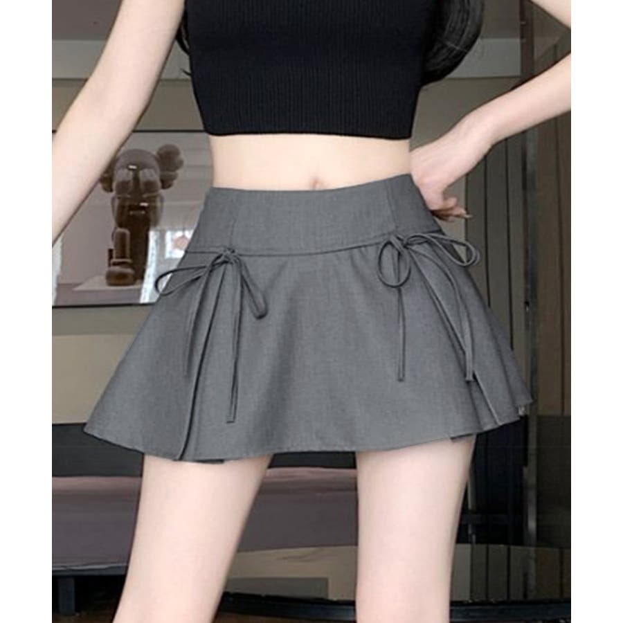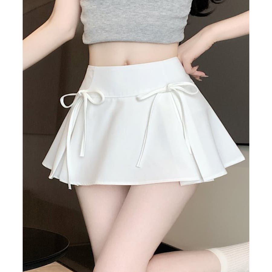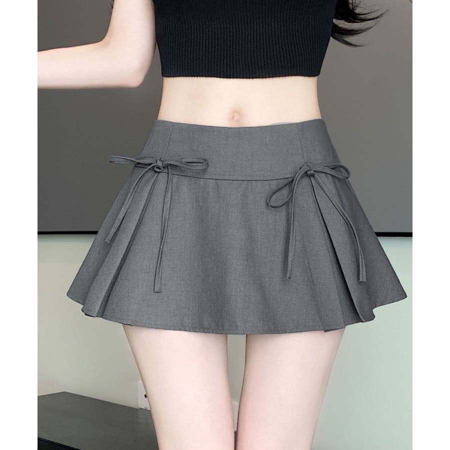 【ブラック】リボンミニスカート インナーパンツ付き フレアスカート