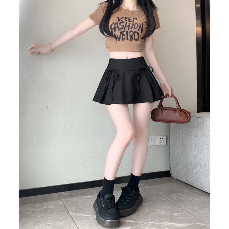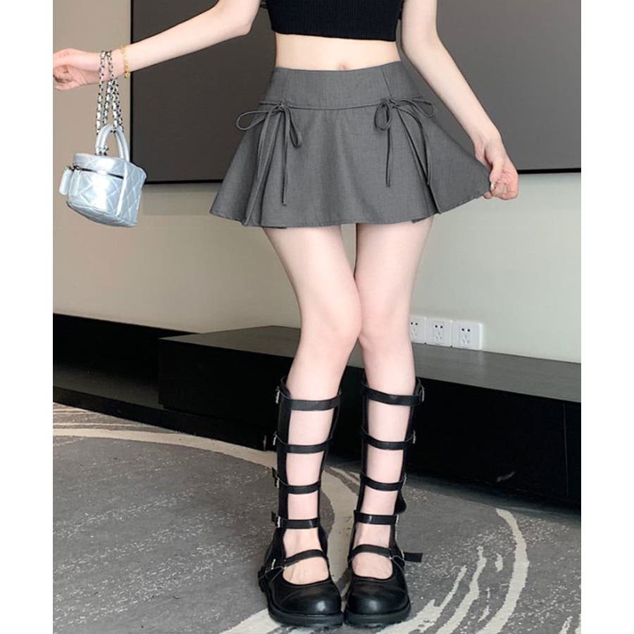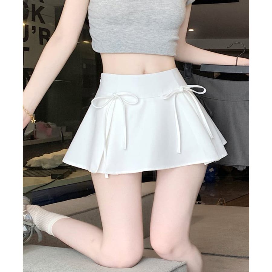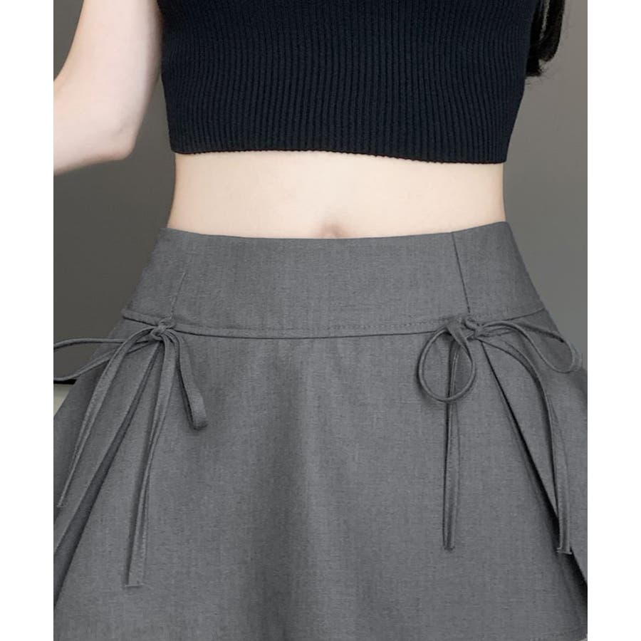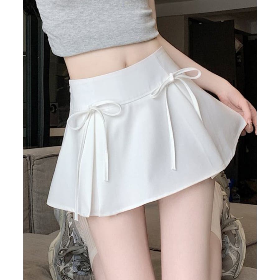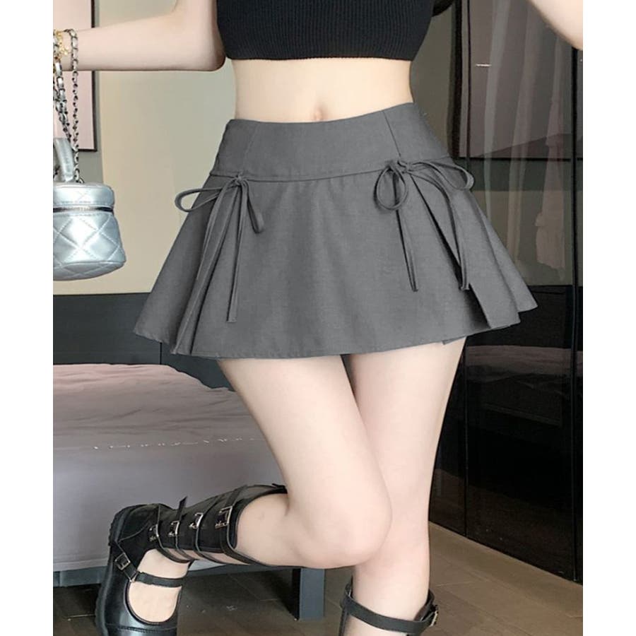 【ブラック】リボンミニスカート インナーパンツ付き フレアスカート