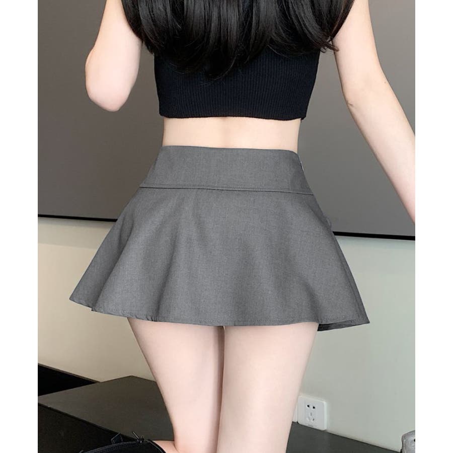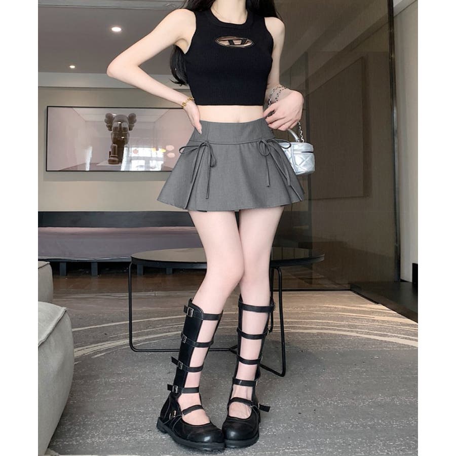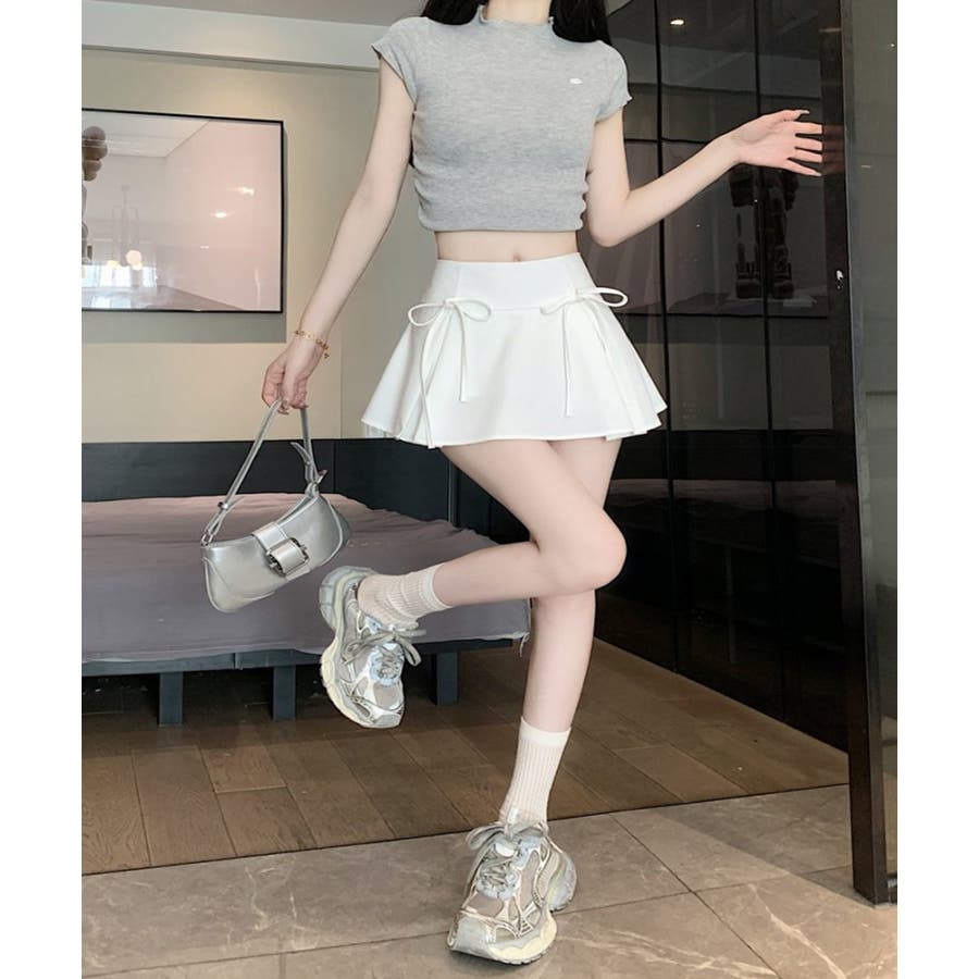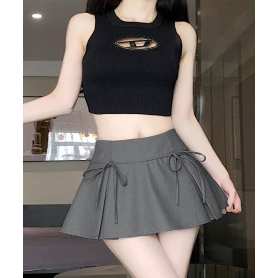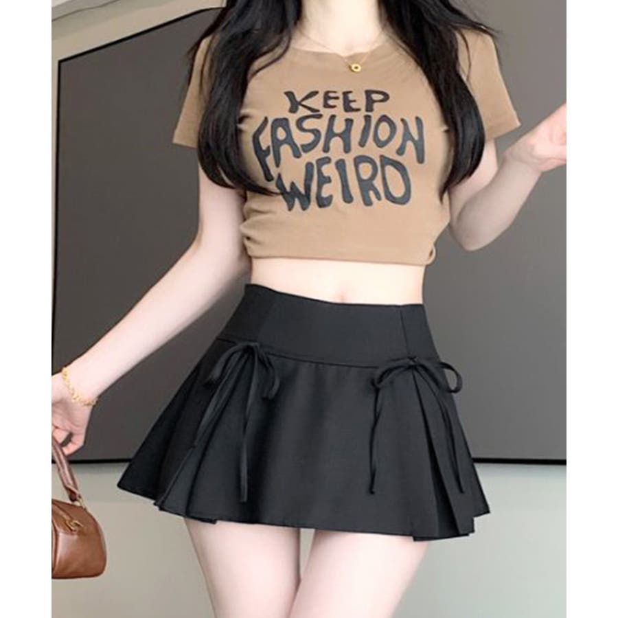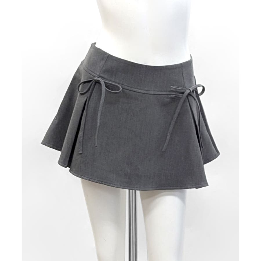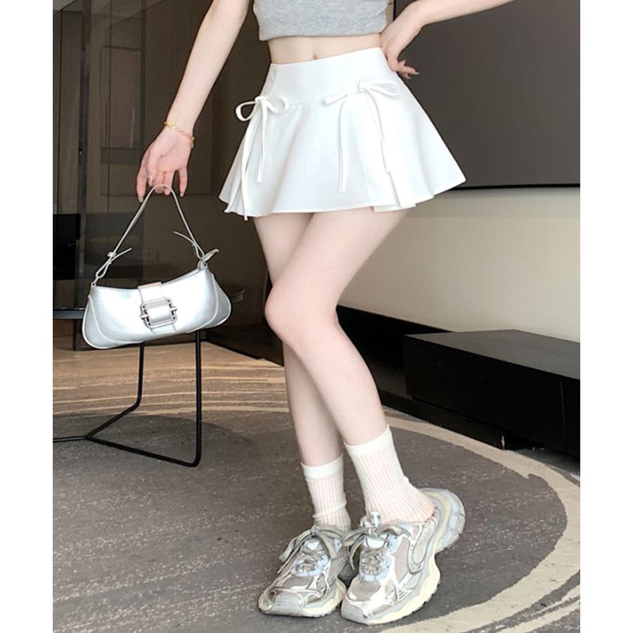 【ブラック】リボンミニスカート インナーパンツ付き フレアスカート