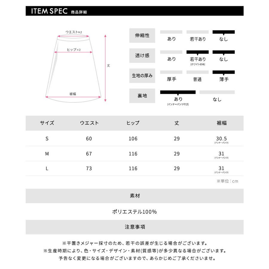 [L] ウエスト:73cm / ヒップ:116cm / 丈:29cm / 裾幅:31cm(スカート部分:70.5cm)