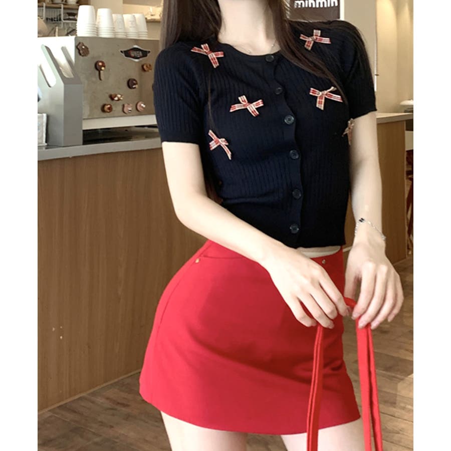 トレンドのリボン付きカーディガン。