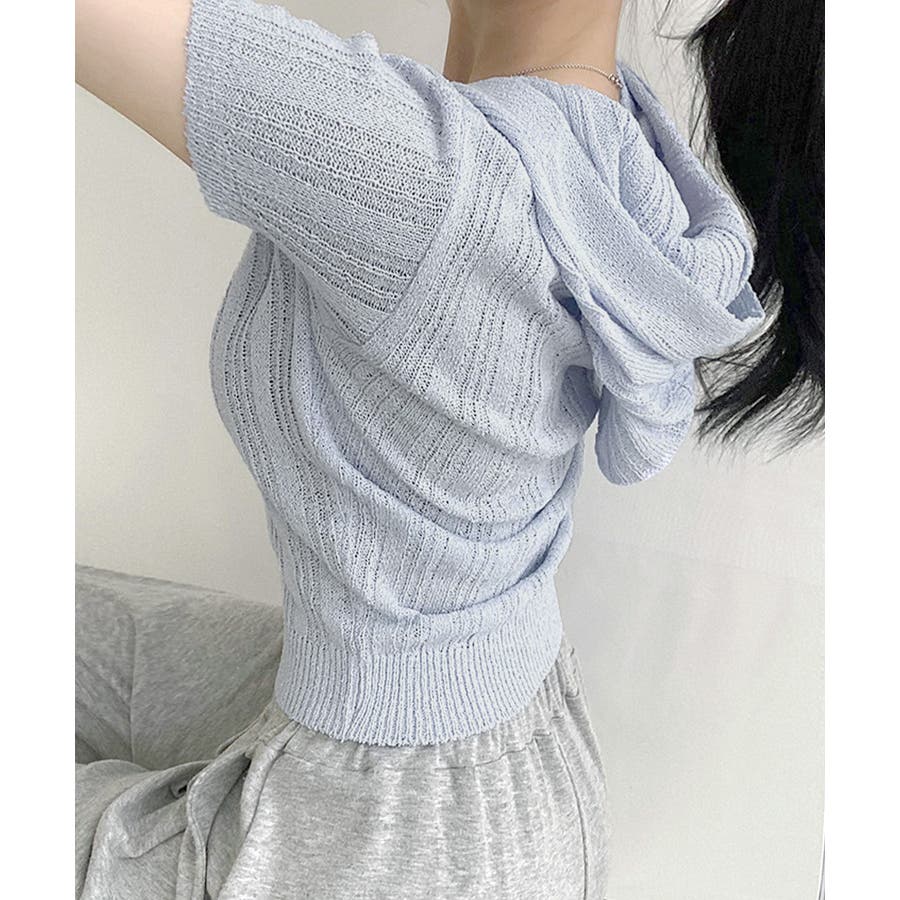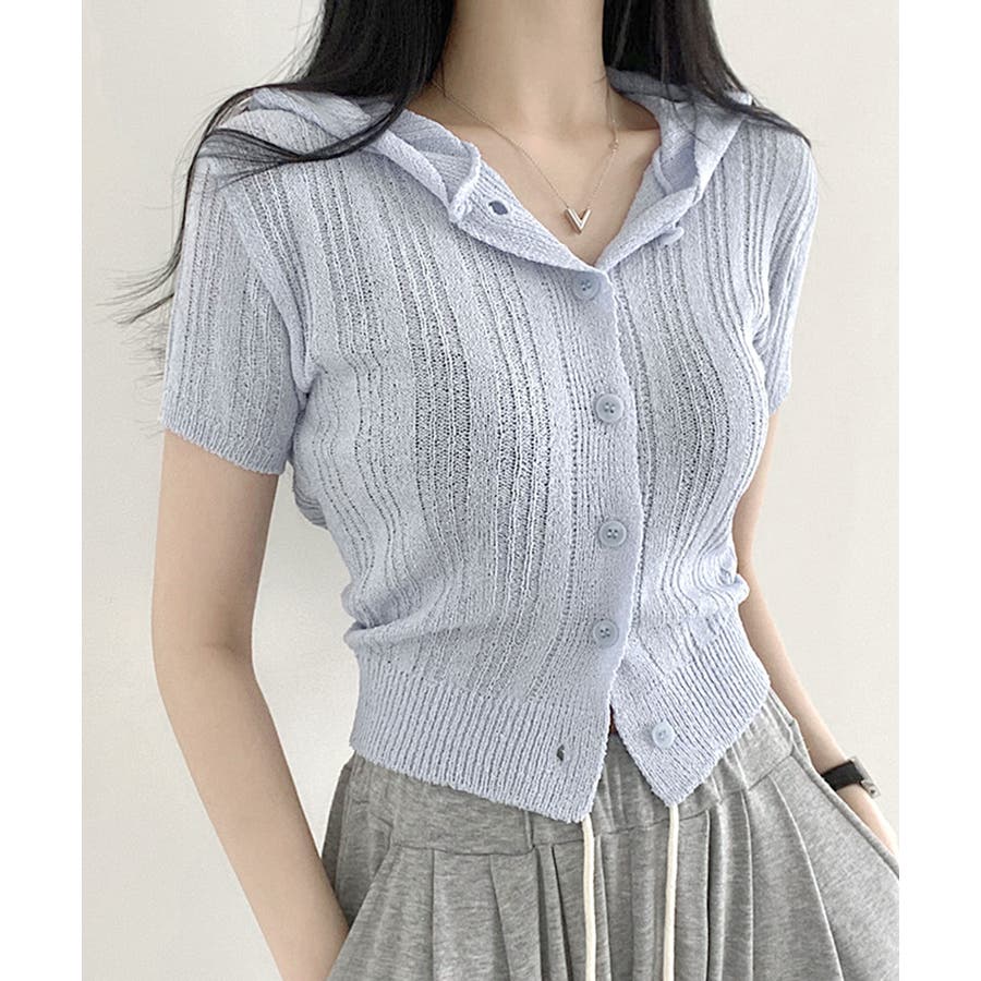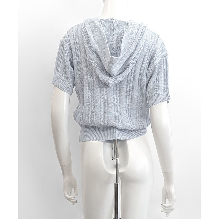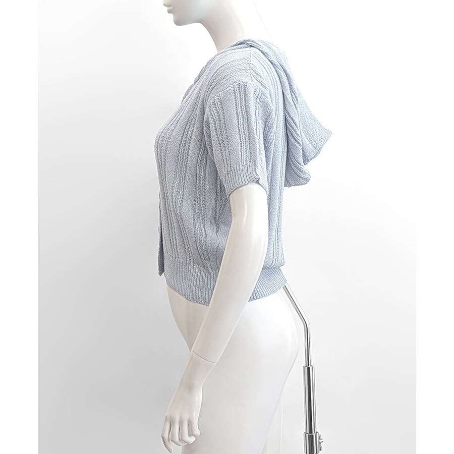 フード付きニット半袖カーディガン サマーニット ニットカーデ