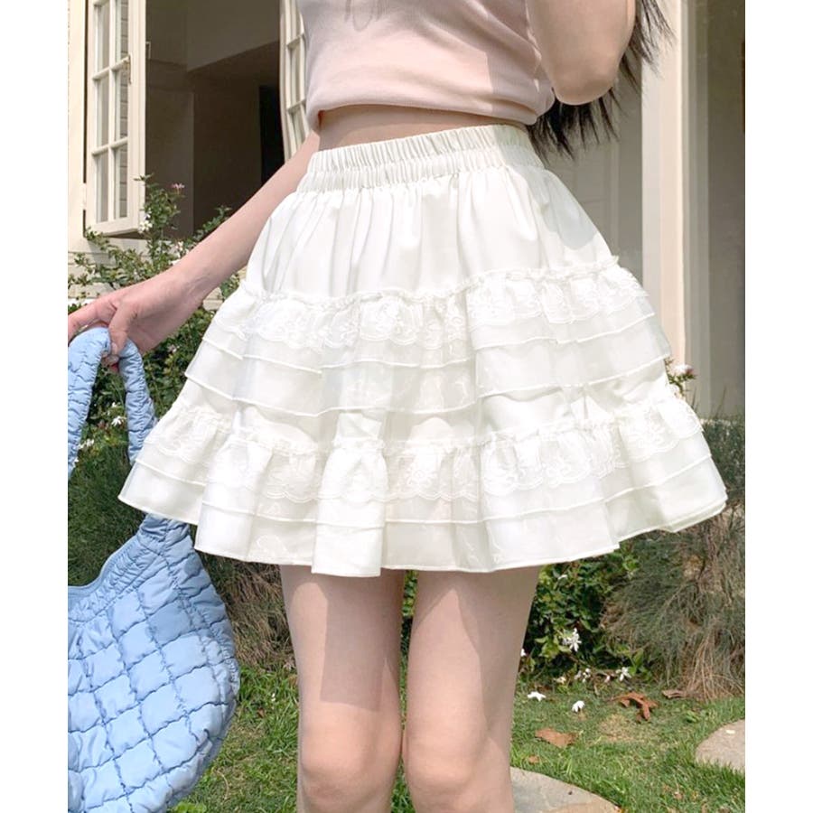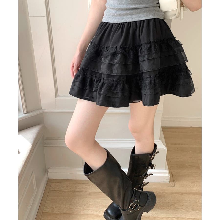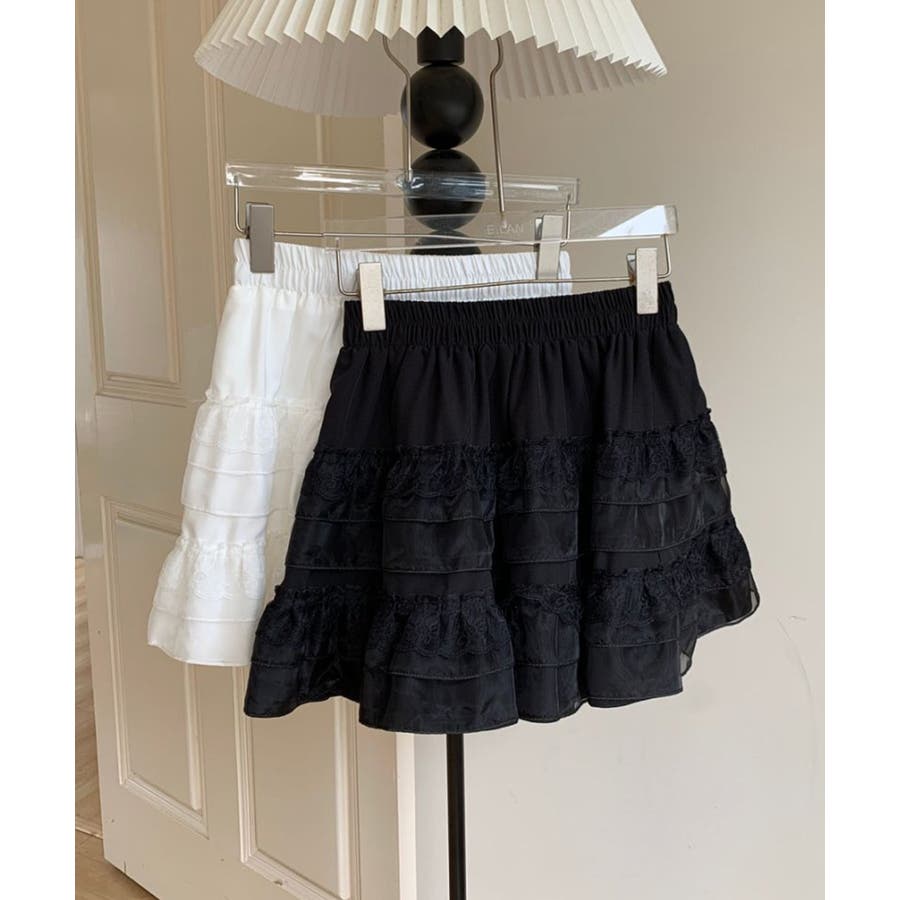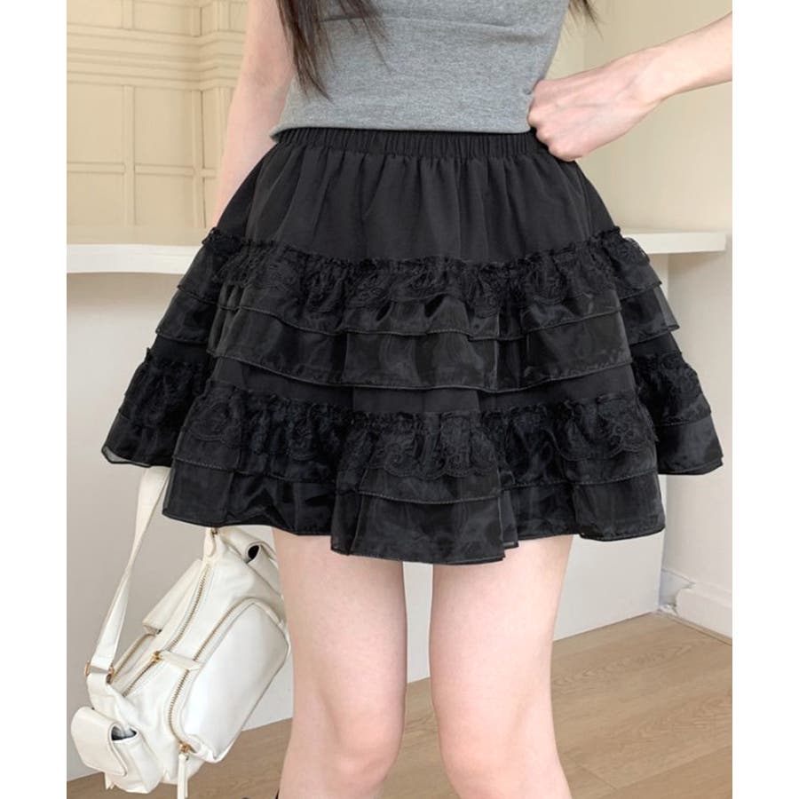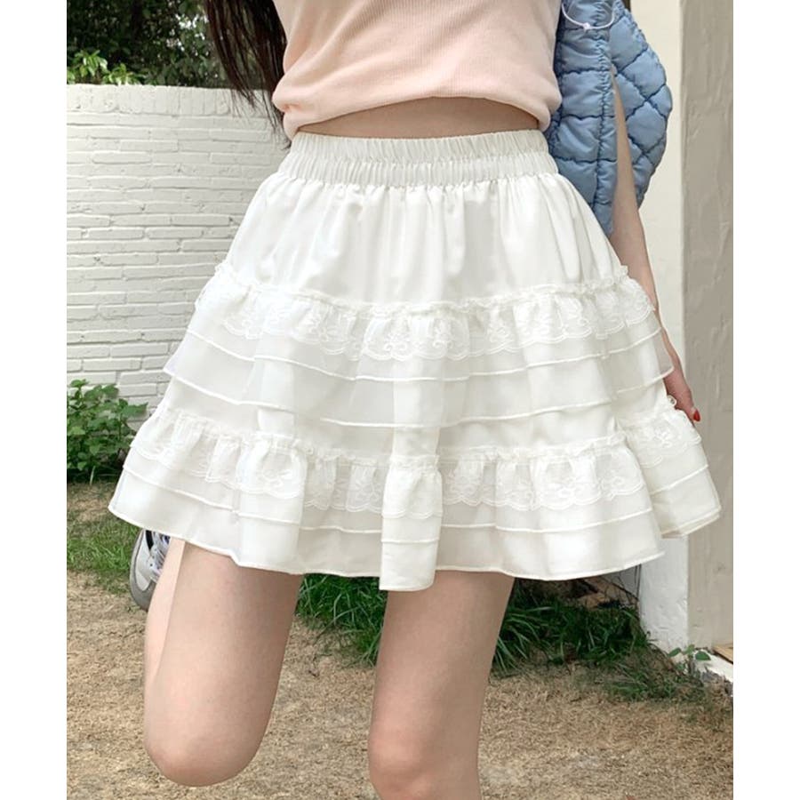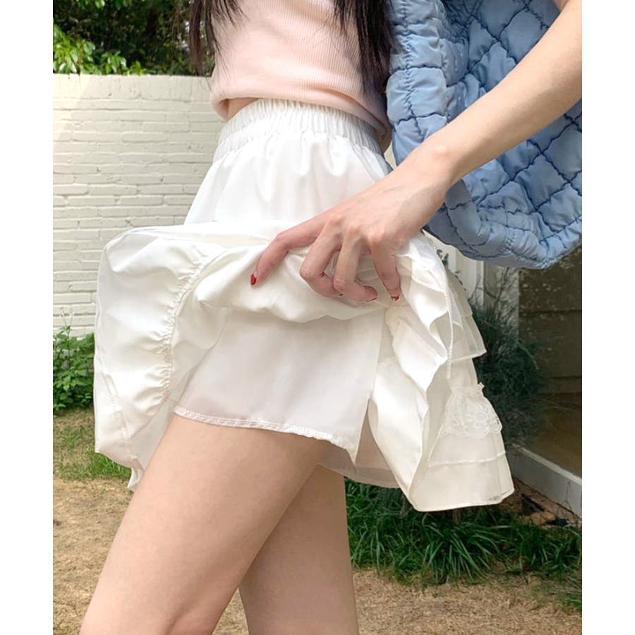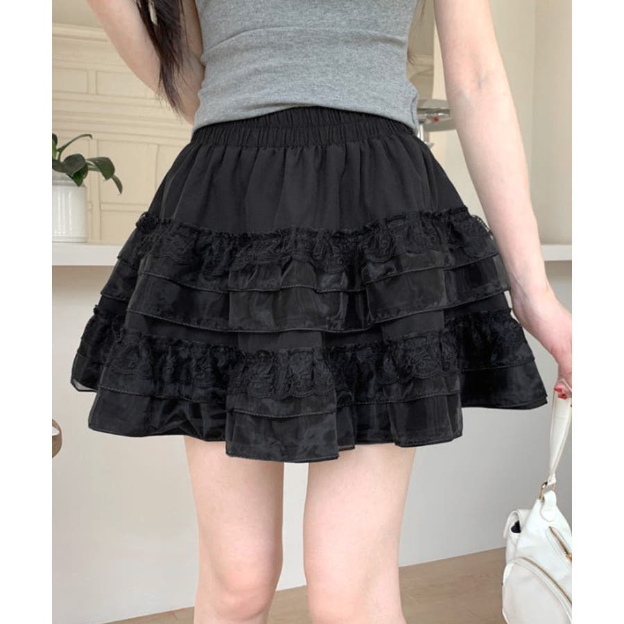 2段レースフリルミニスカート インナーパンツ付き ティアードスカート