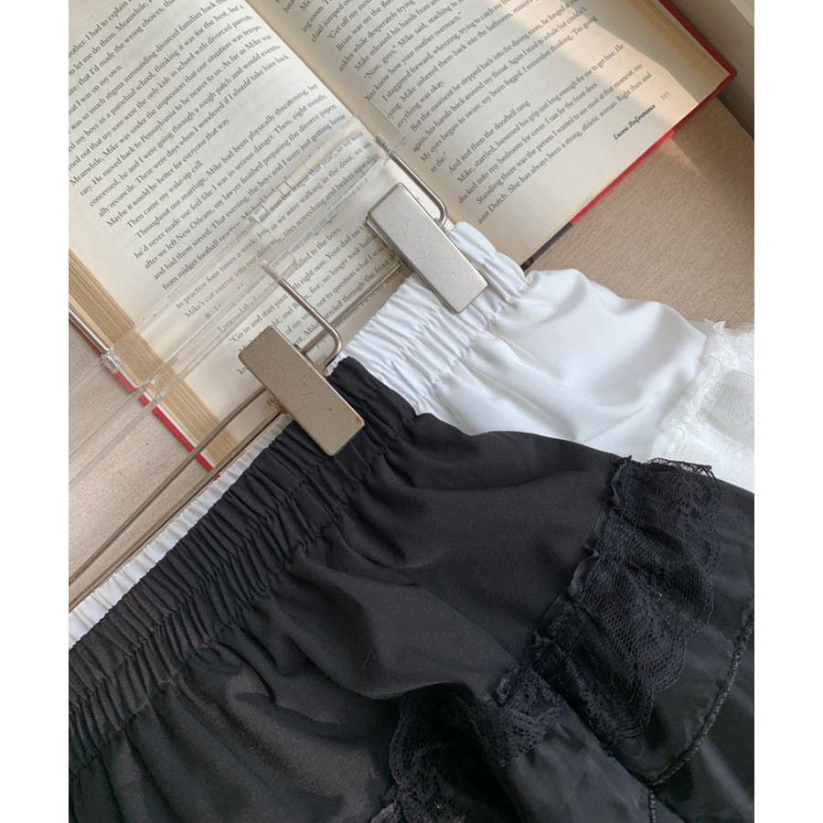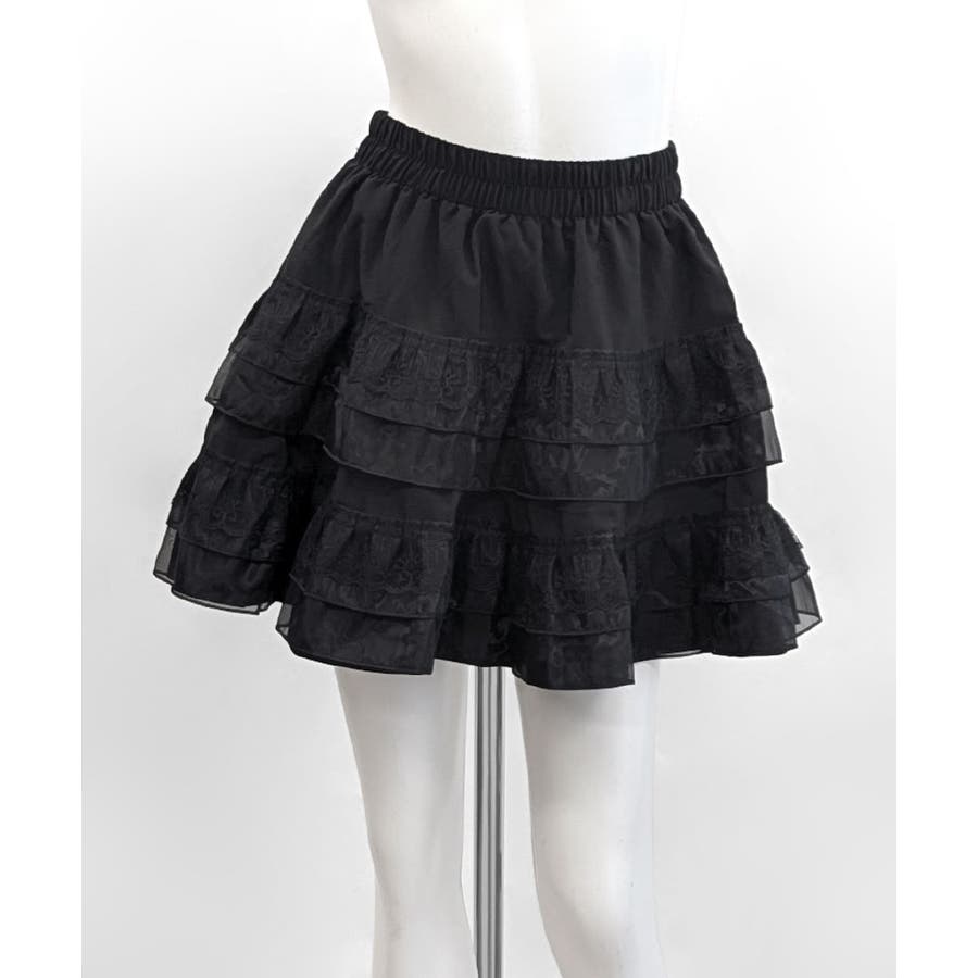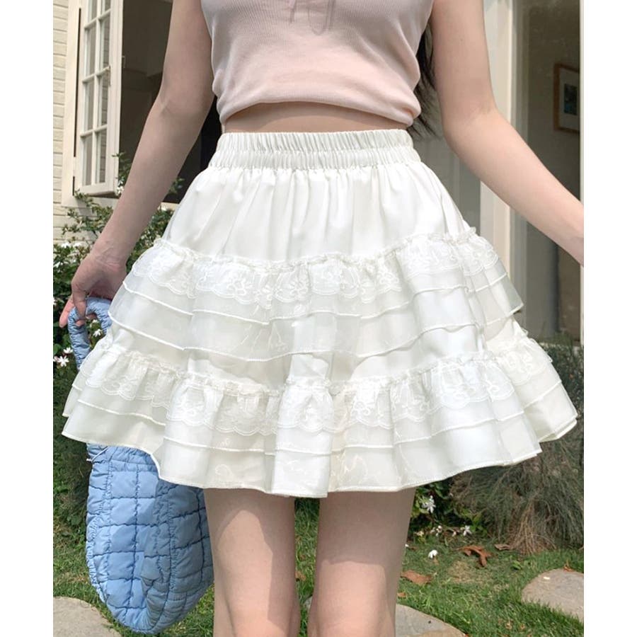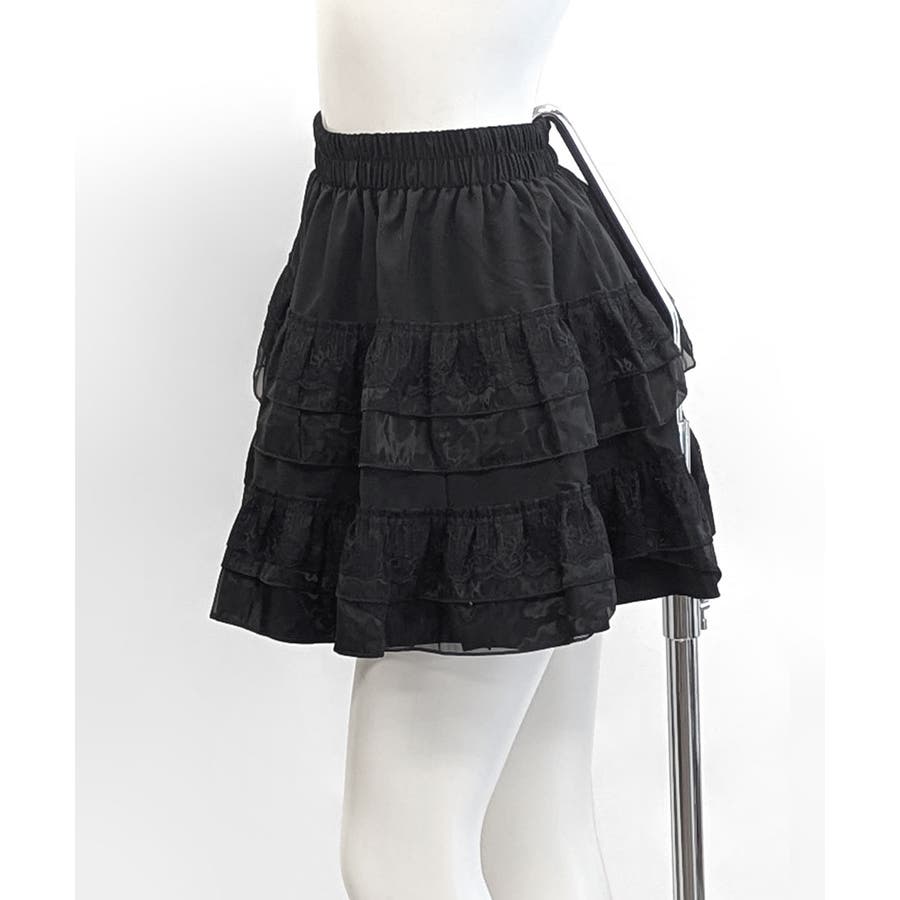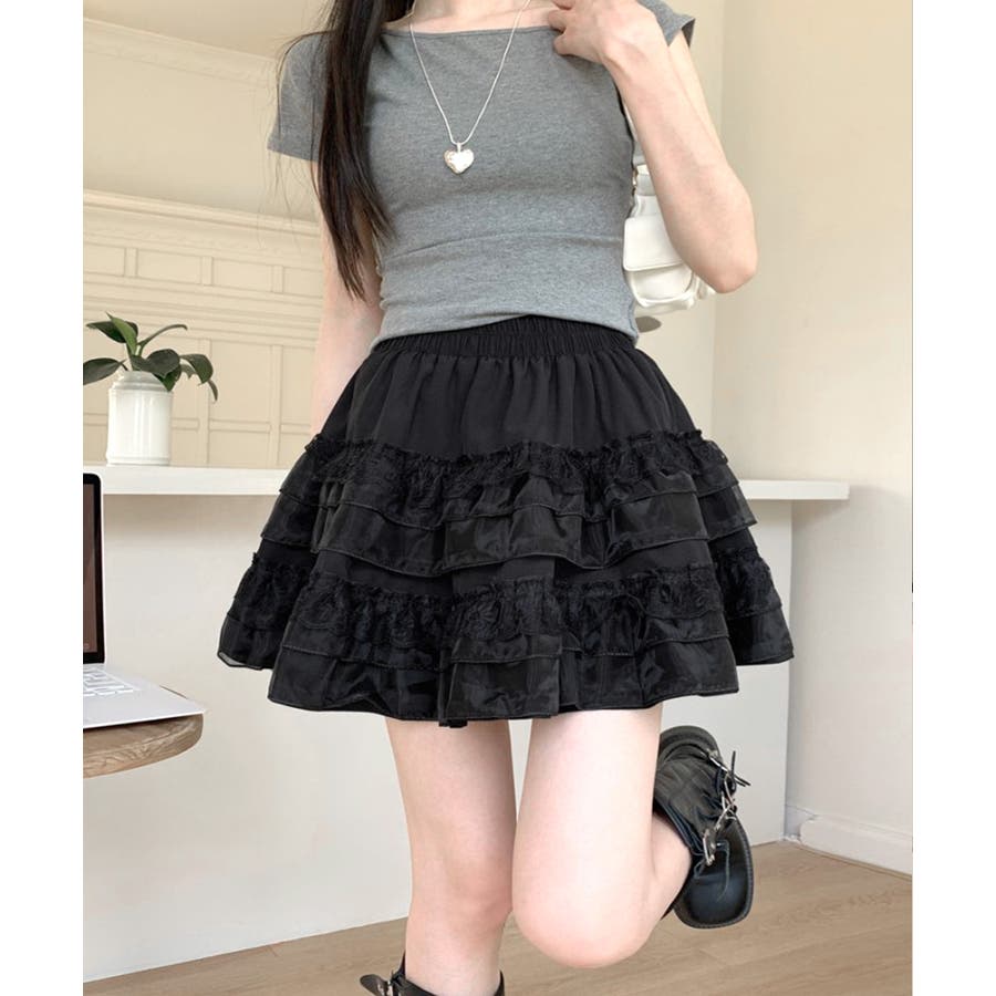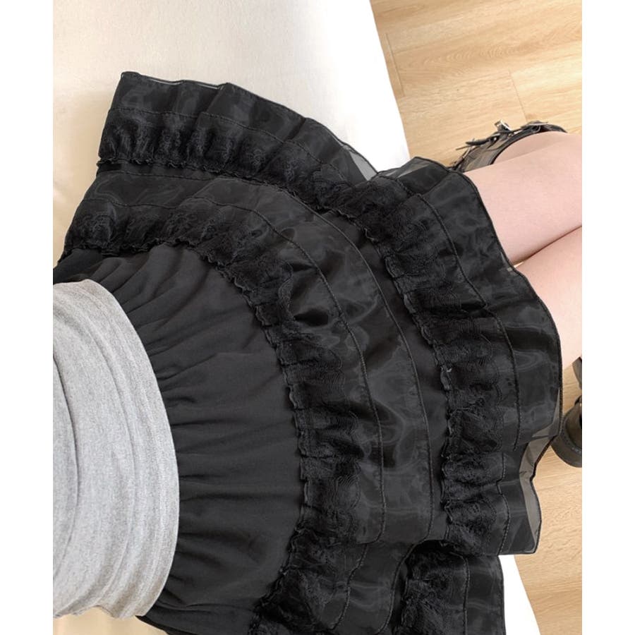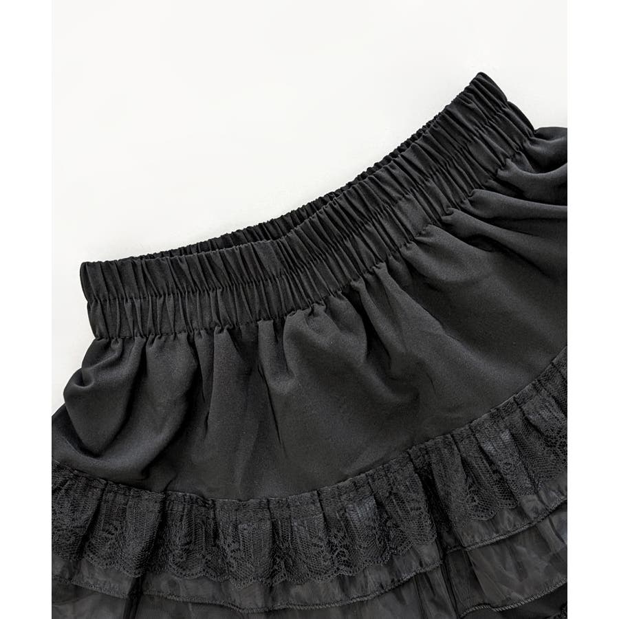2段レースフリルミニスカート インナーパンツ付き ティアードスカート