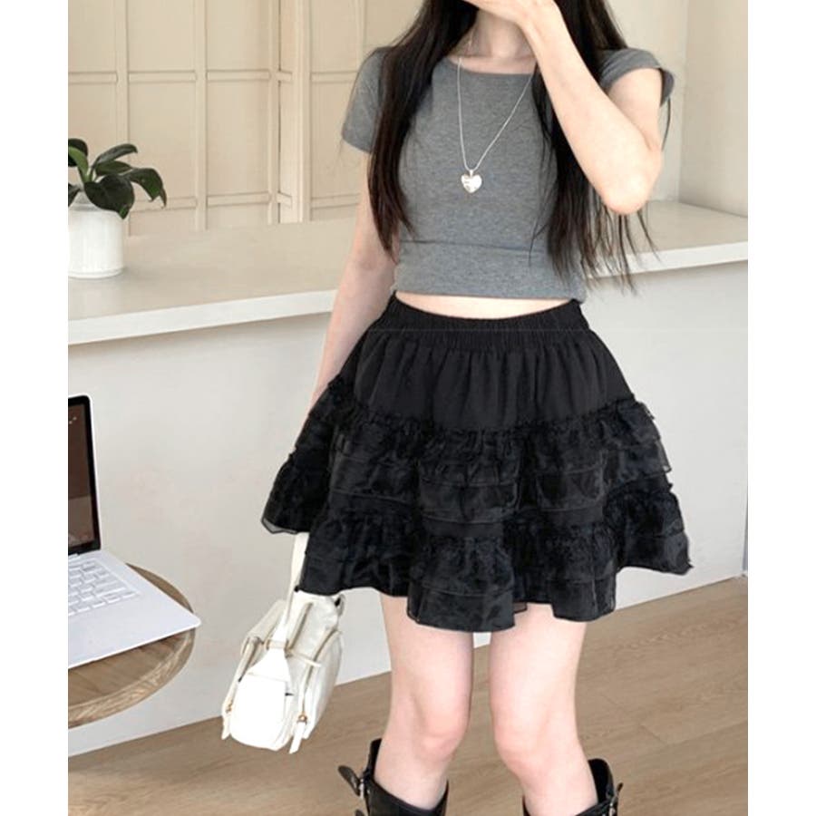 フレンチガーリーにおすすめな韓国風ミニスカート。