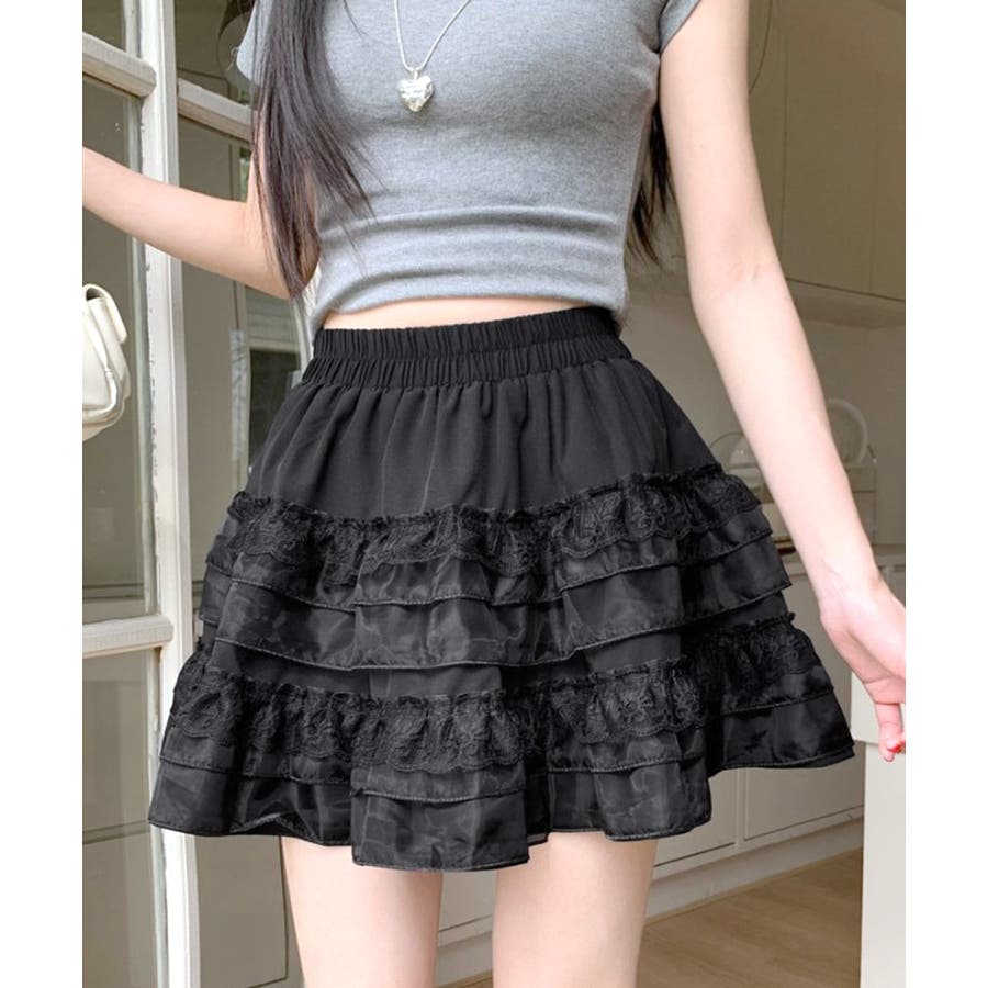 2段レースフリルミニスカート