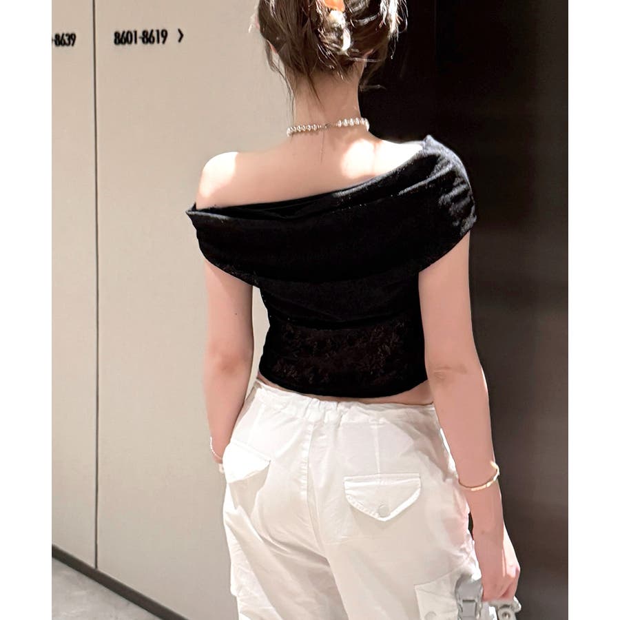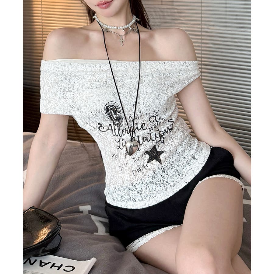 写真映えも狙えるオフショルレーストップス。