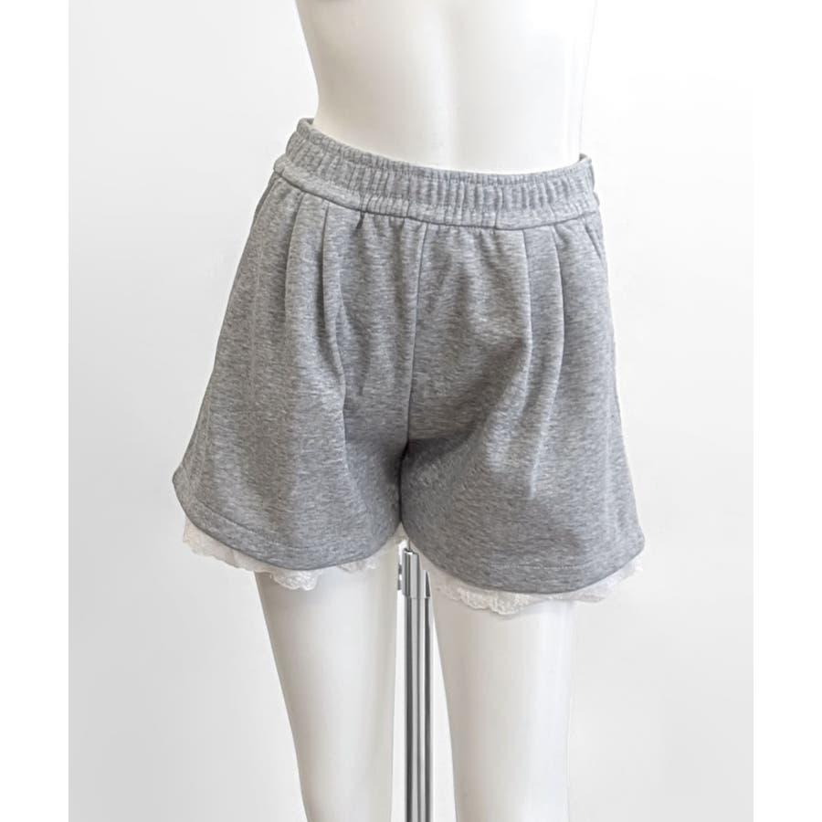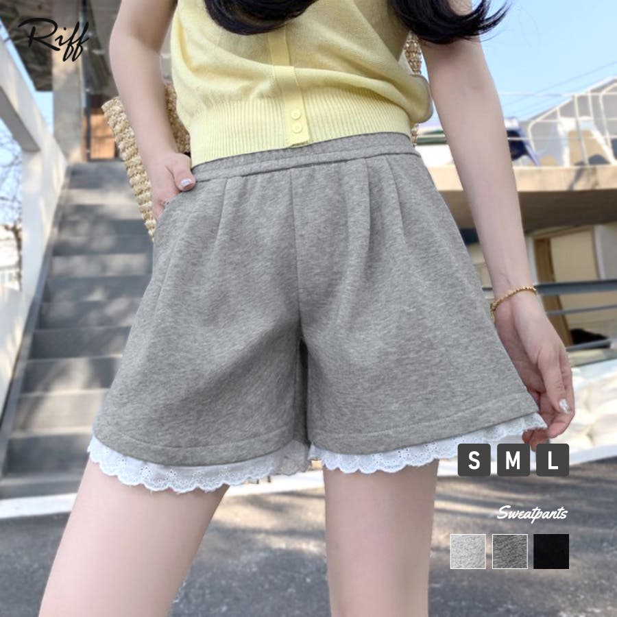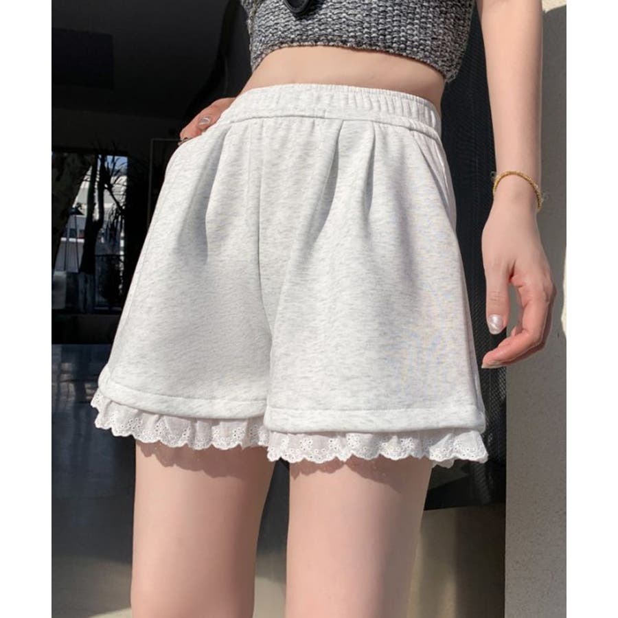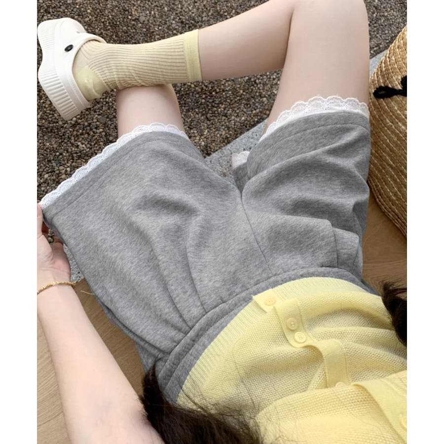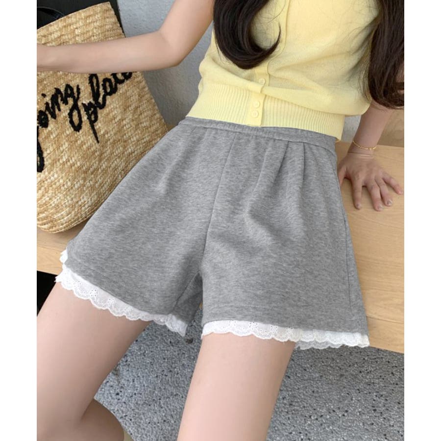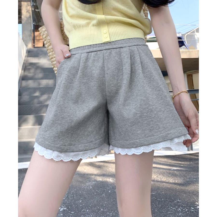裾レーススウェットショートパンツ 短パン ショート丈