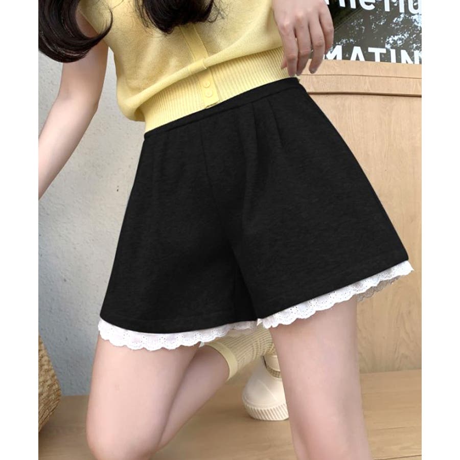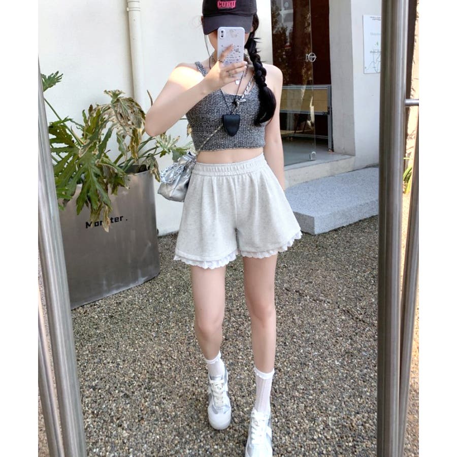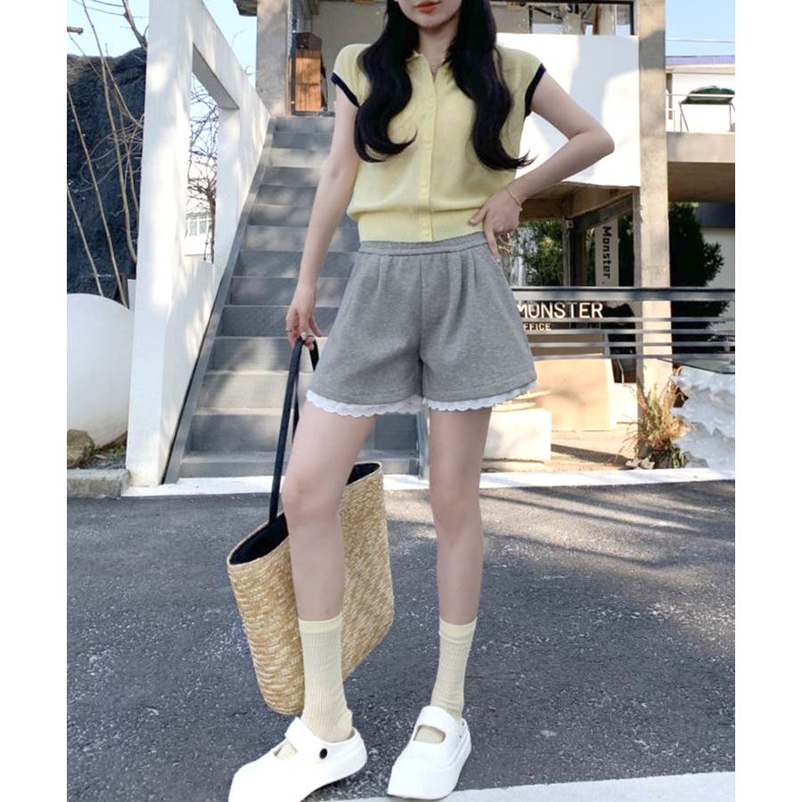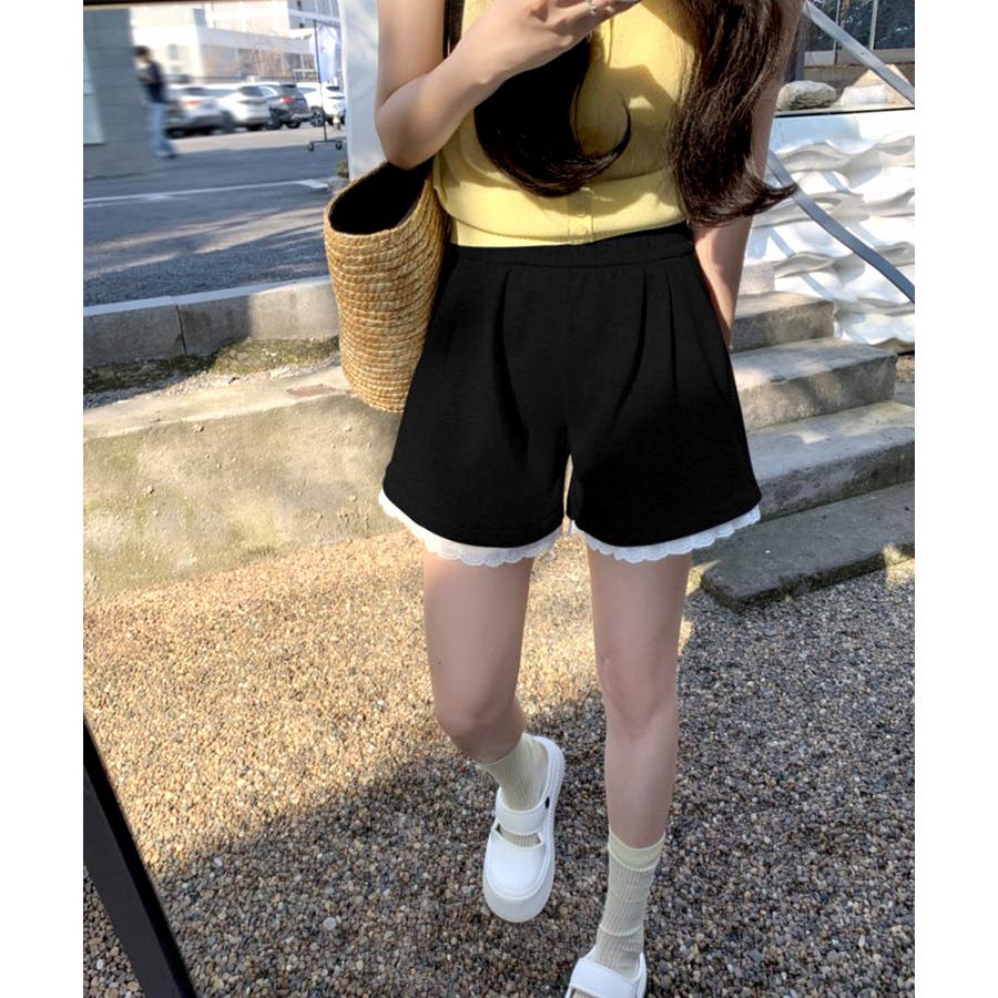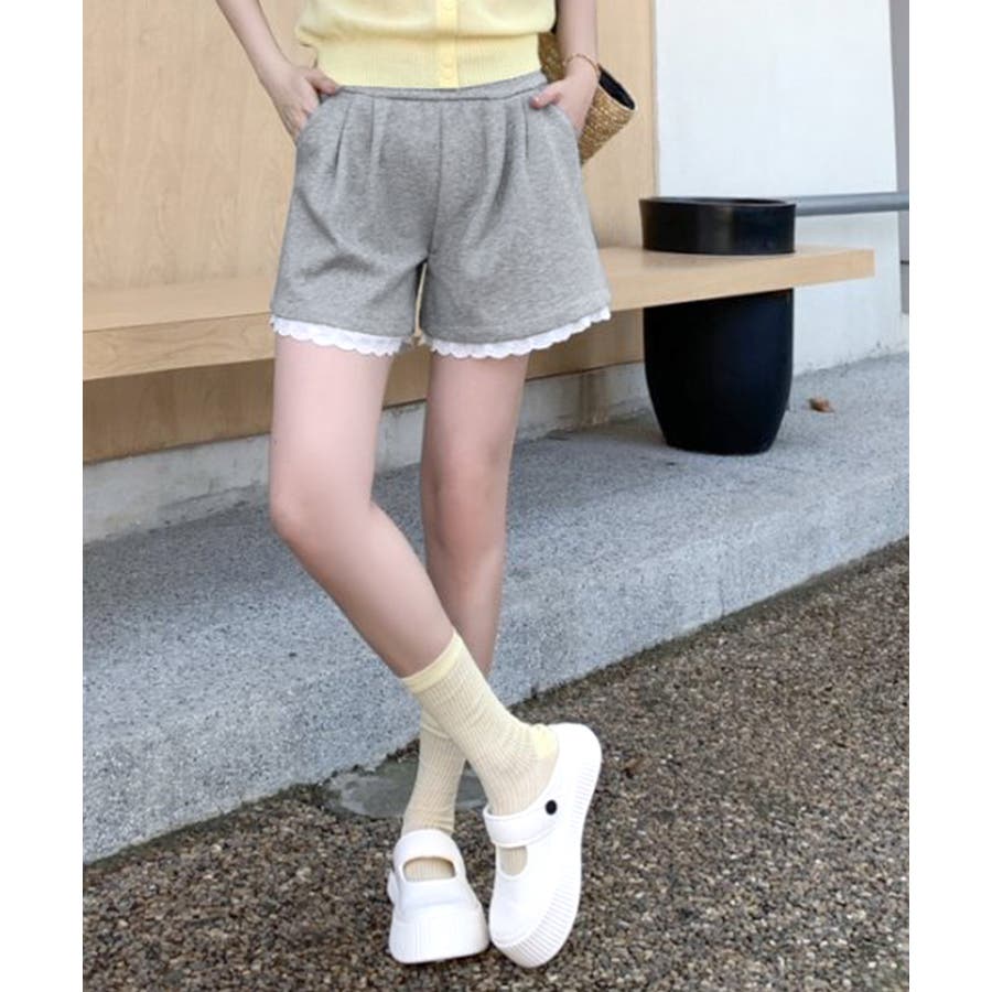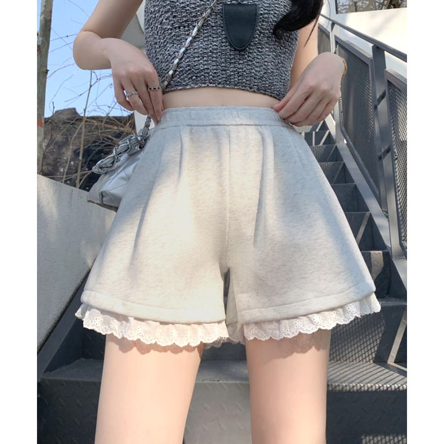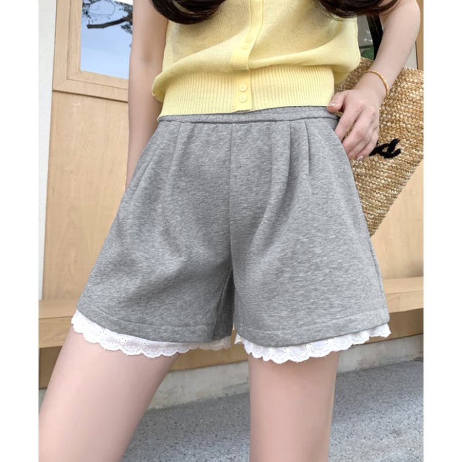 裾レーススウェットショートパンツ 短パン ショート丈