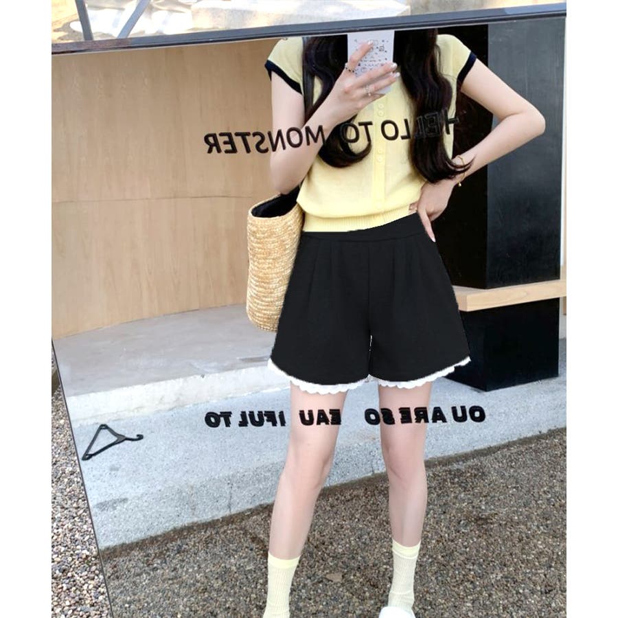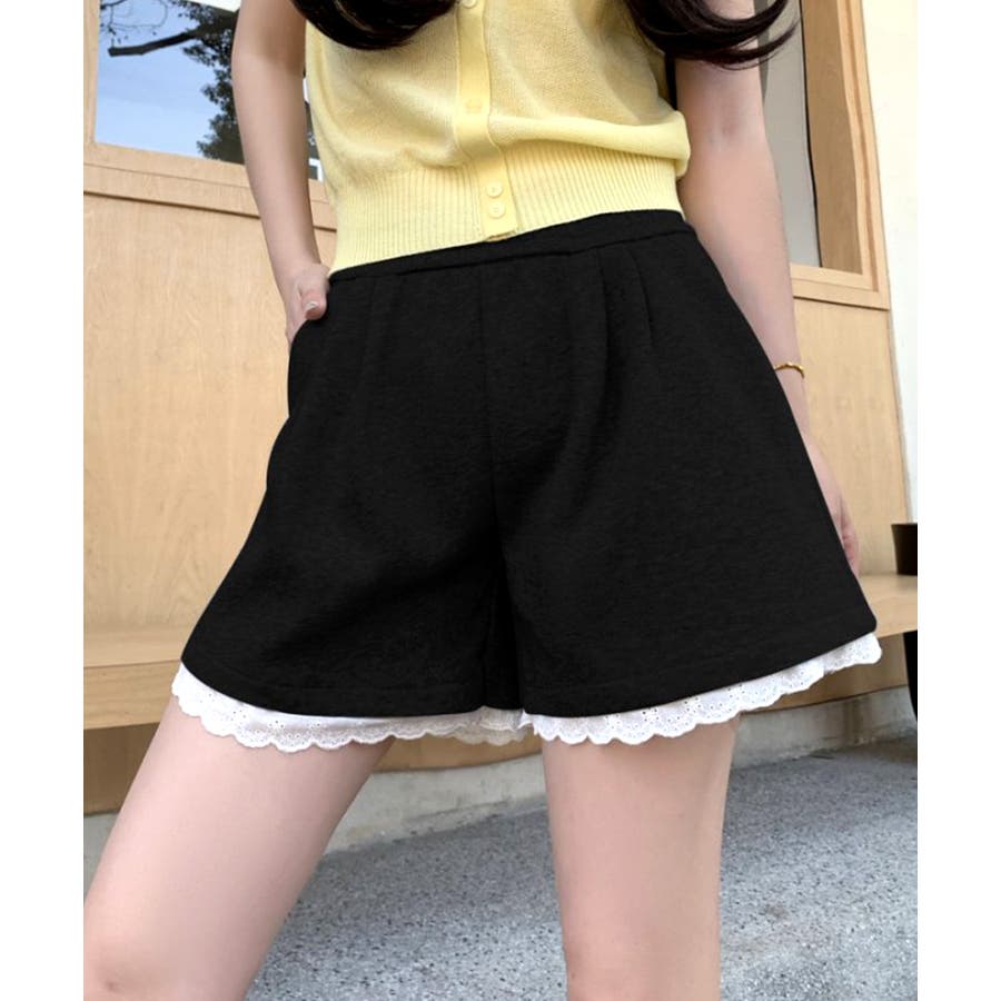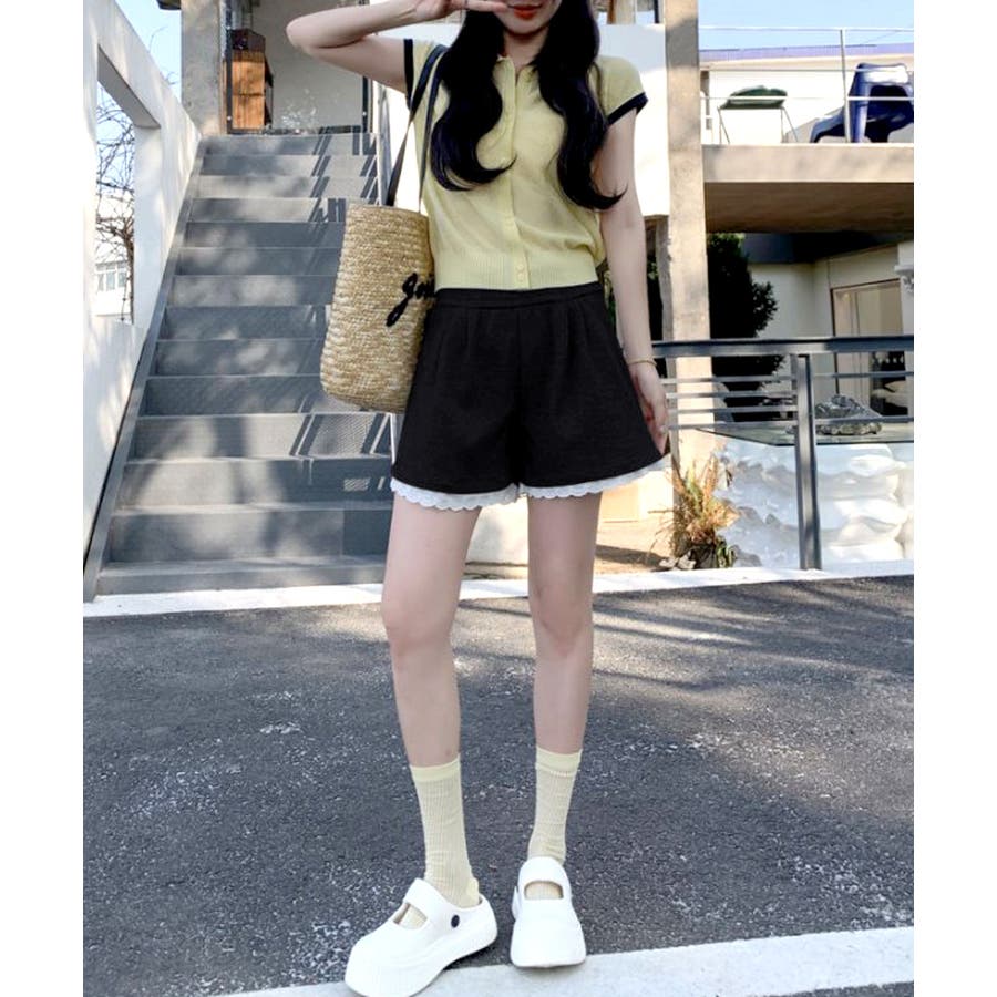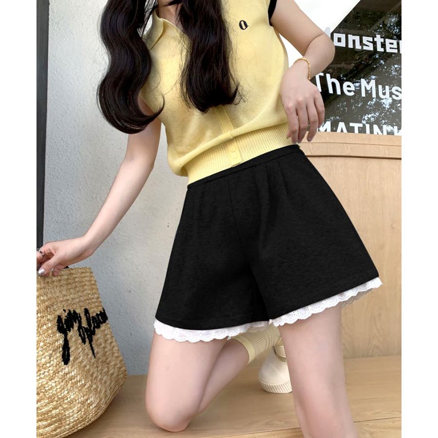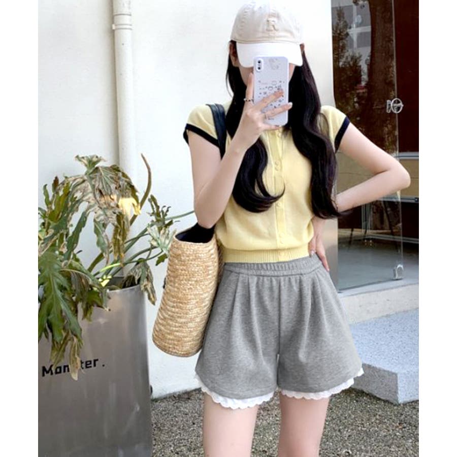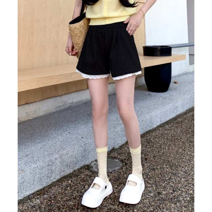 裾レーススウェットショートパンツ 短パン ショート丈