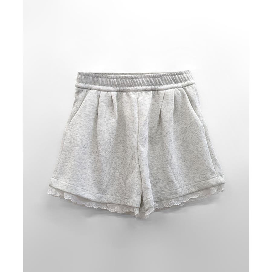 裾レーススウェットショートパンツ