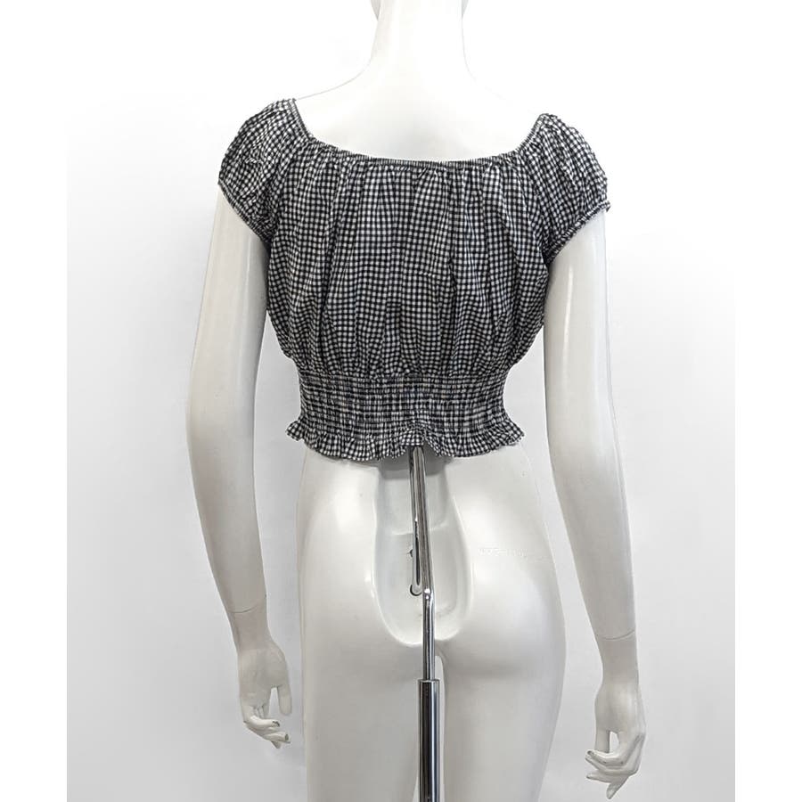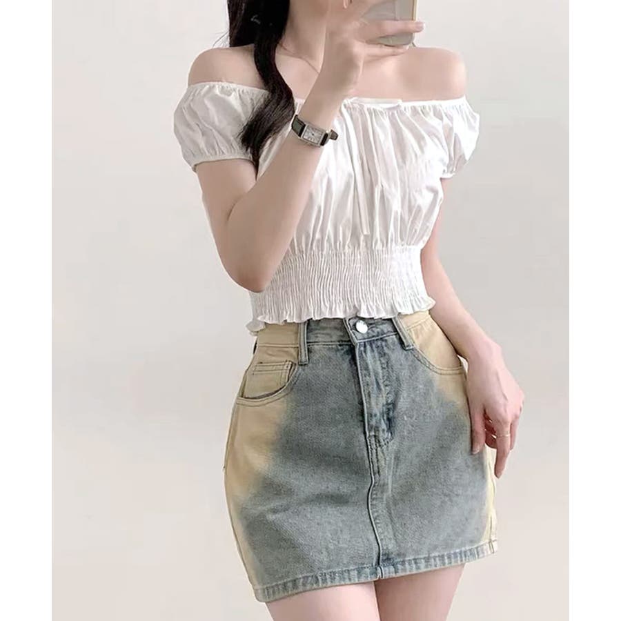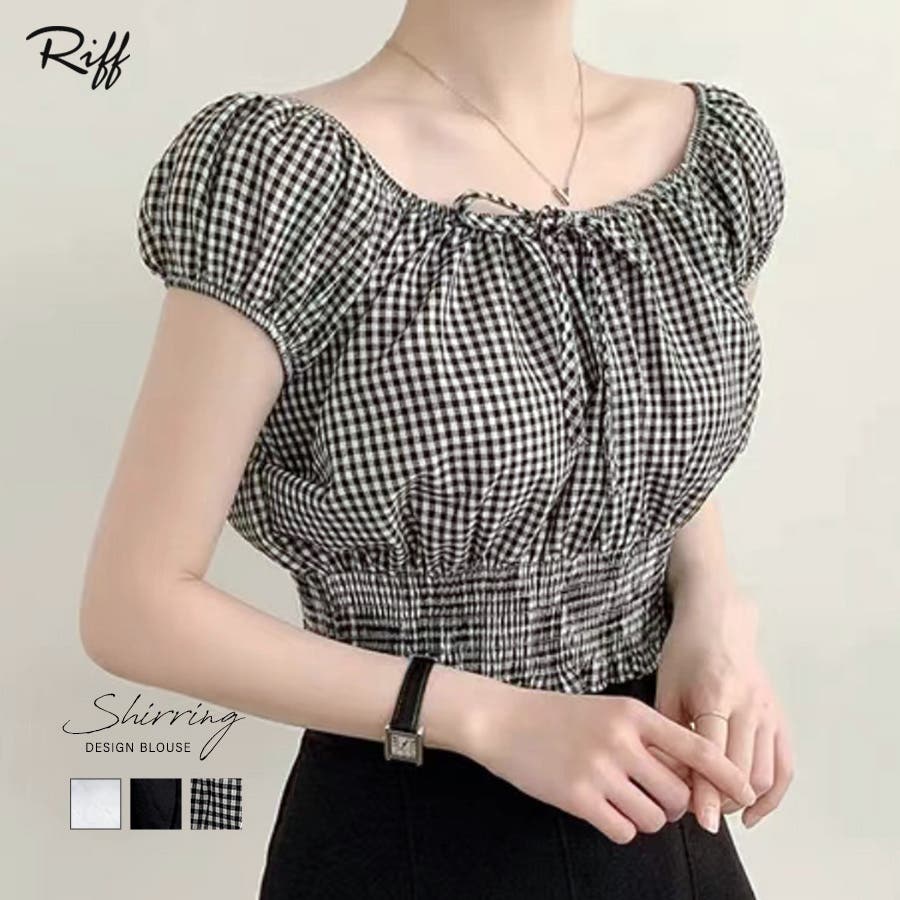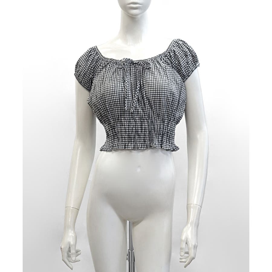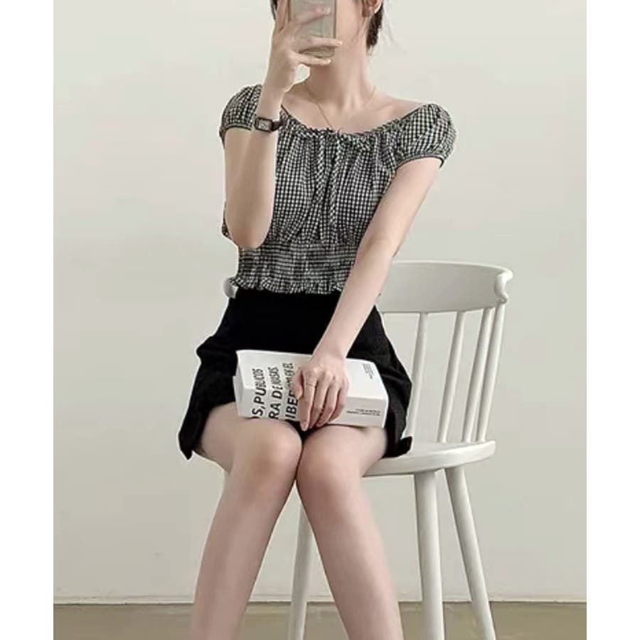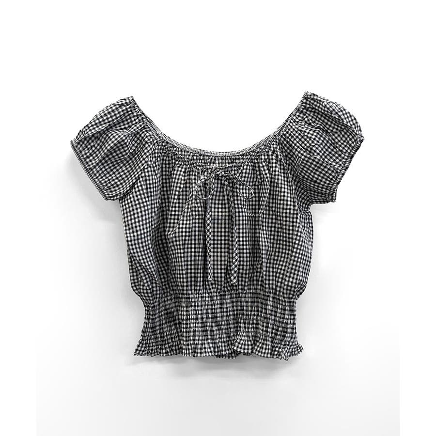 オフショルシャーリング半袖トップス パフスリーブ リボン