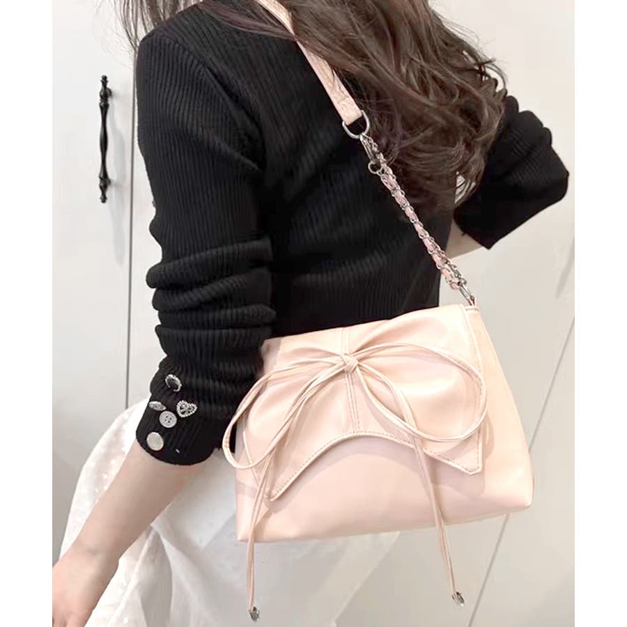 バレエコアなリボンモチーフが目を惹くショルダーバッグ。