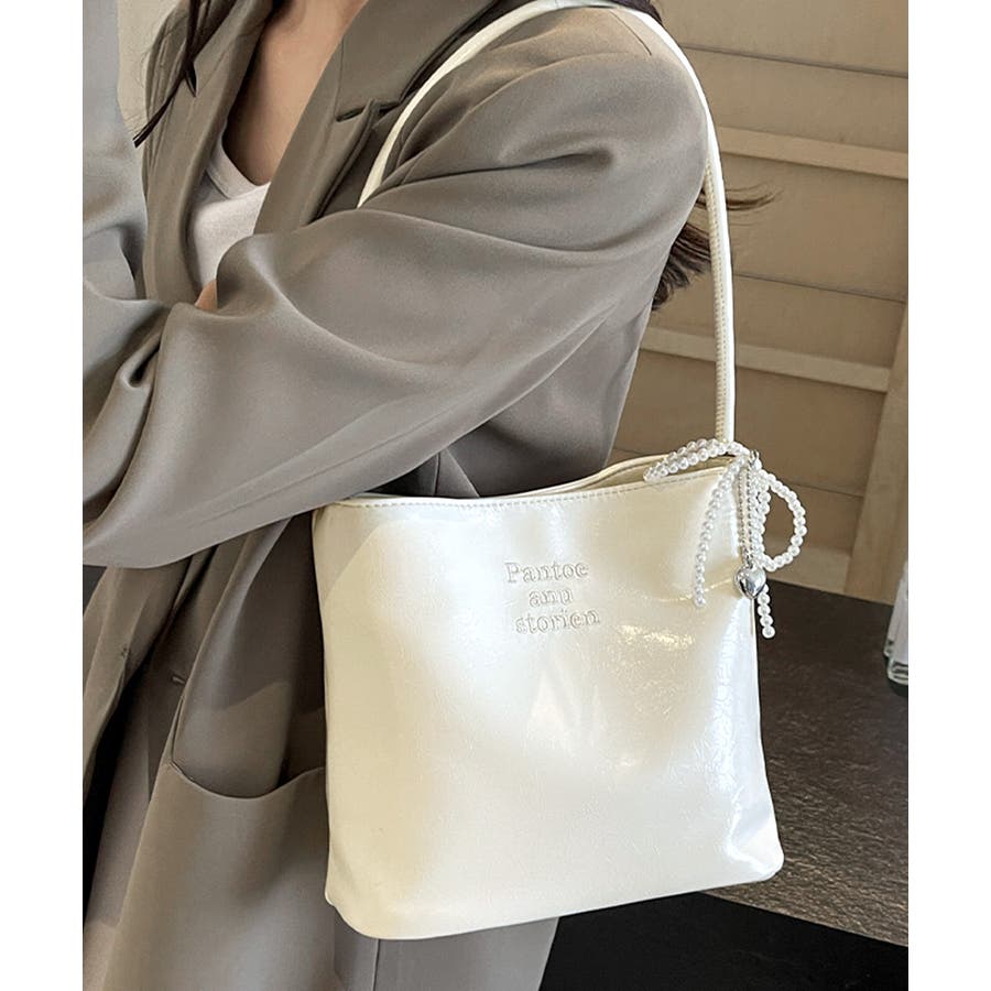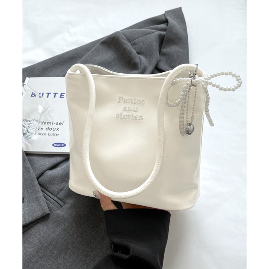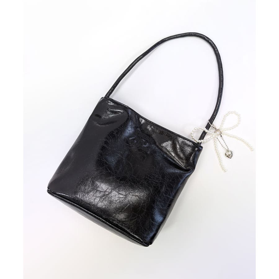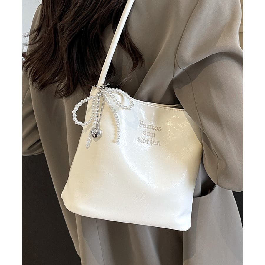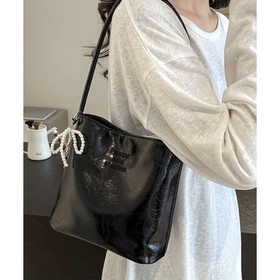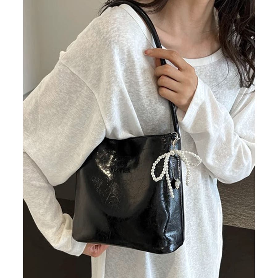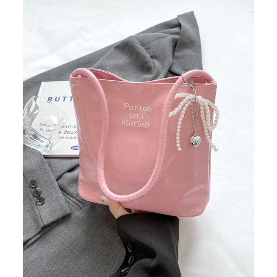 パールリボンチャーム付きショルダーバッグ トートバッグ ハンドバッグ