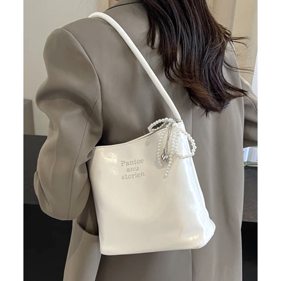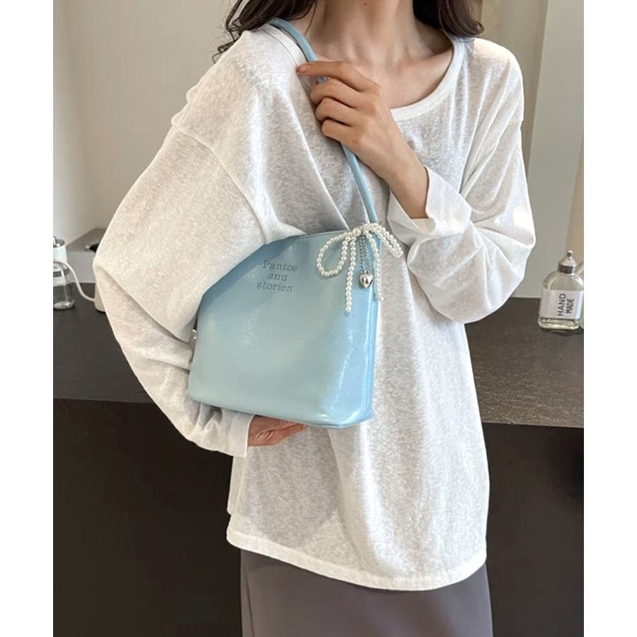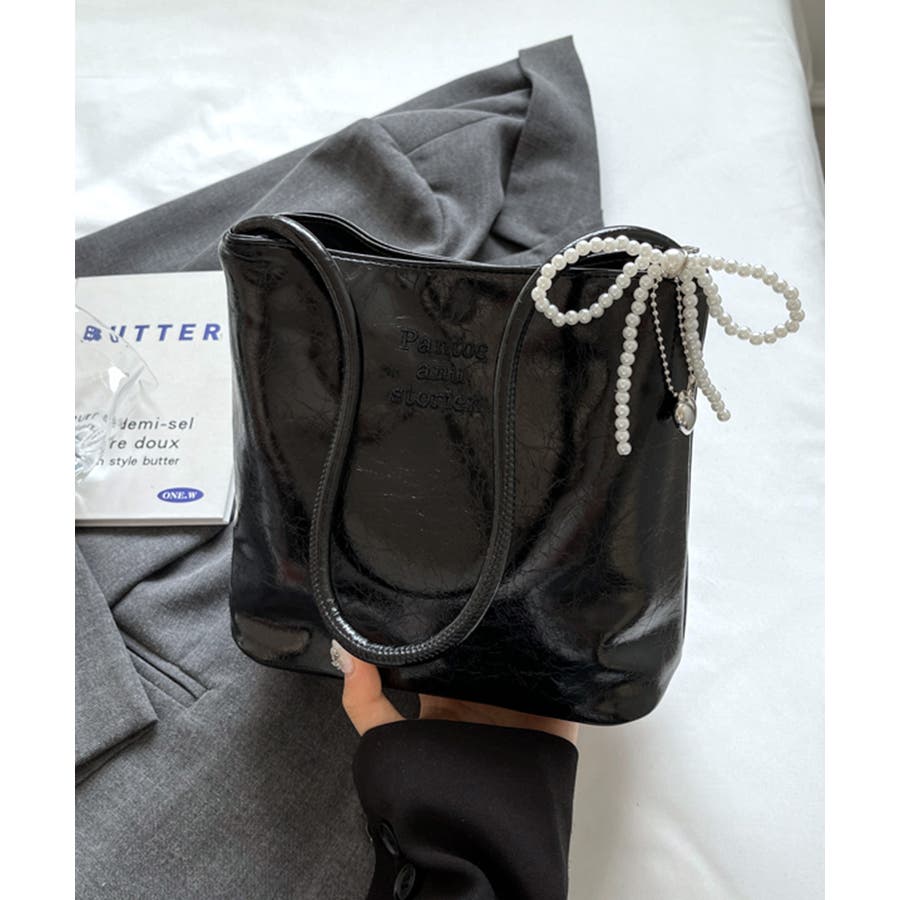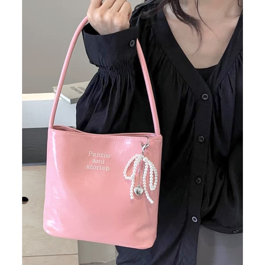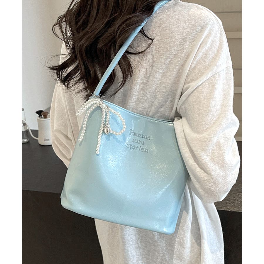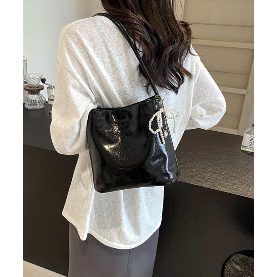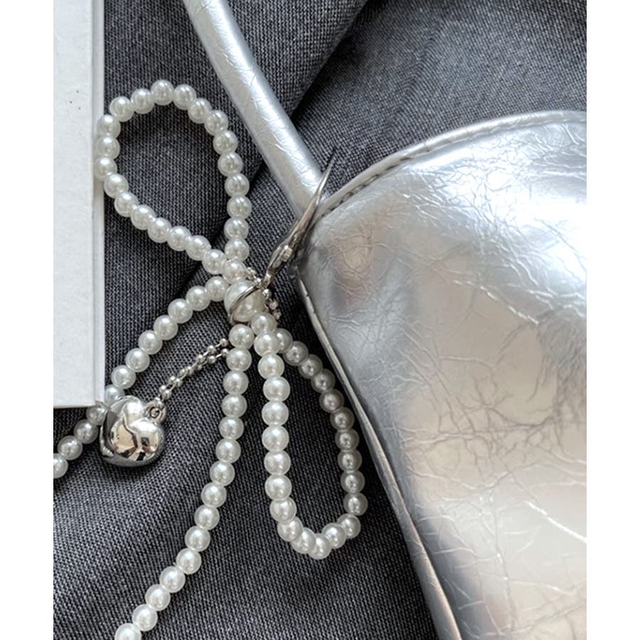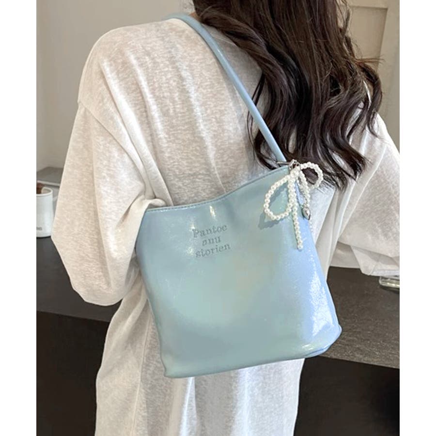 パールリボンチャーム付きショルダーバッグ トートバッグ ハンドバッグ
