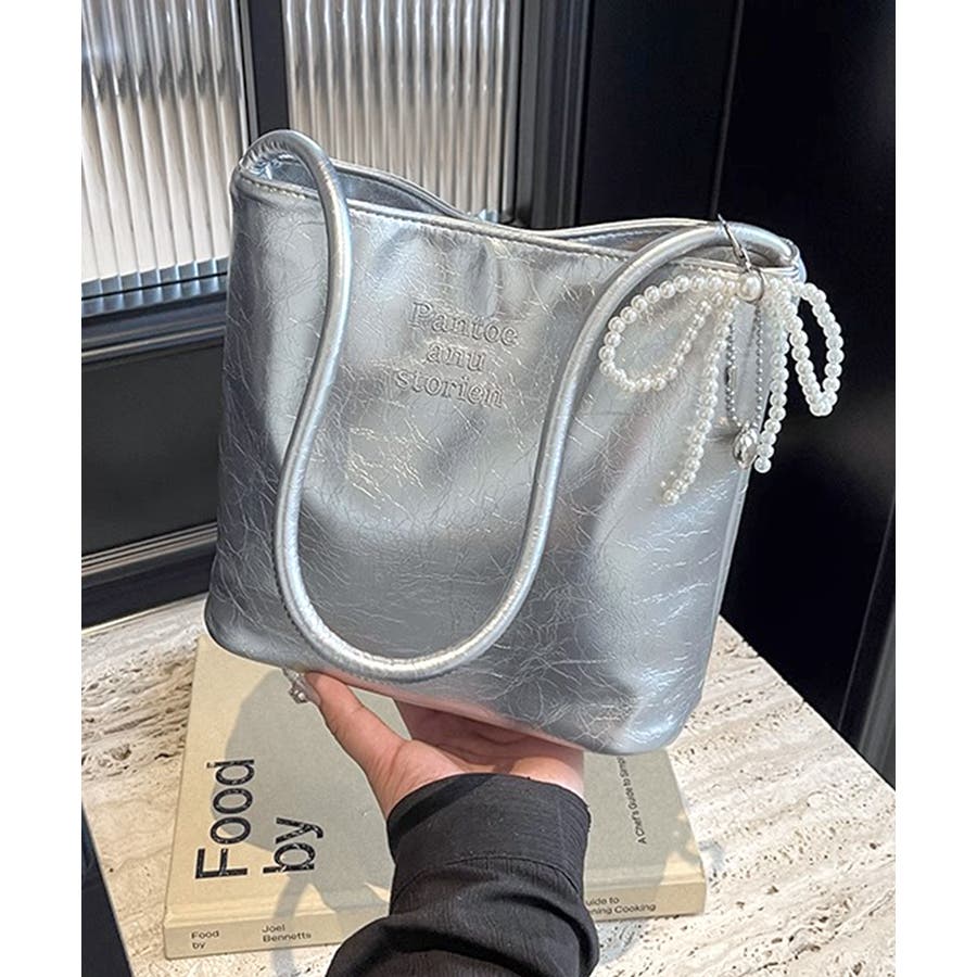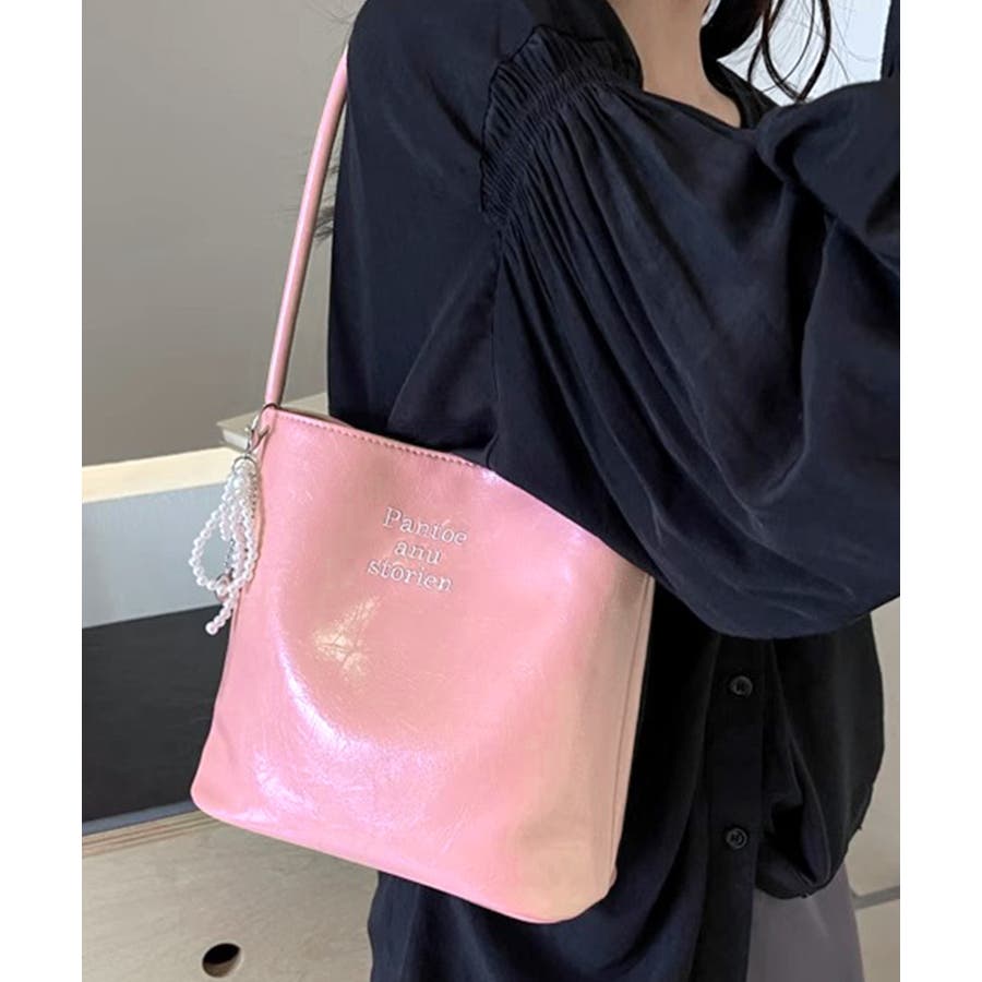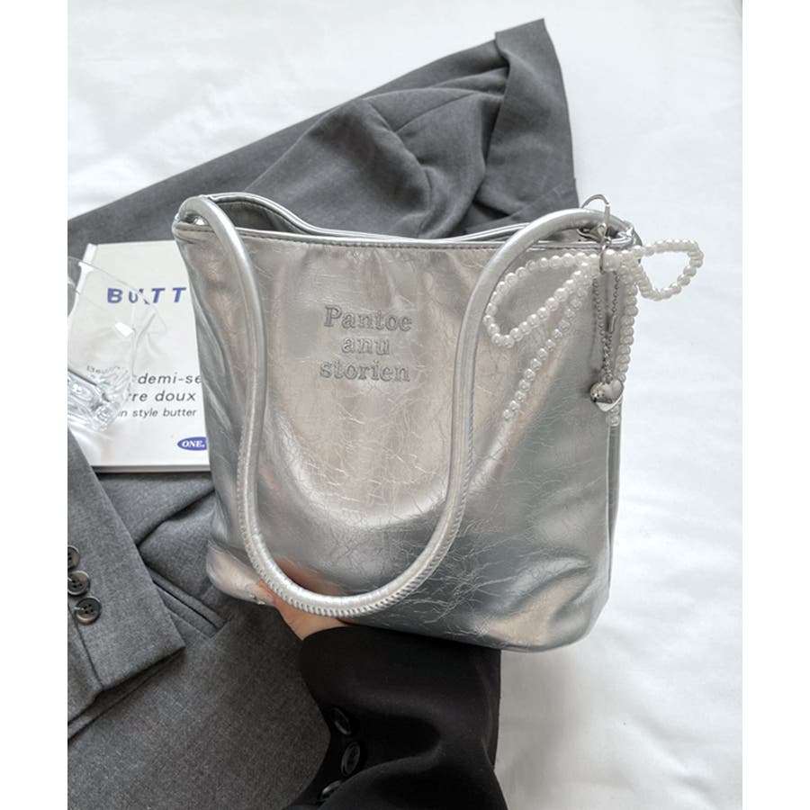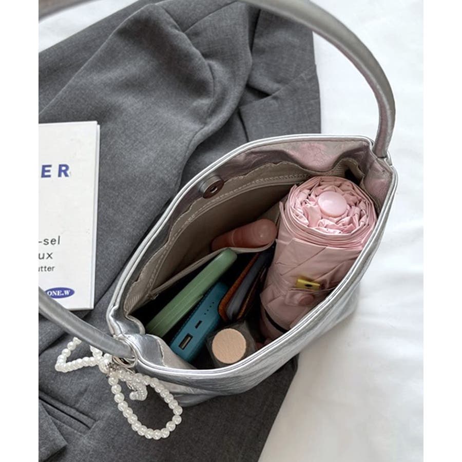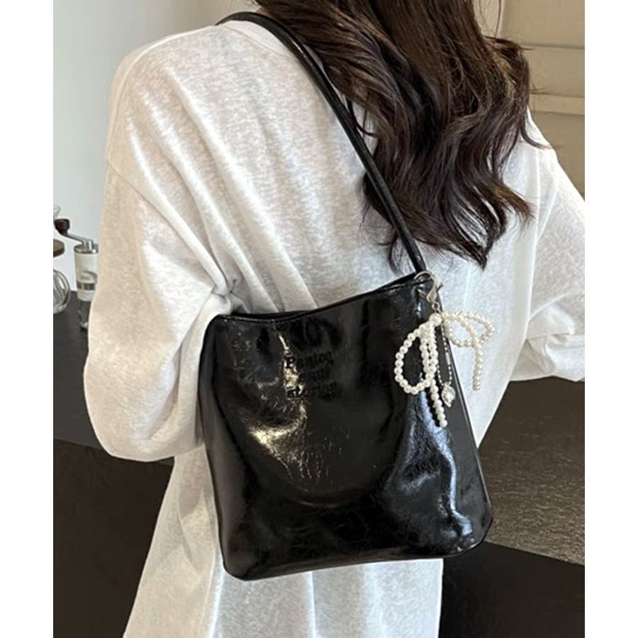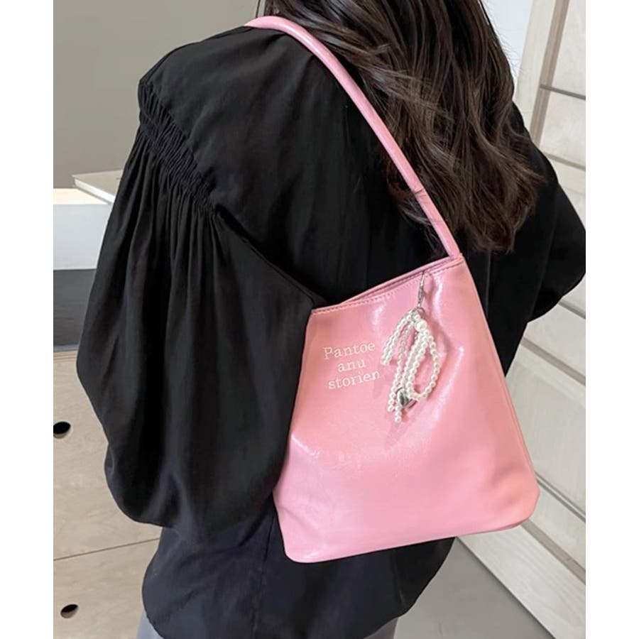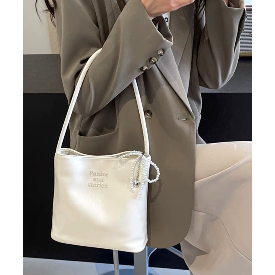 パールリボンチャーム付きショルダーバッグ トートバッグ ハンドバッグ