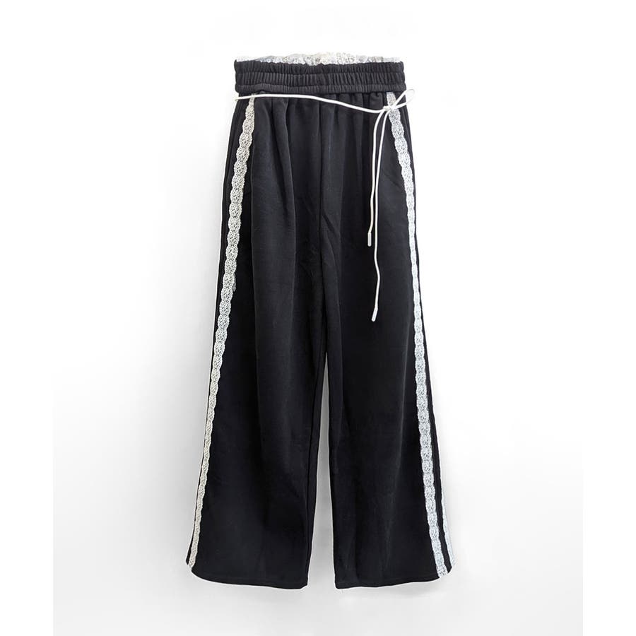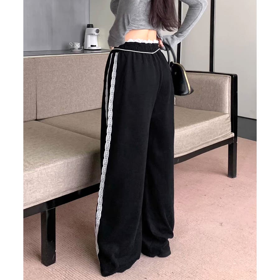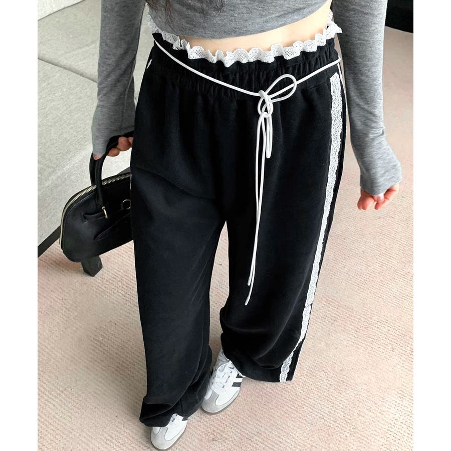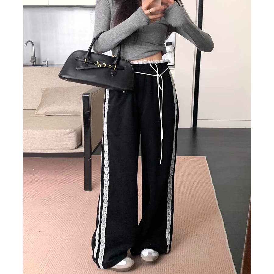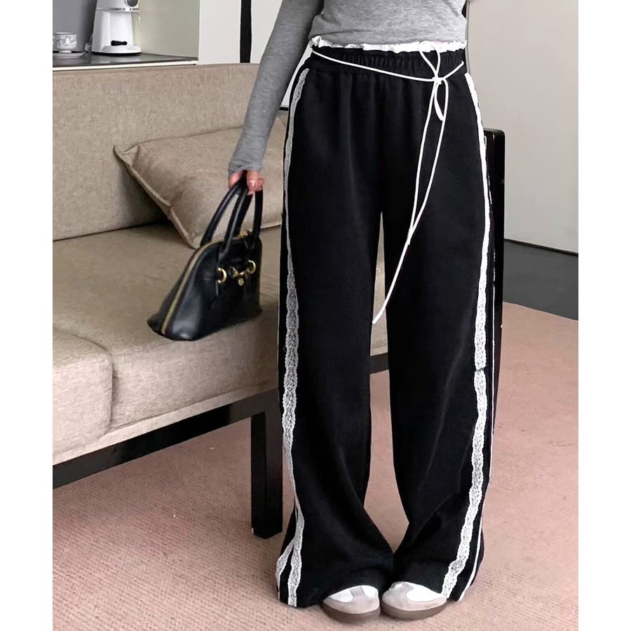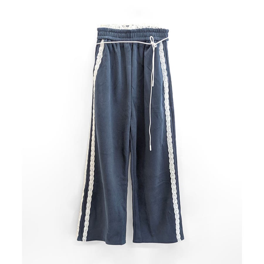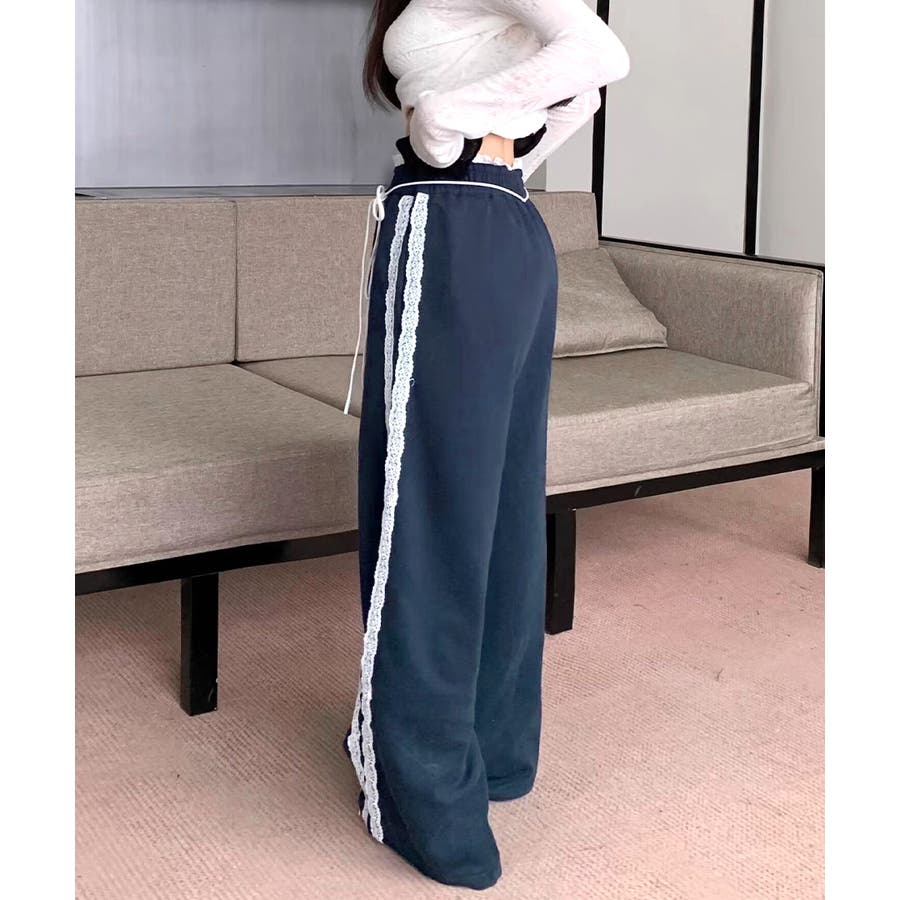 ワイドパンツにレースが施された、