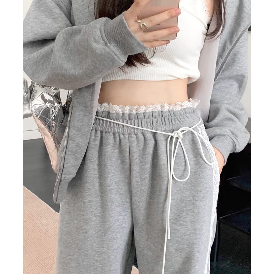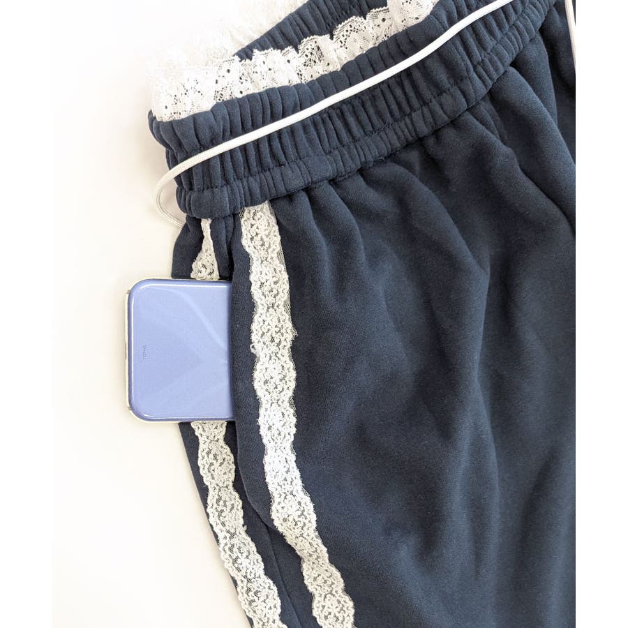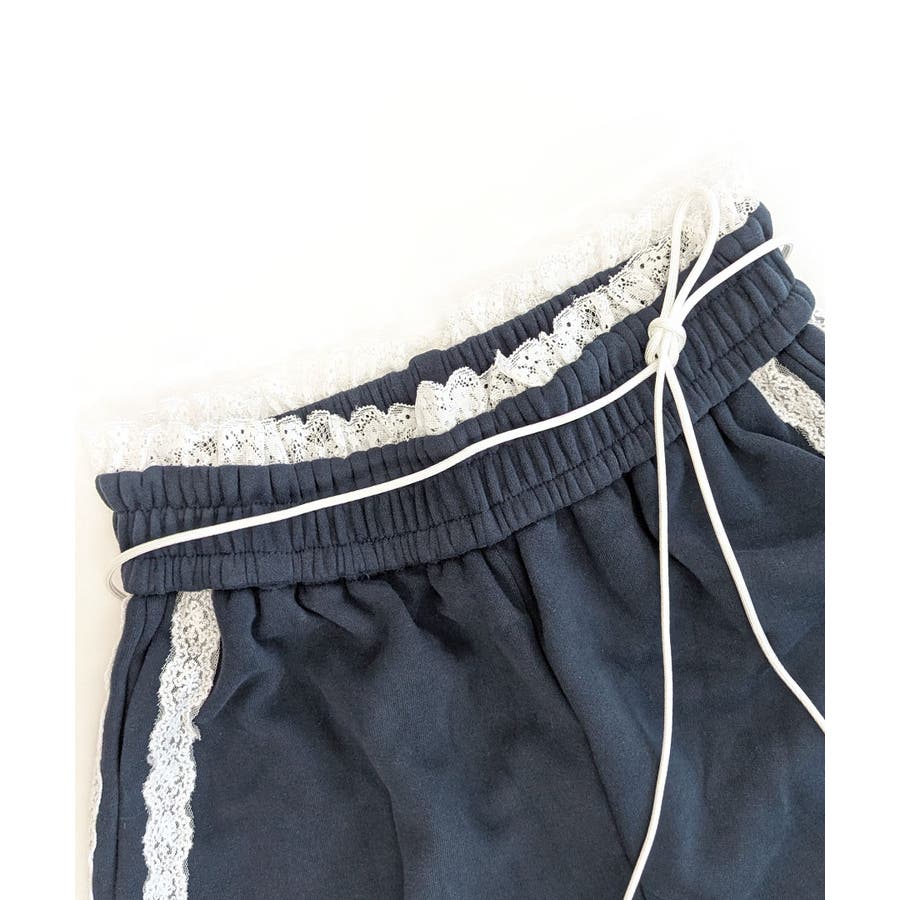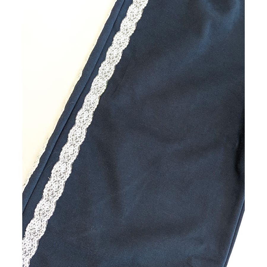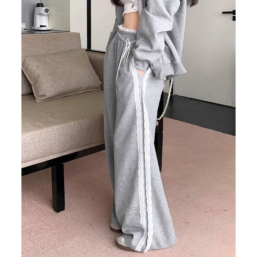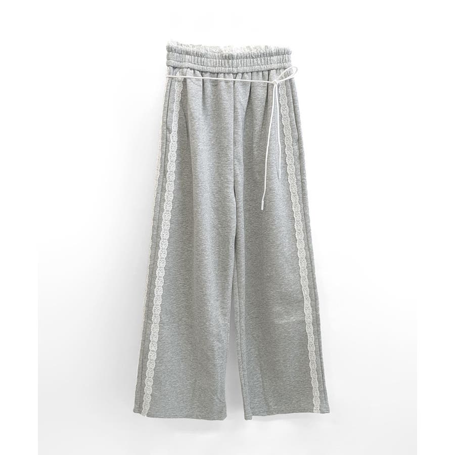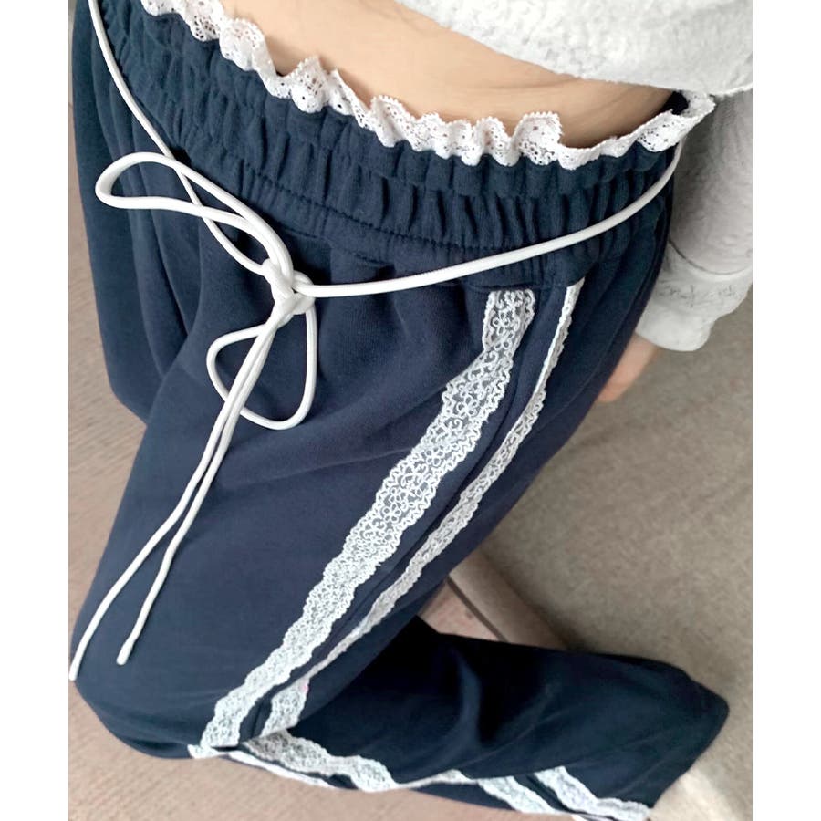 ワイドパンツにレースが施された、