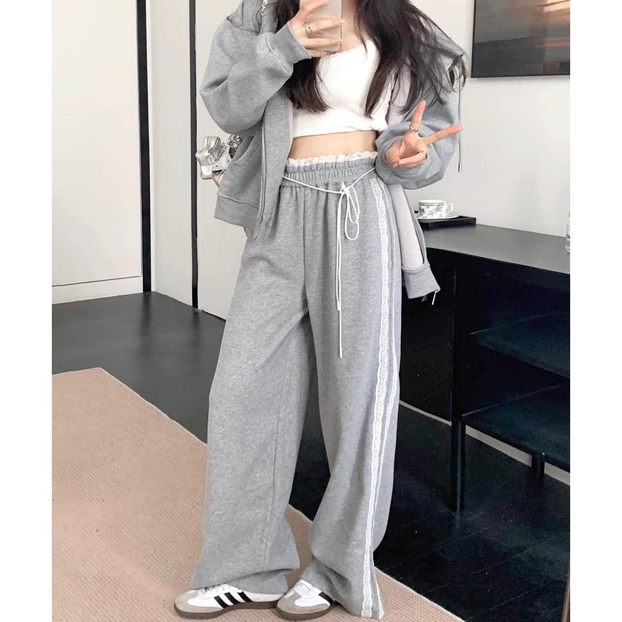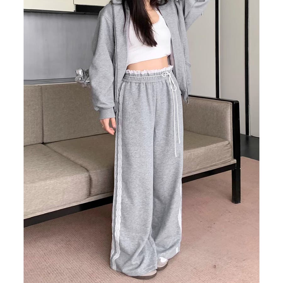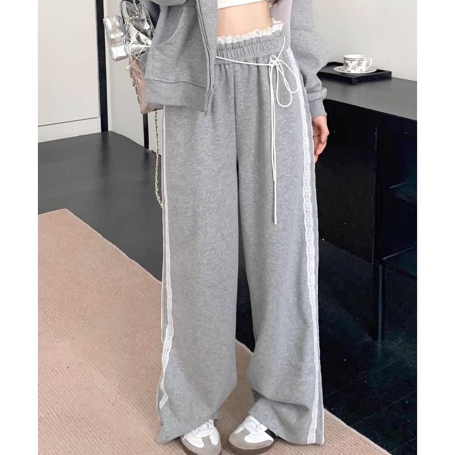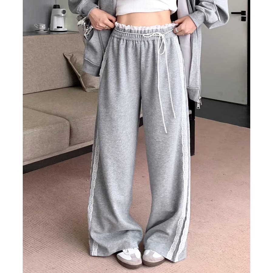 ウエストサイドレースワイドパンツ サイド刺繍 イージーパンツ