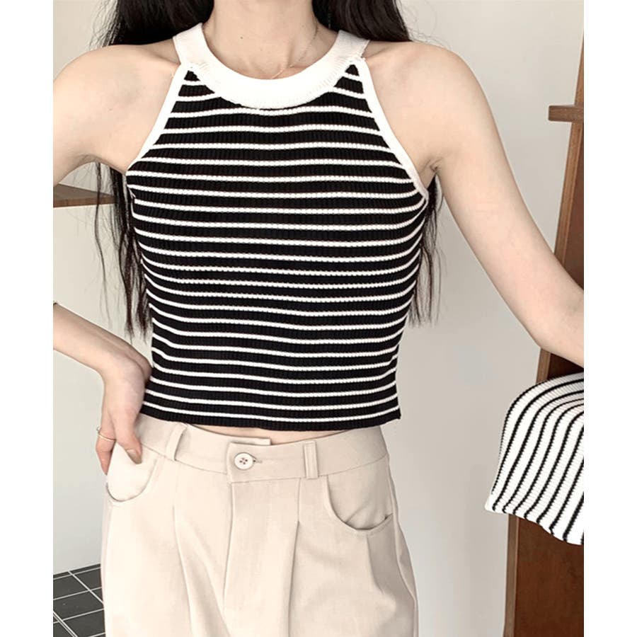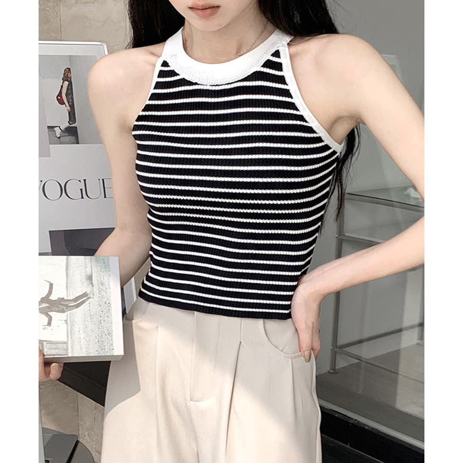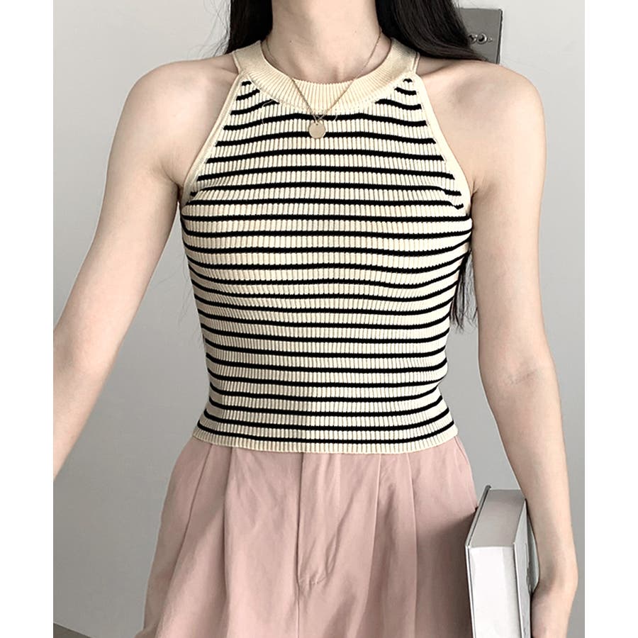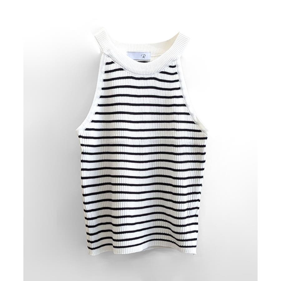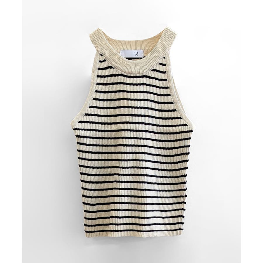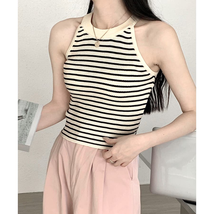 ホルターネックボーダーニットタンクトップ