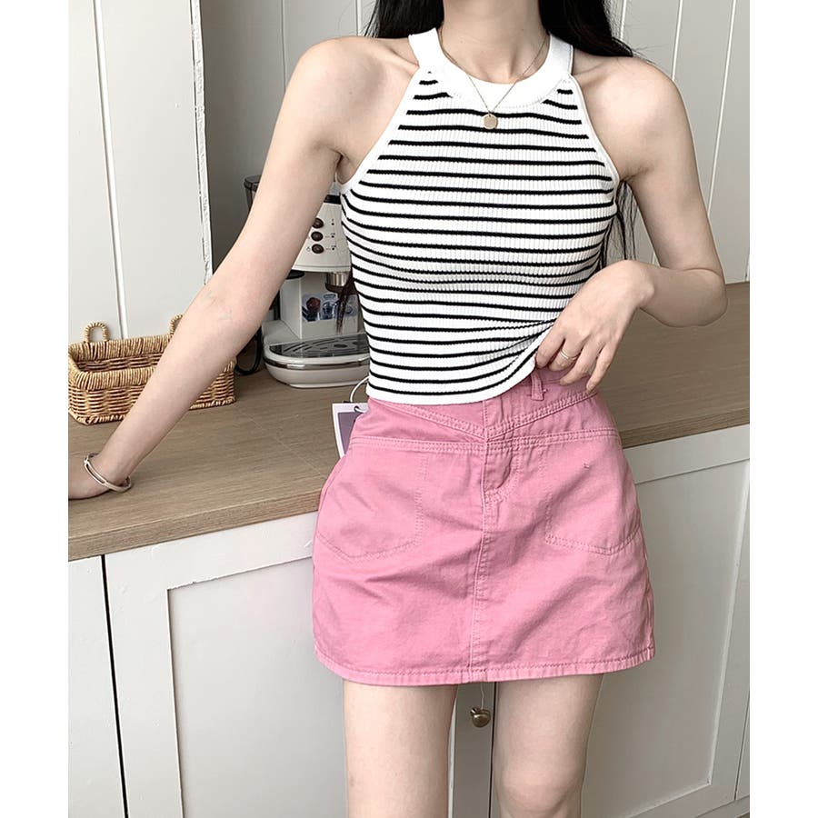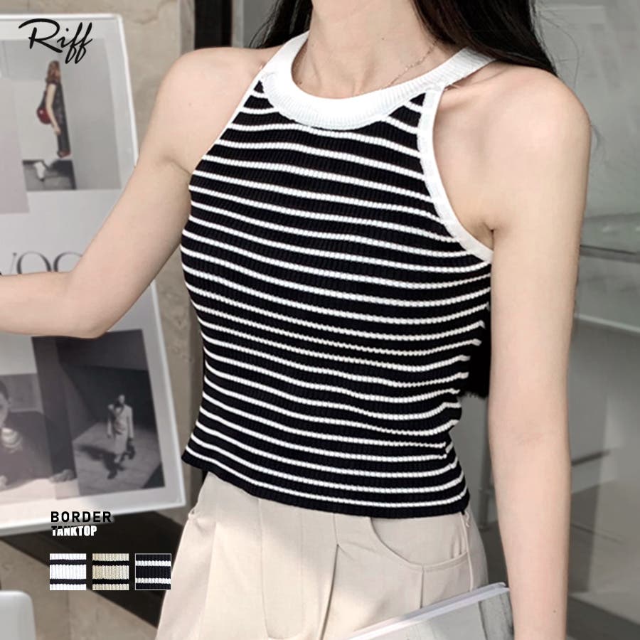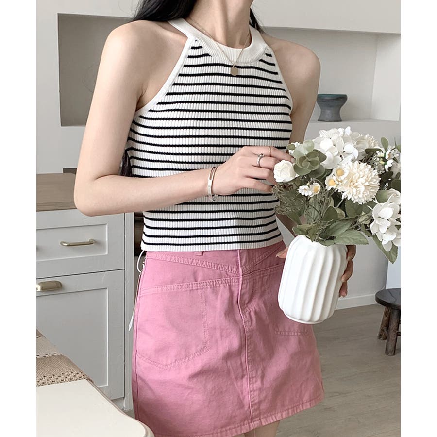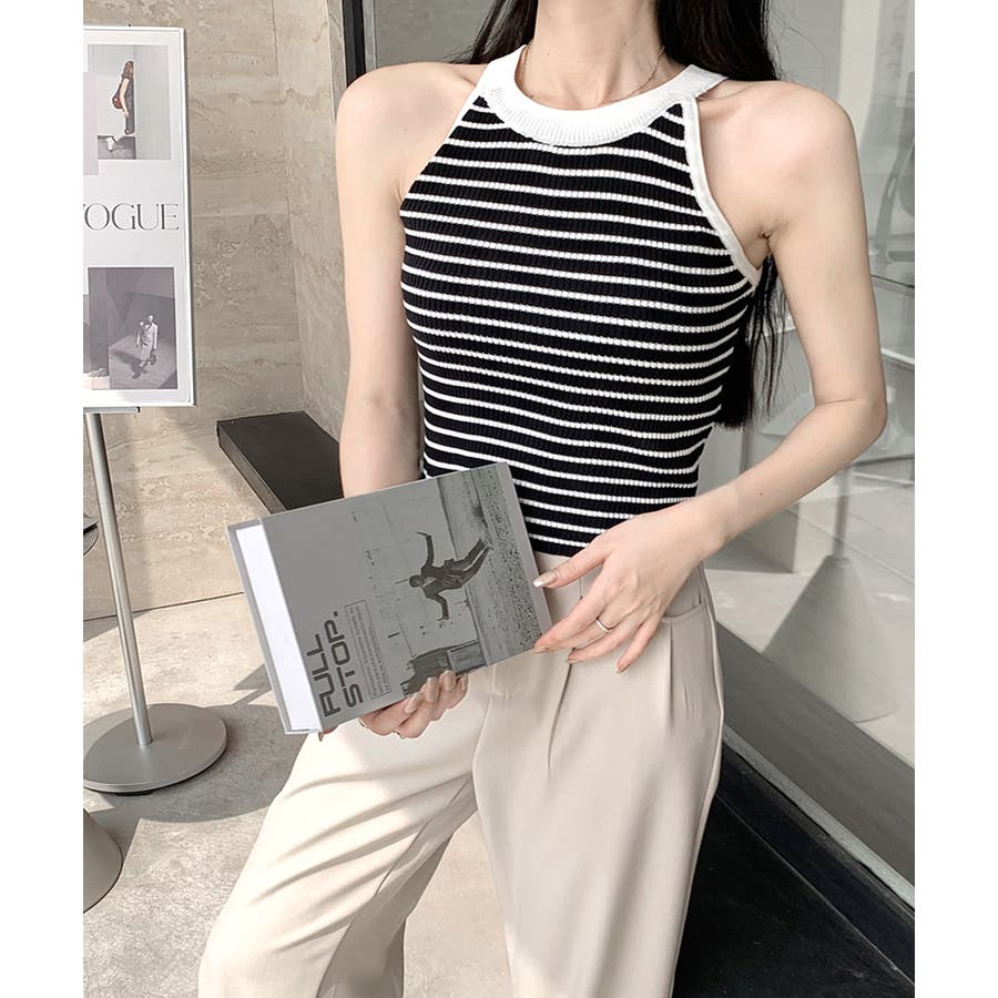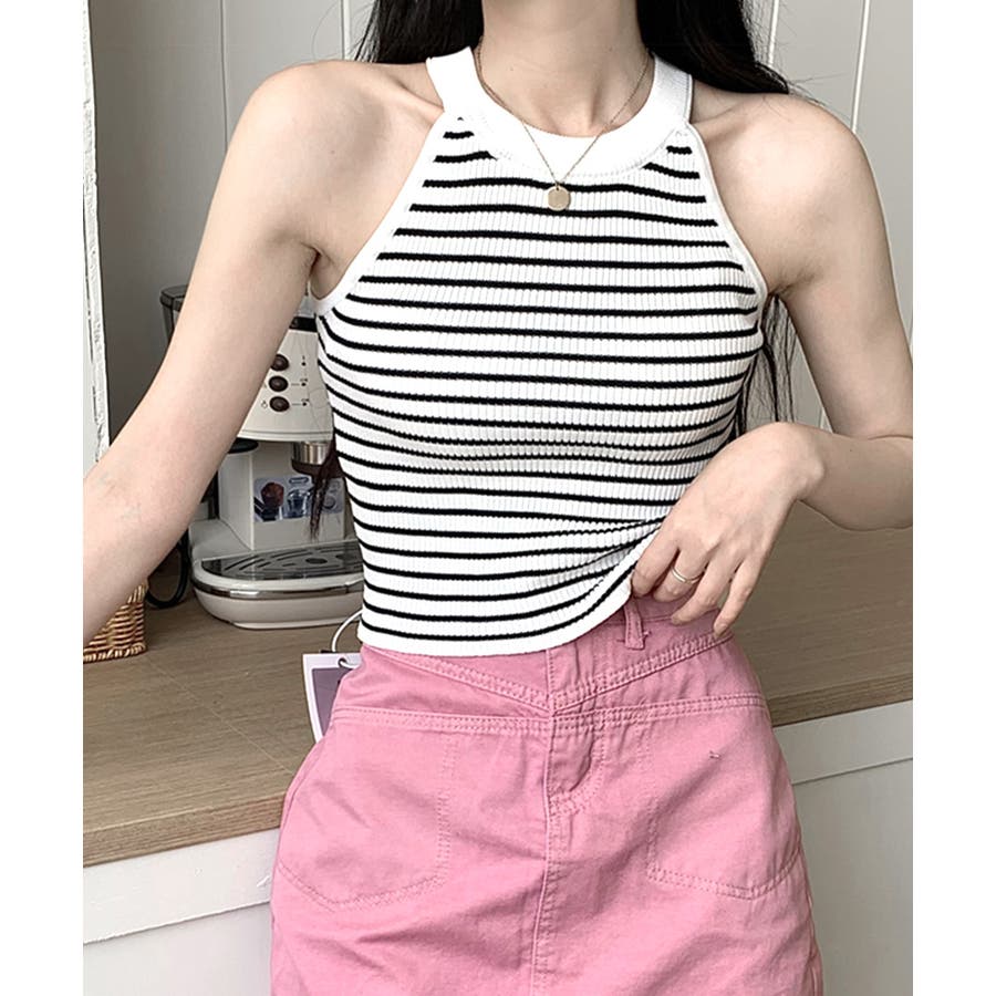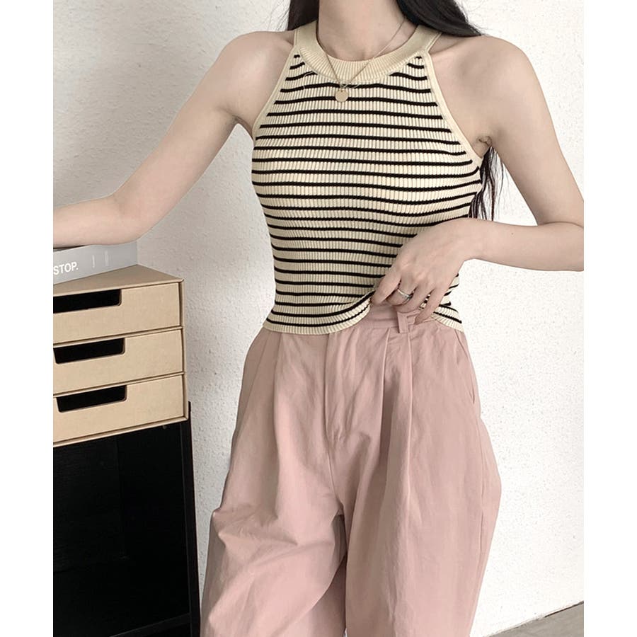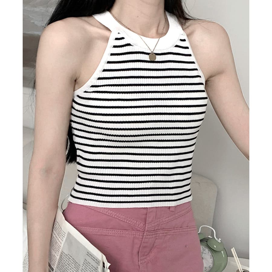 ホルターネックボーダーニットタンクトップ