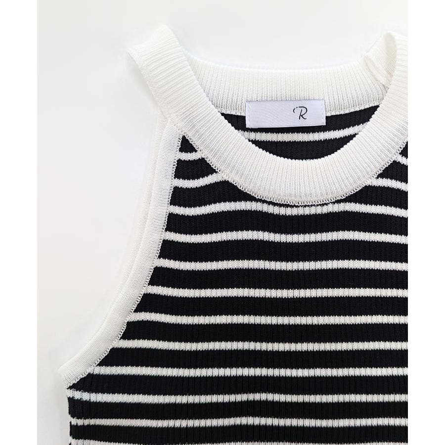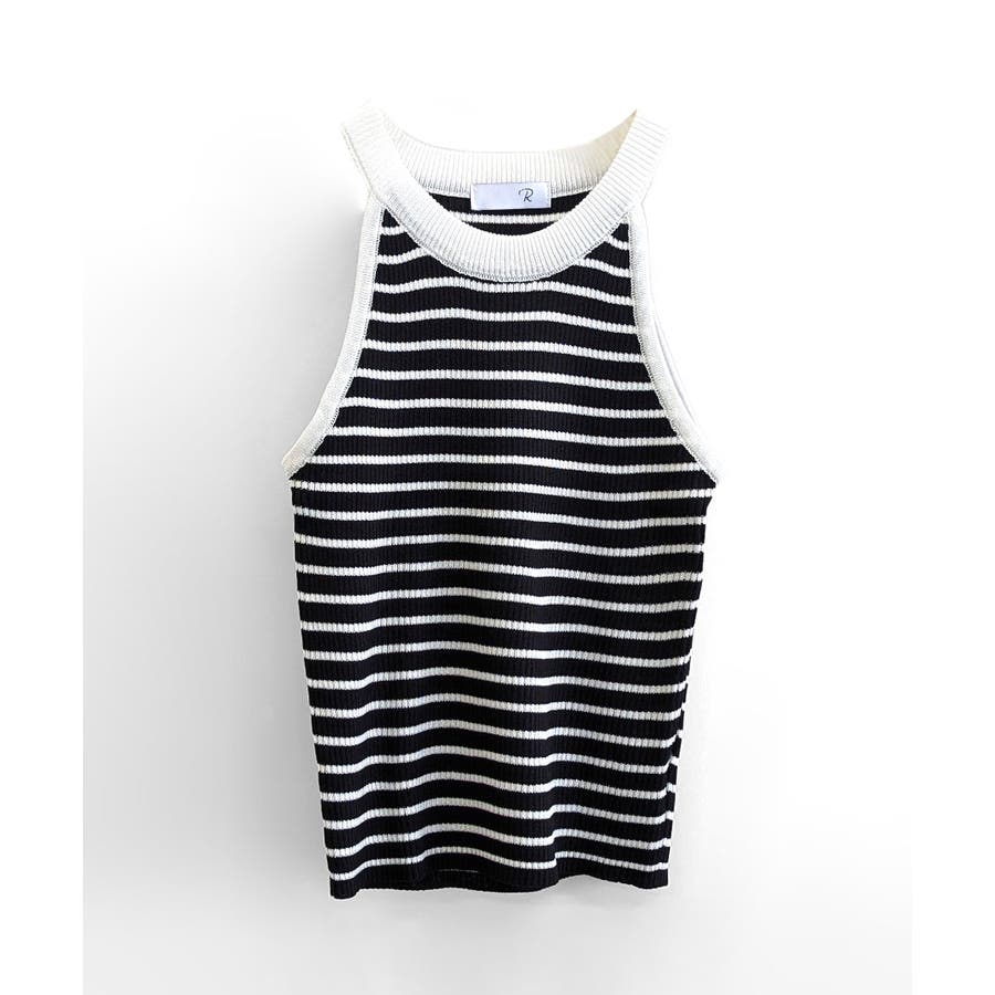 ホルターネックボーダーニットタンクトップ リブニット バイカラー
