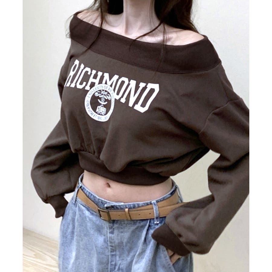 ロゴプリントオフショルトレーナー ショート丈 クロップド丈