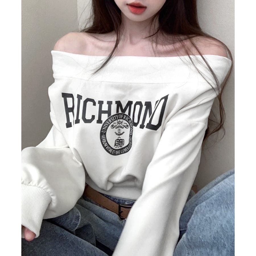 ヘルシーな肌見せが叶うオフショルロゴトレーナー。