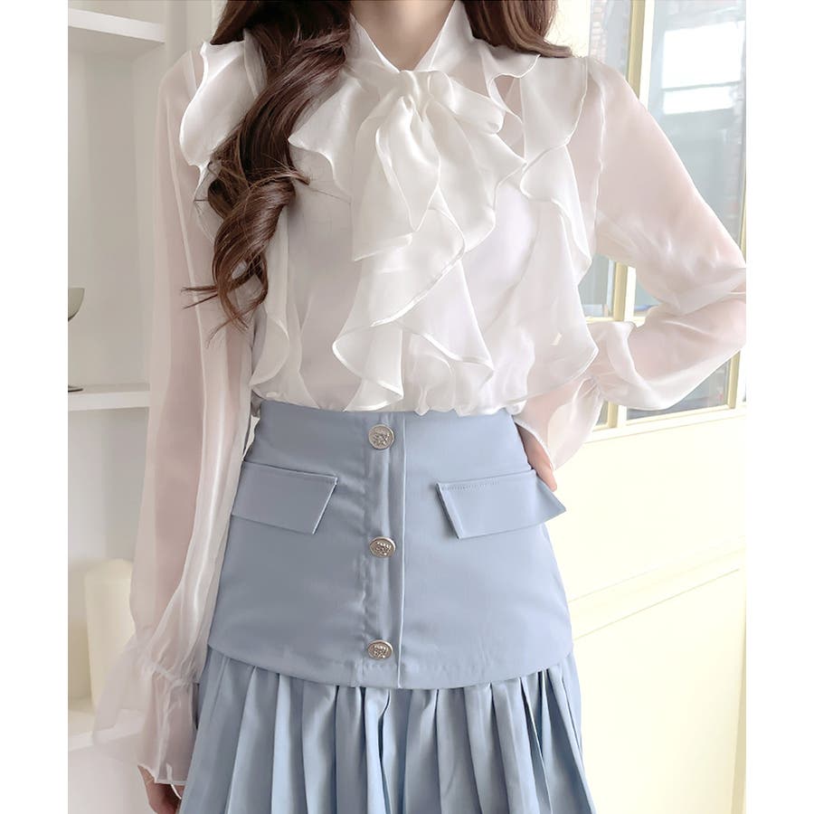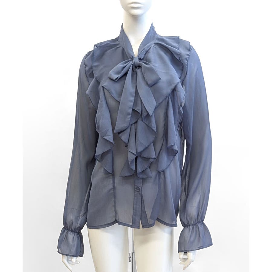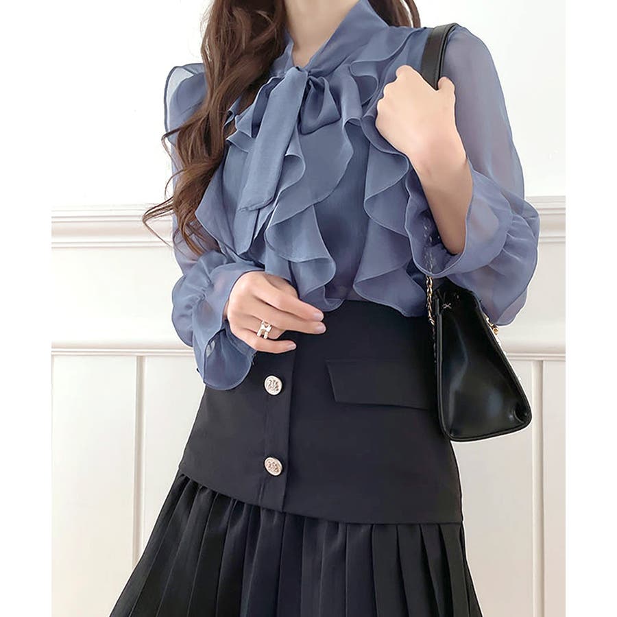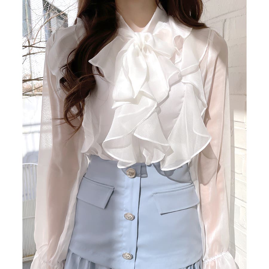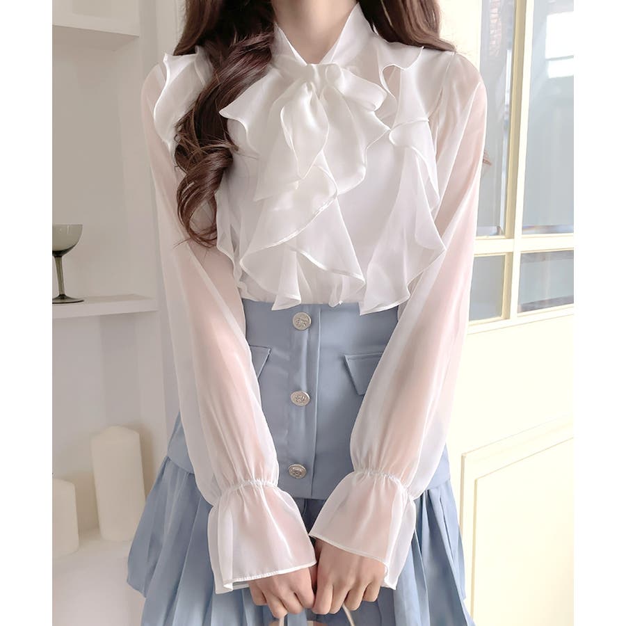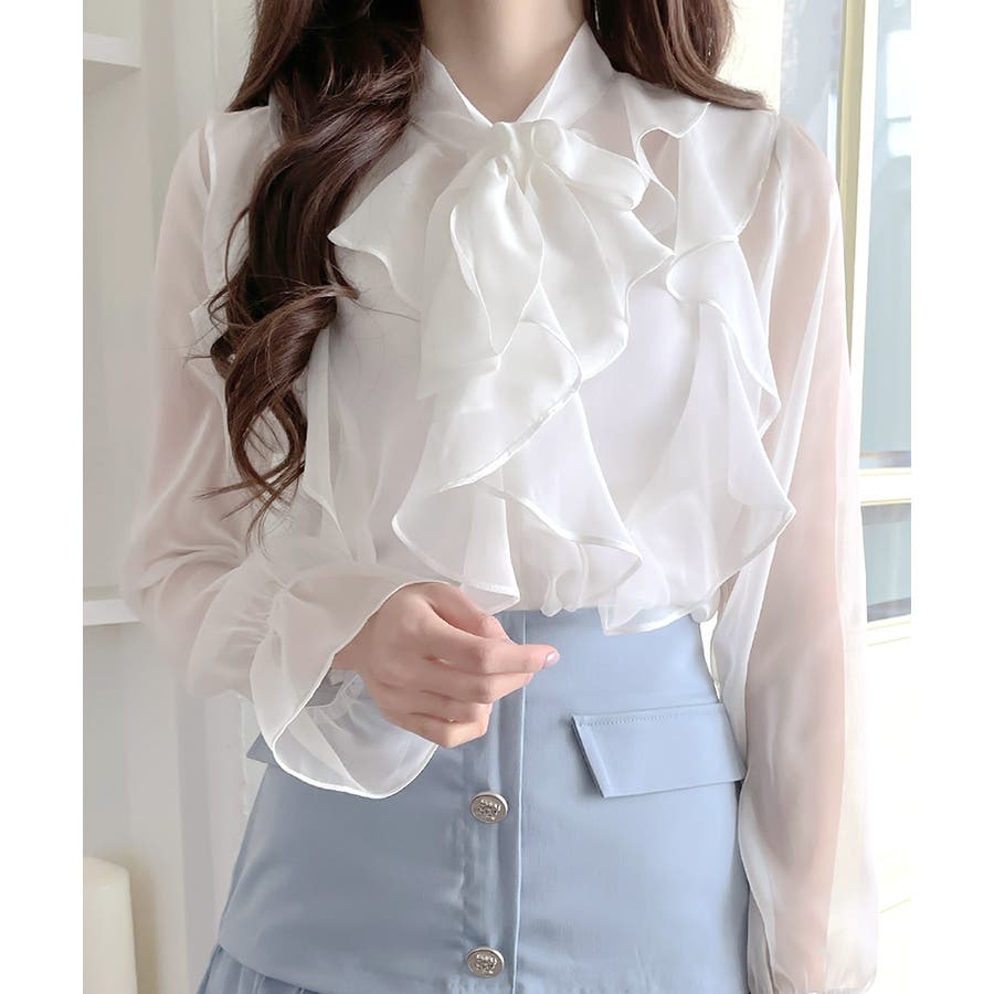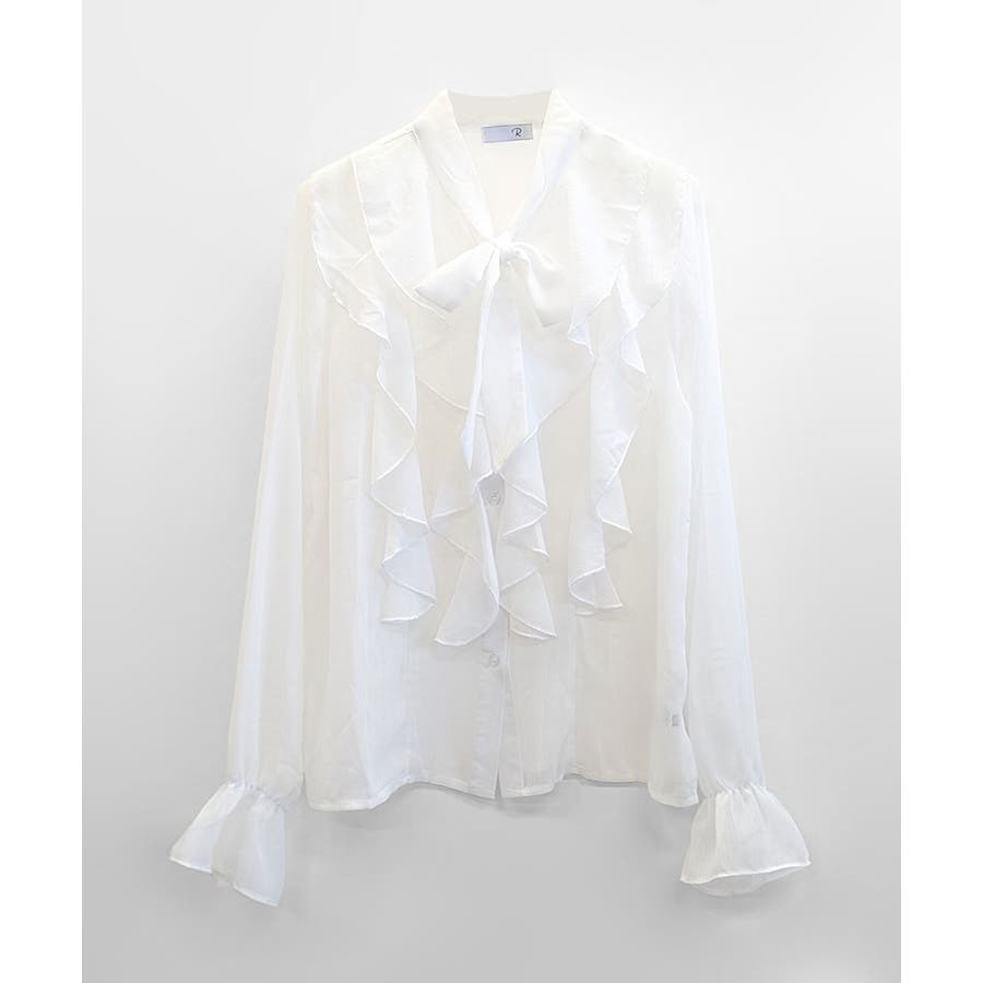 フリルシアーリボンブラウス ボウタイ ラッフルフリル