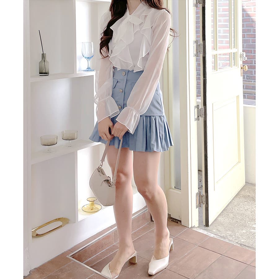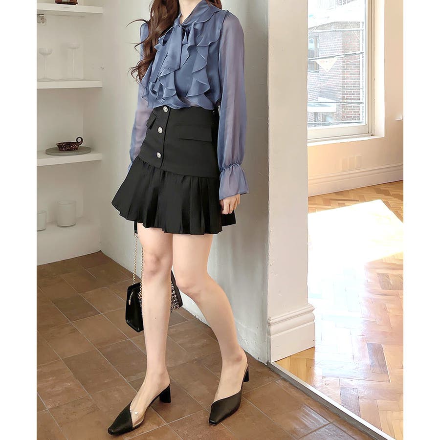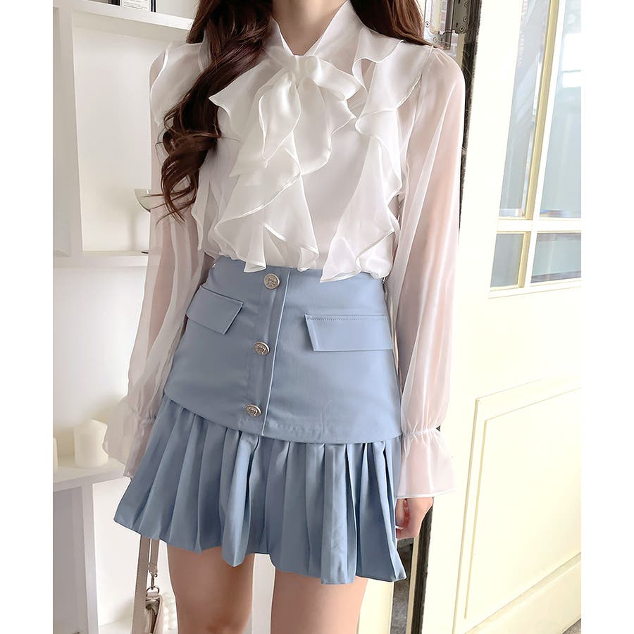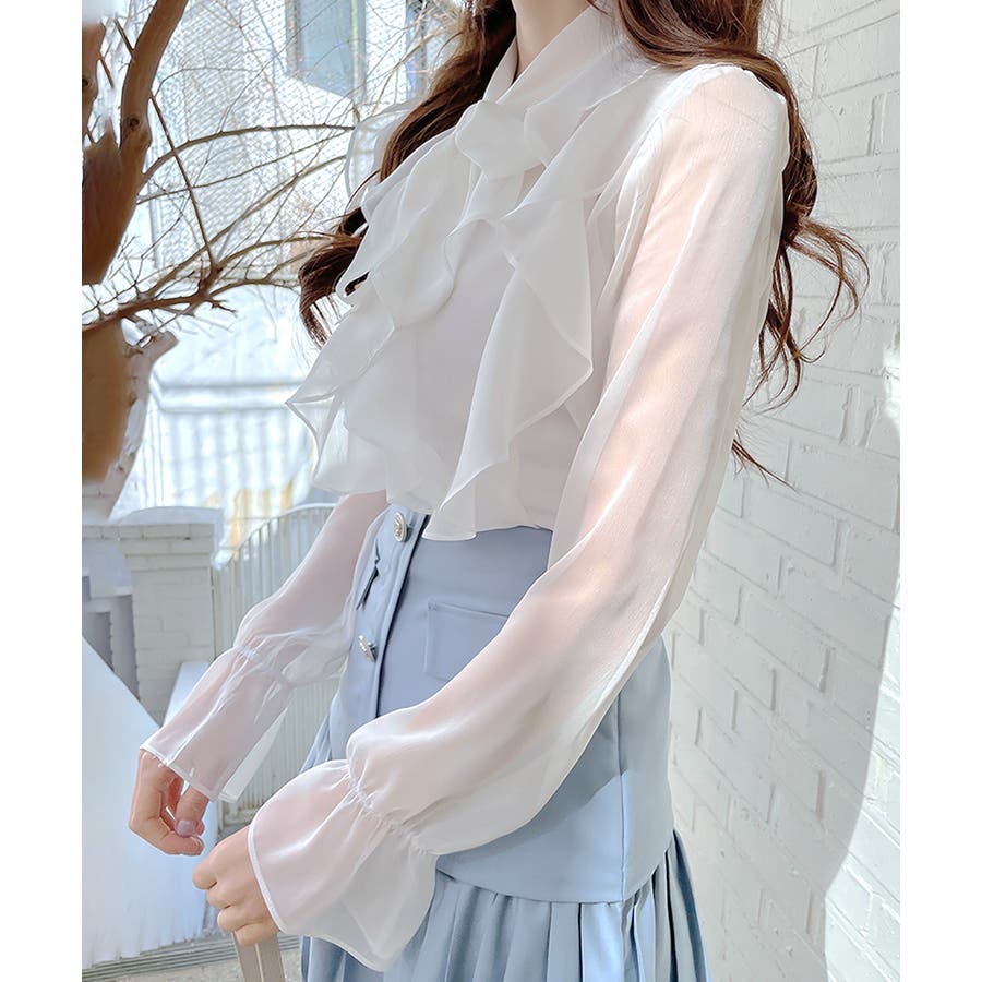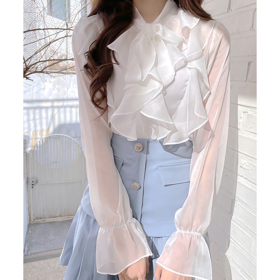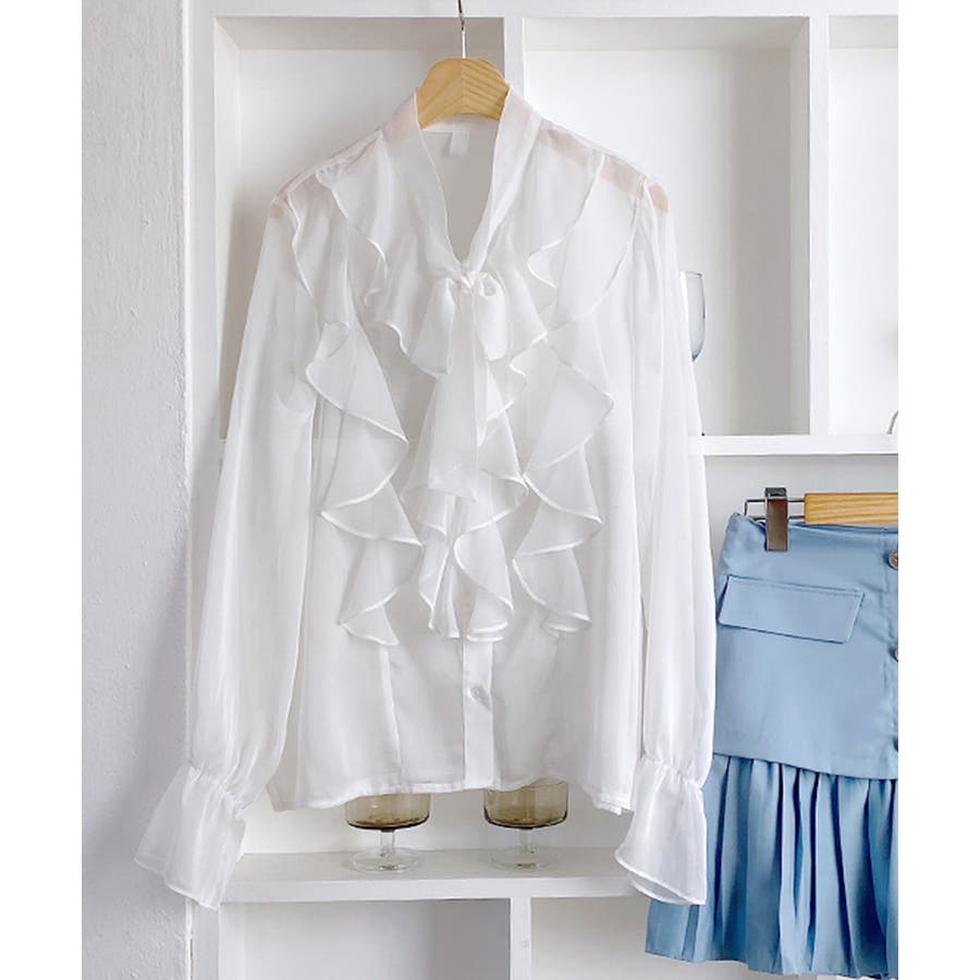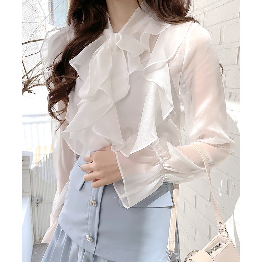 フリルシアーリボンブラウス ボウタイ ラッフルフリル
