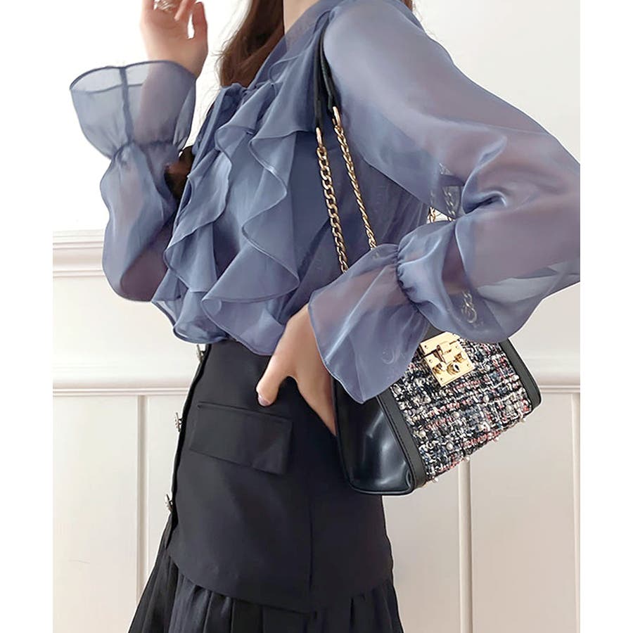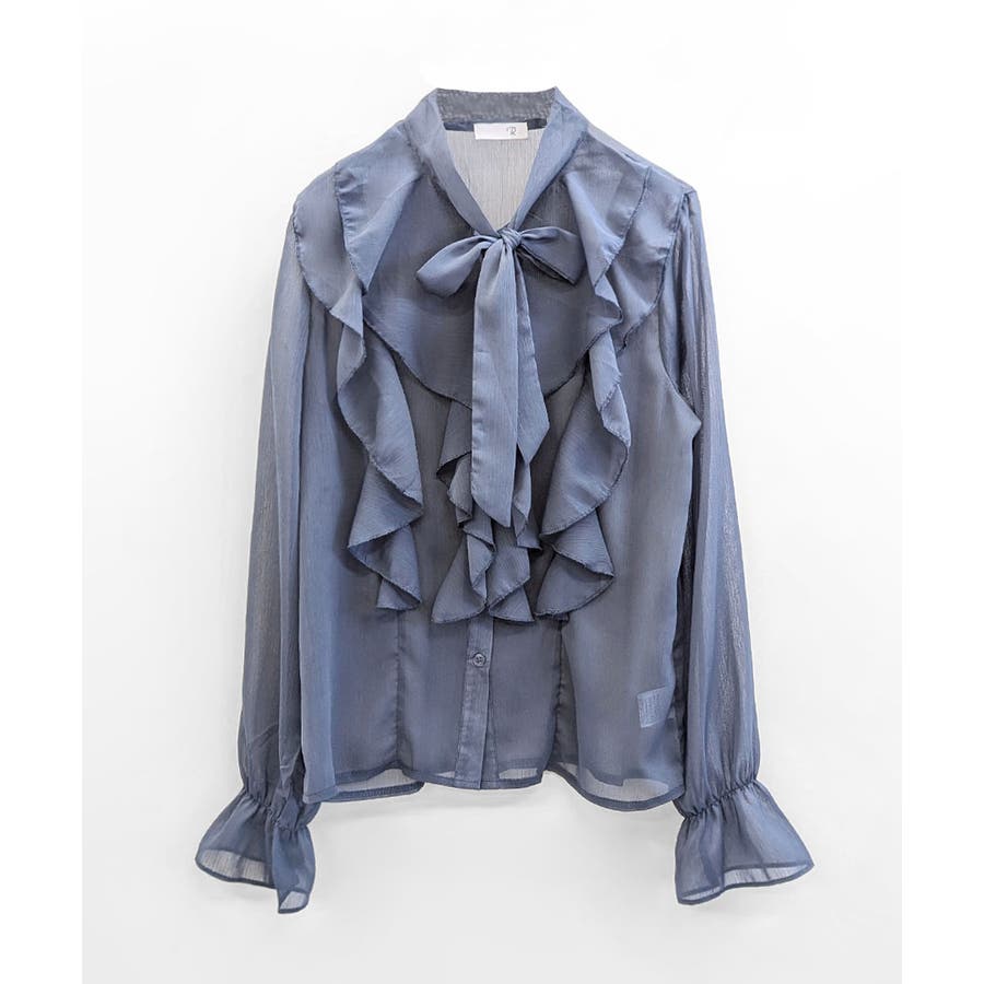 フリルシアーリボンブラウス