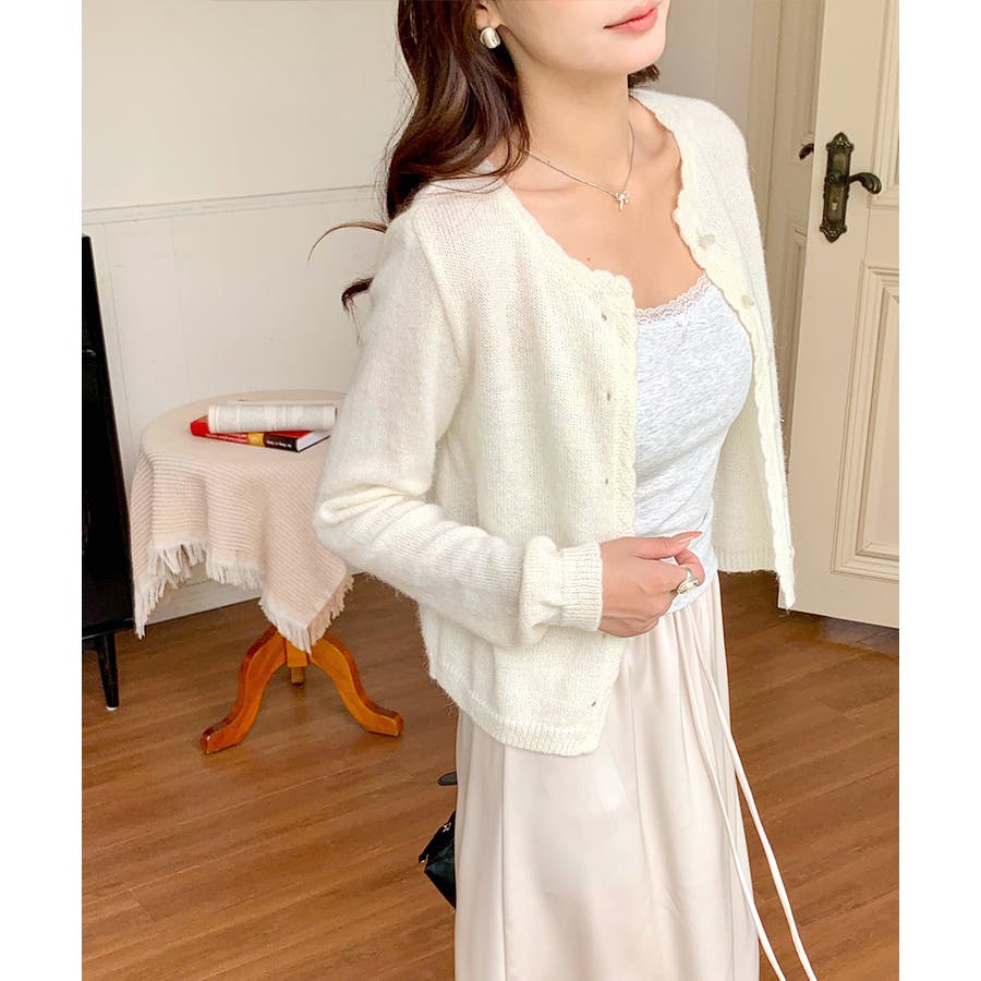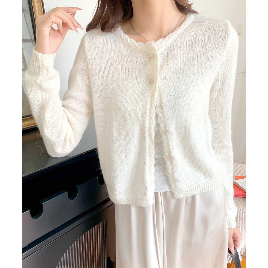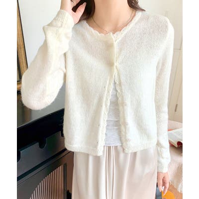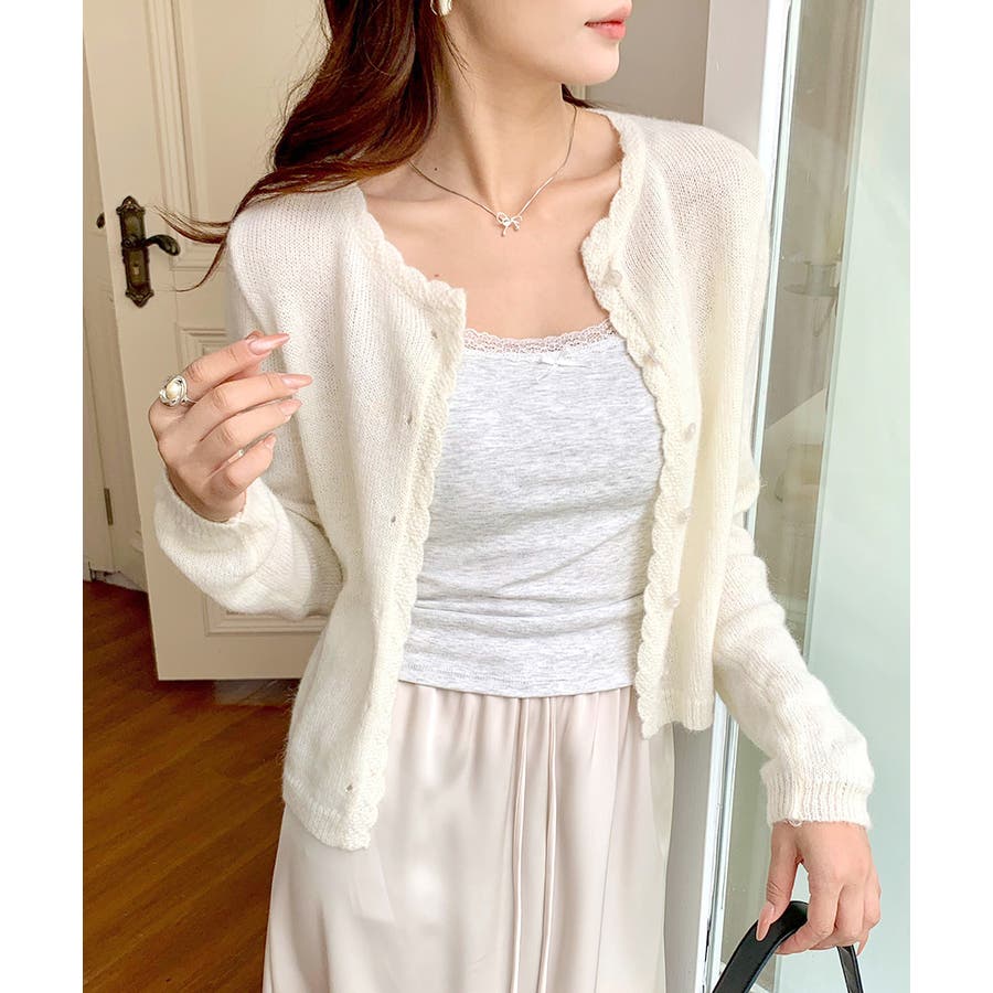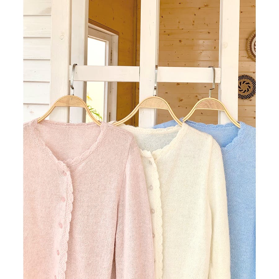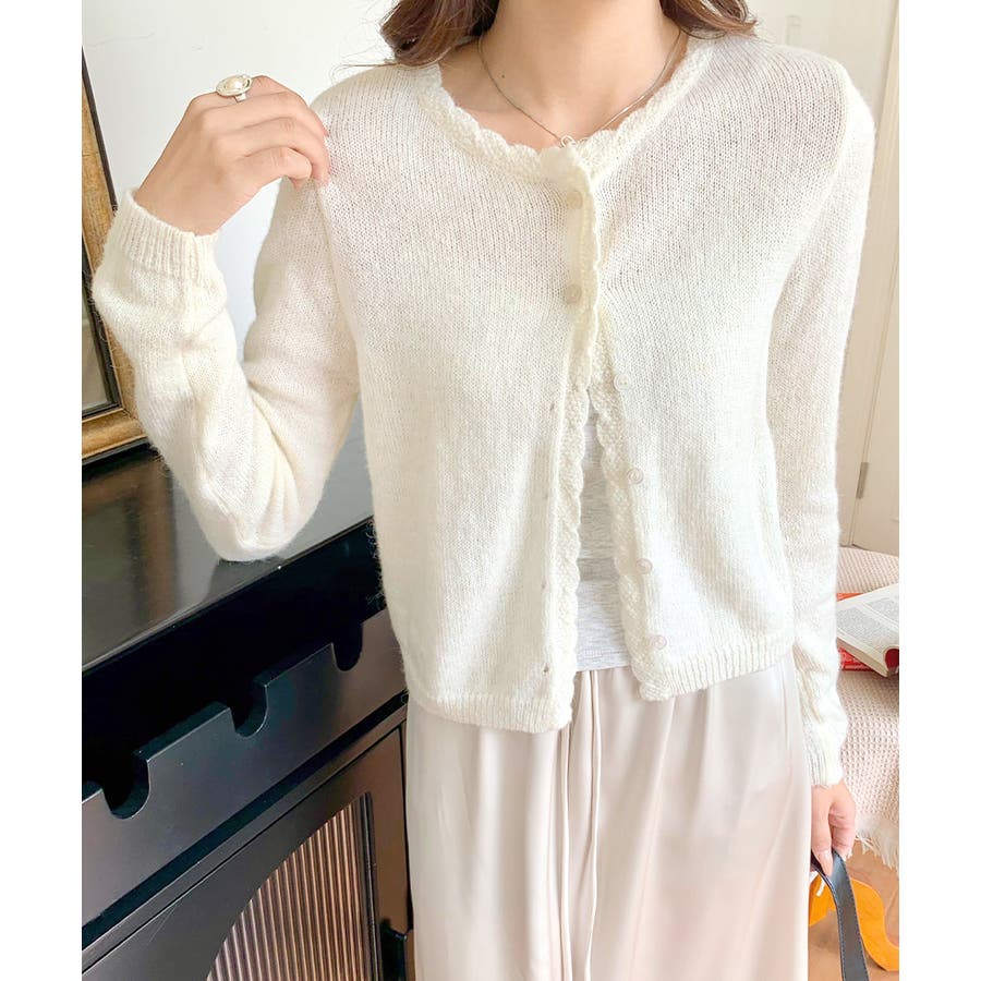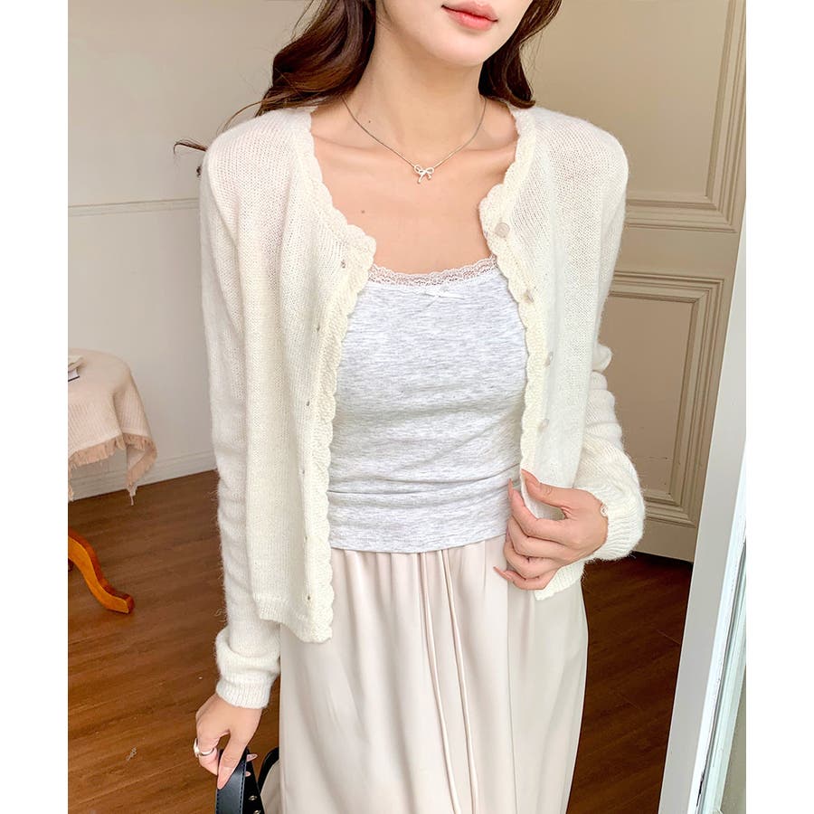 スカラップニットカーディガン ニットカーデ 薄手ニット