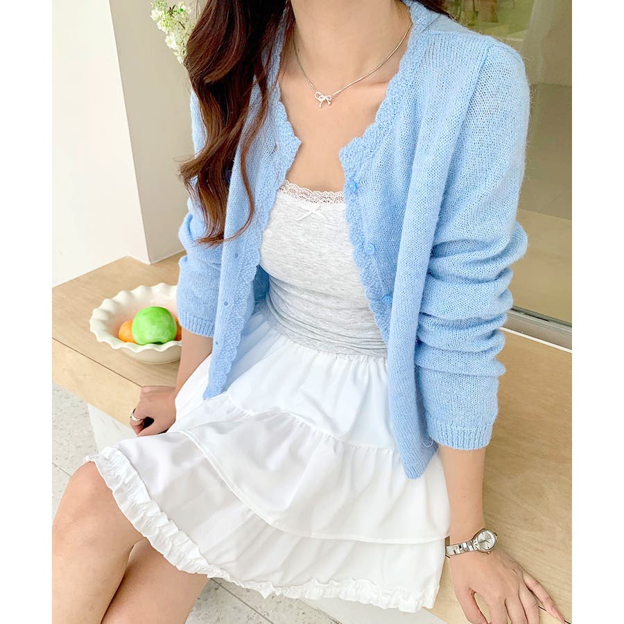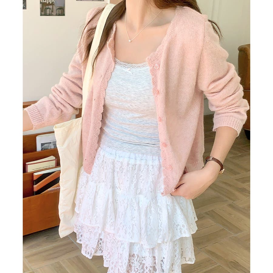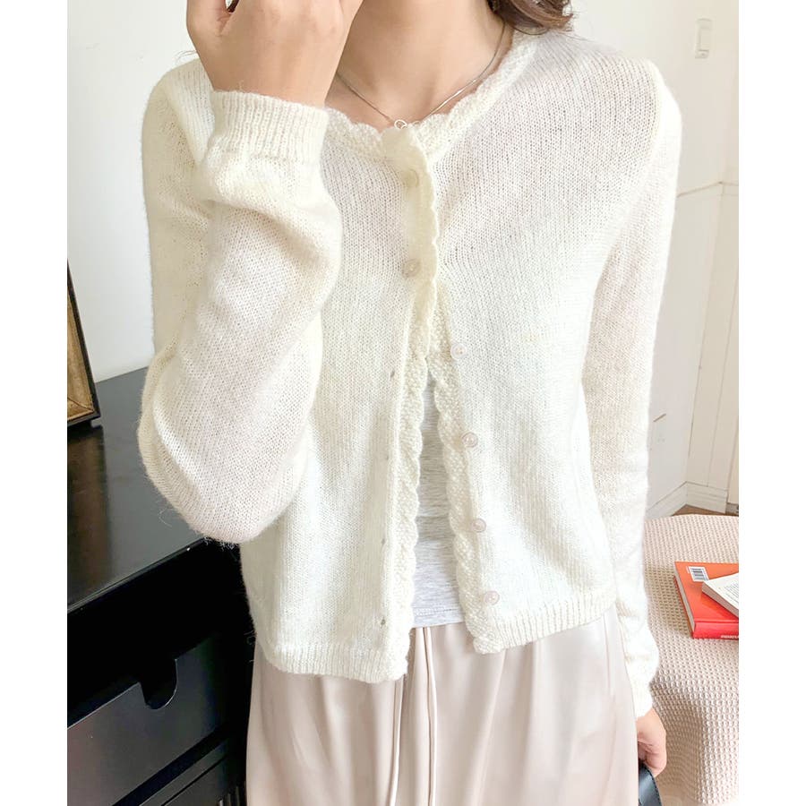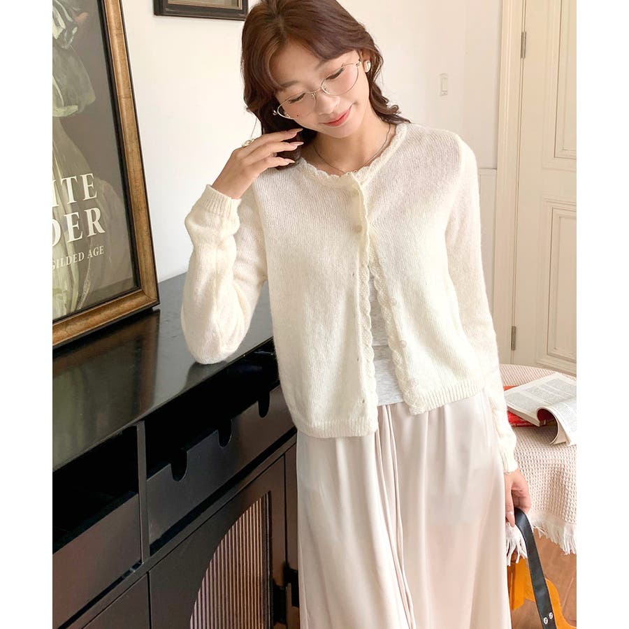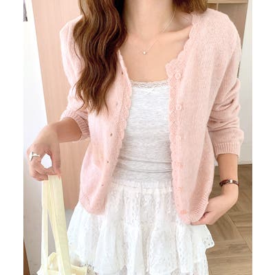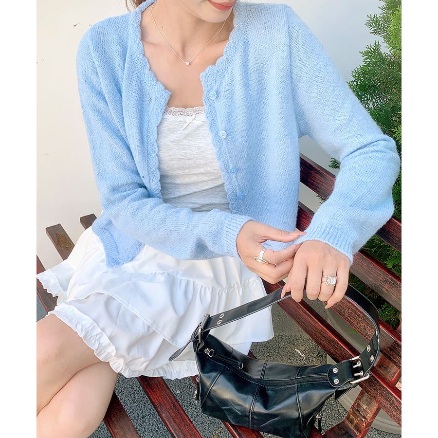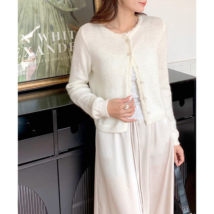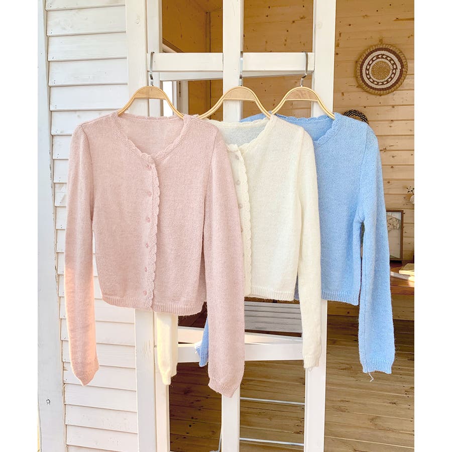 スカラップニットカーディガン ニットカーデ 薄手ニット