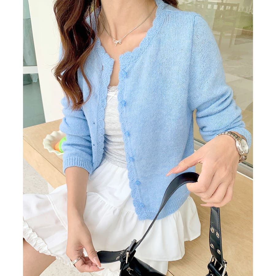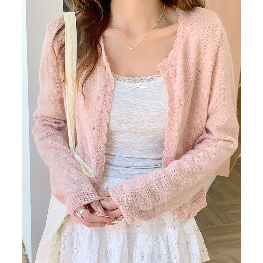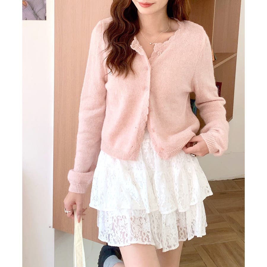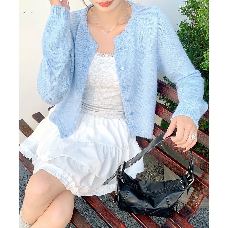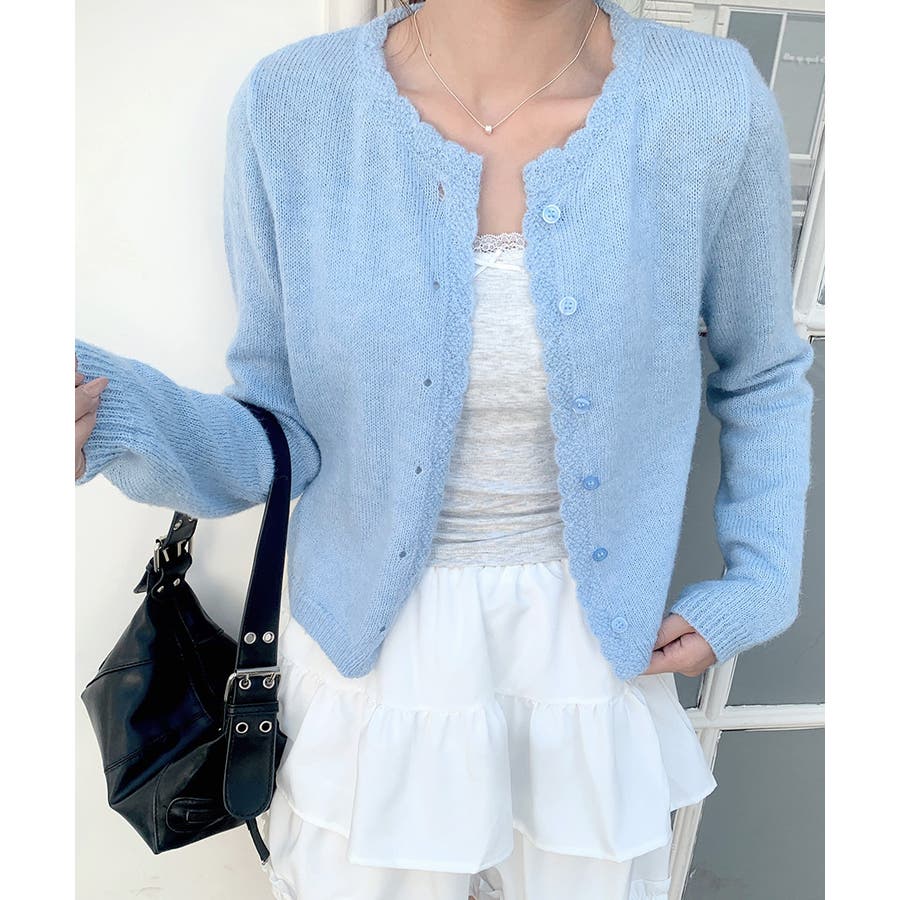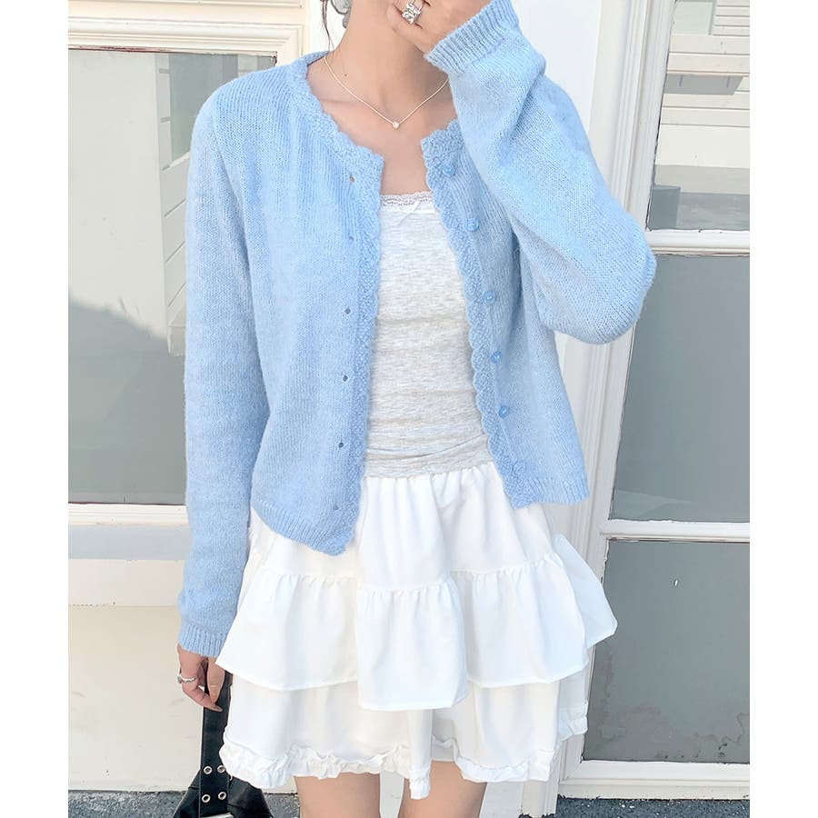 スカラップニットカーディガン ニットカーデ 薄手ニット