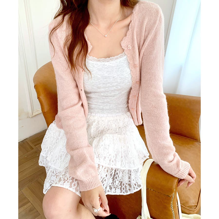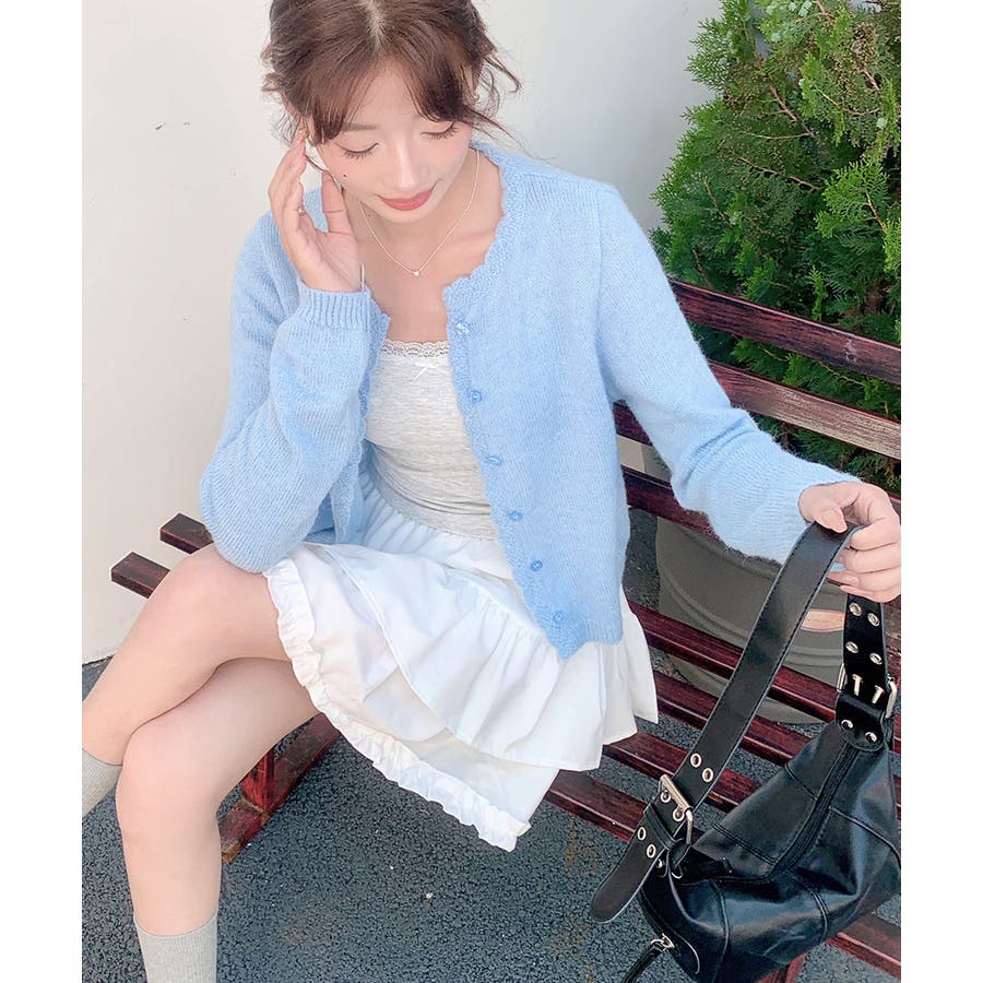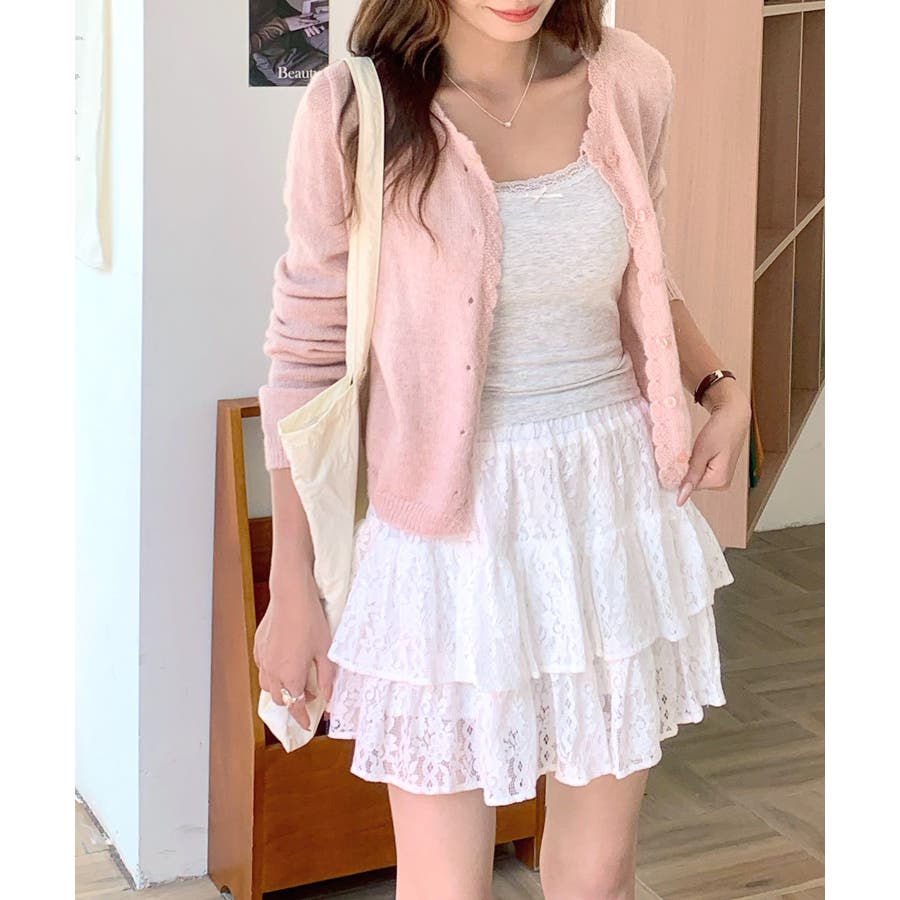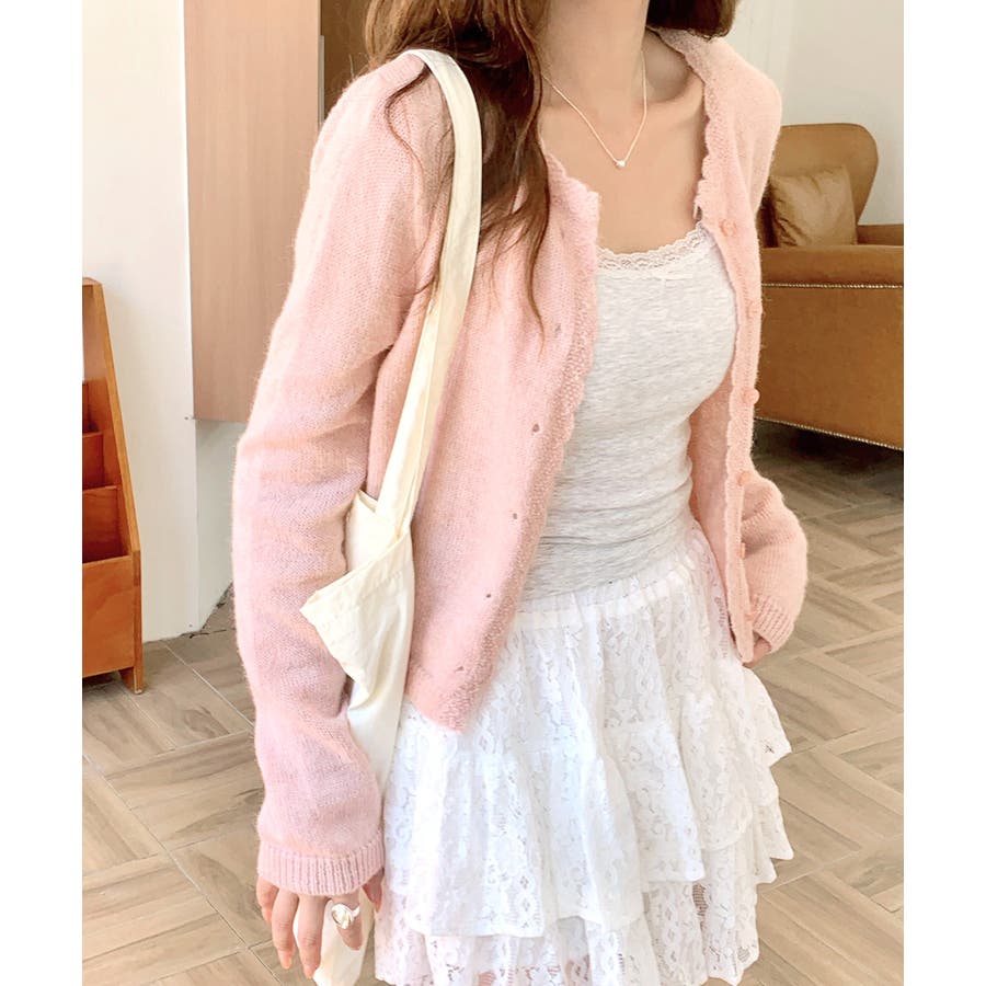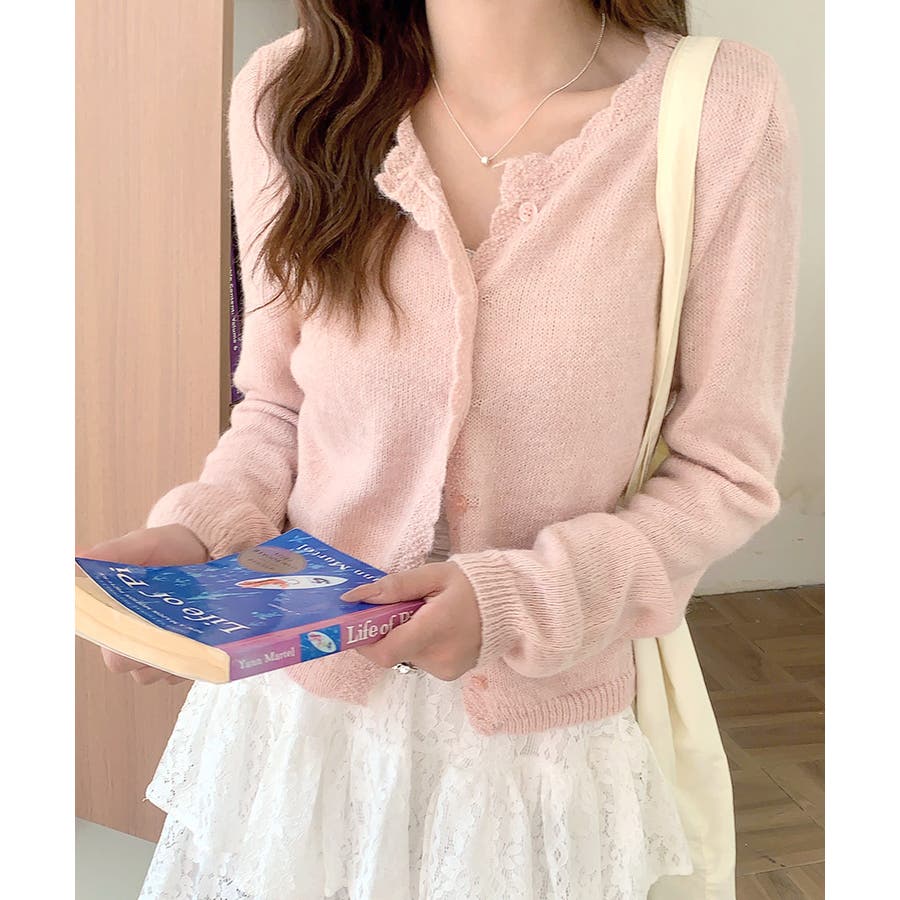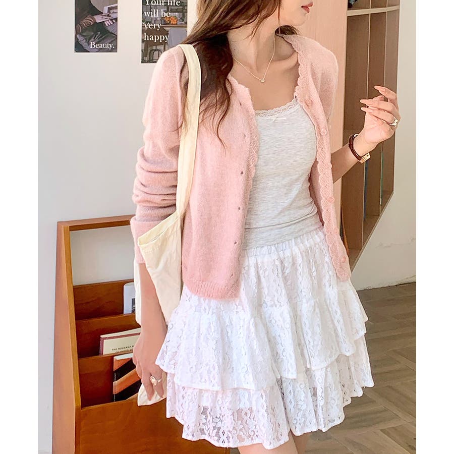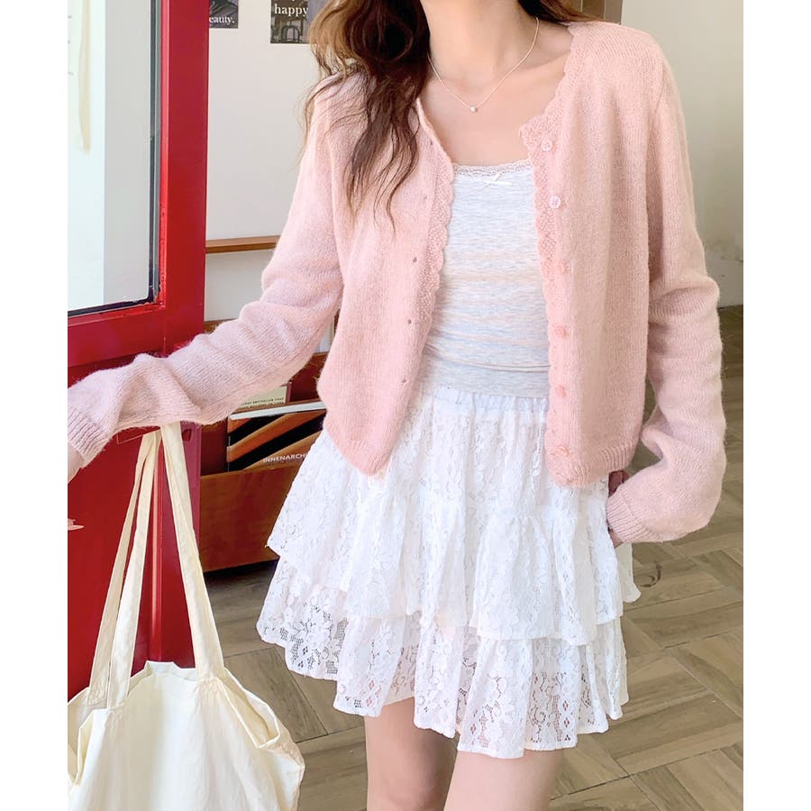 スカラップニットカーディガン ニットカーデ 薄手ニット