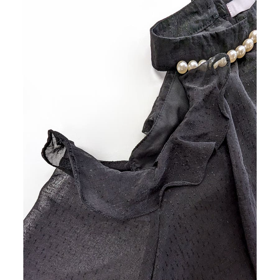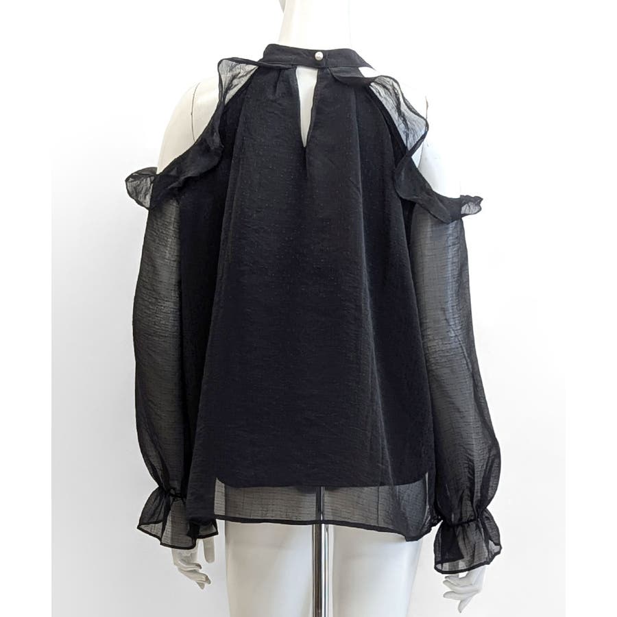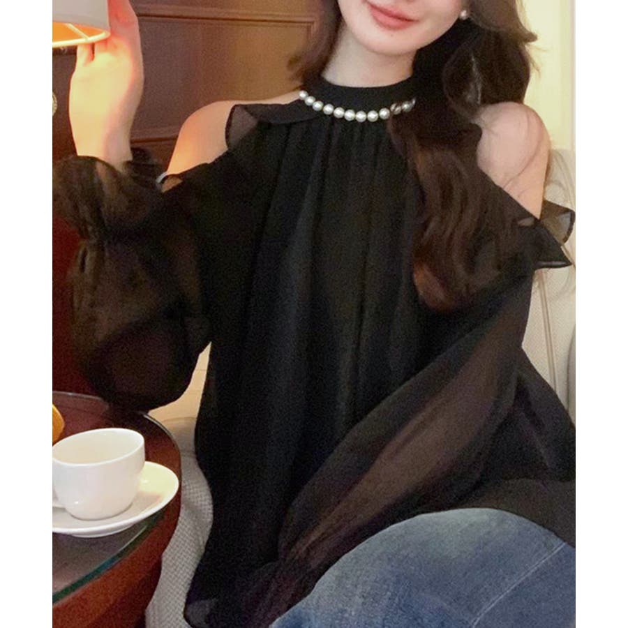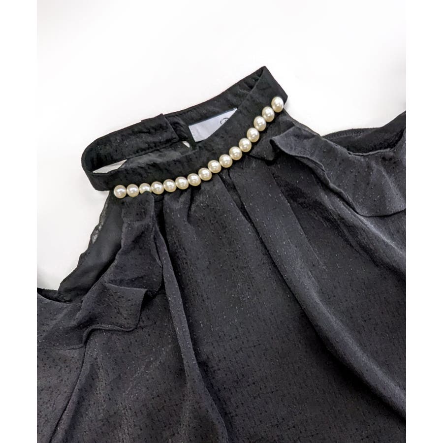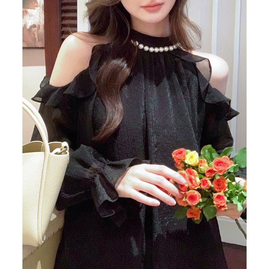 パールネックオープンショルダーシフォンブラウス フリル 肩開き