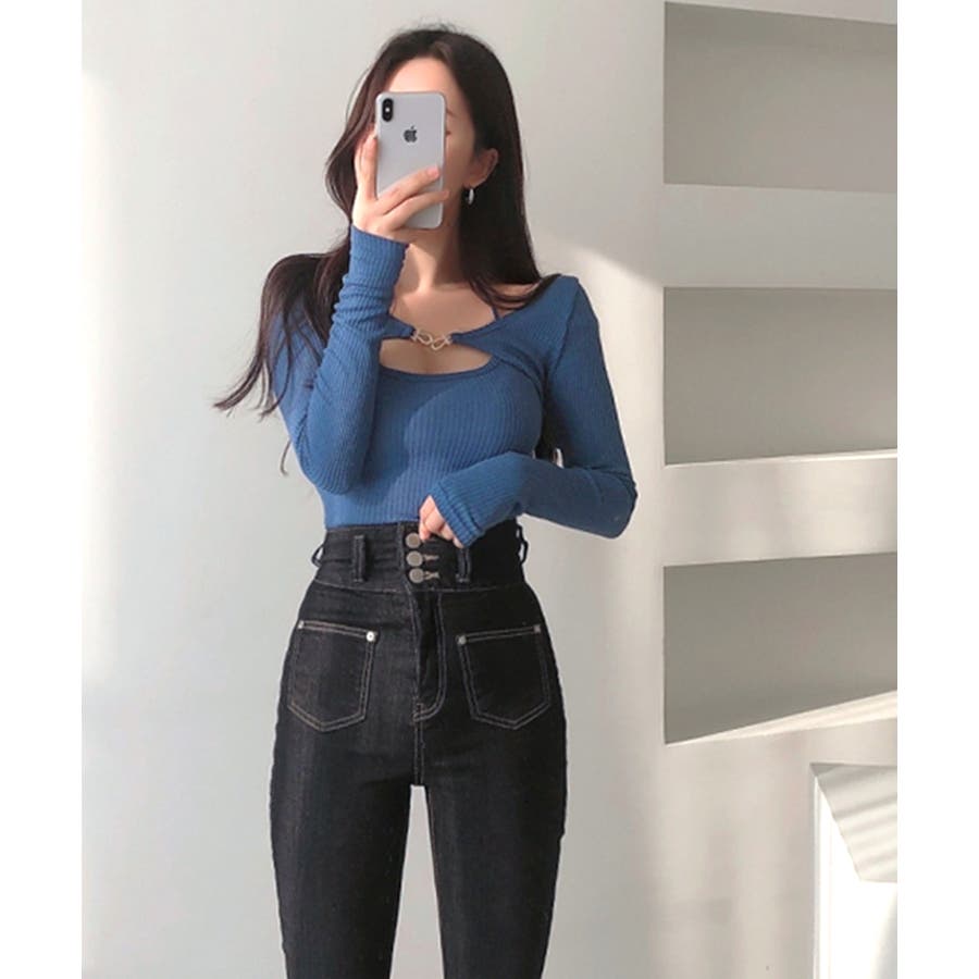 ・ハイウエストボトムと合わせるとよりスタイルアップ。