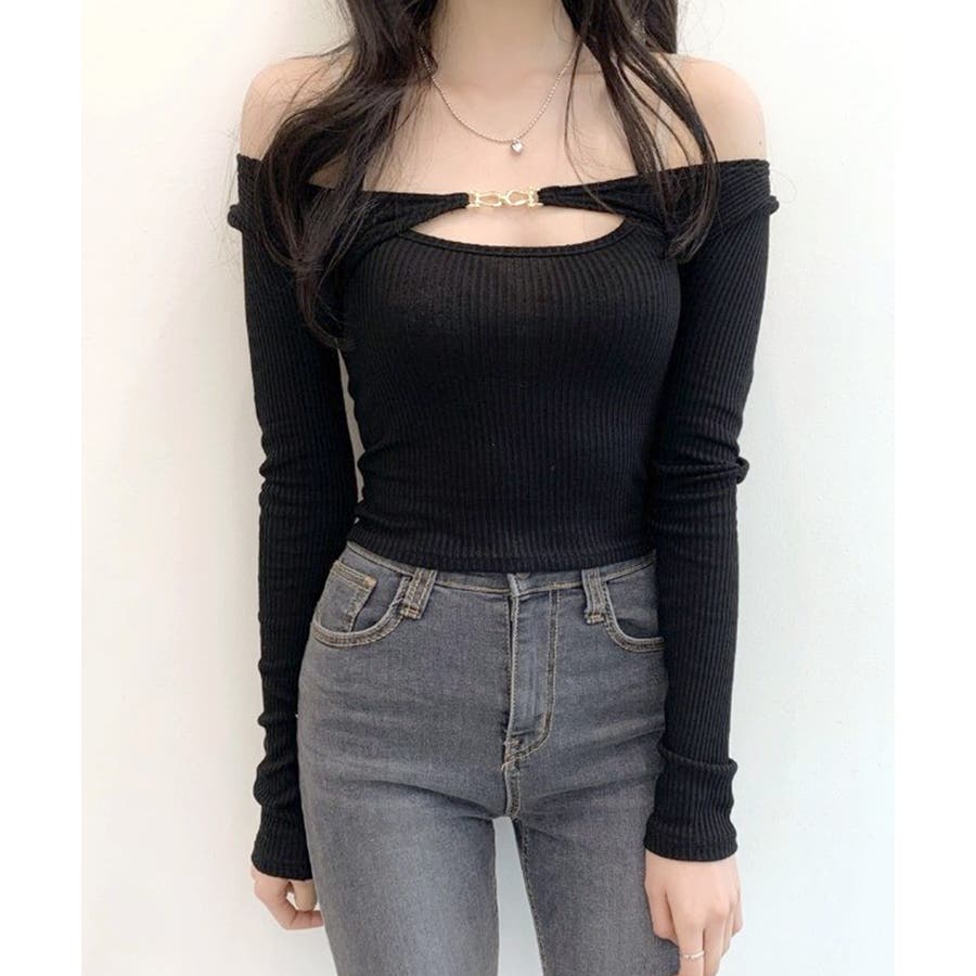 ・デコルテを美しく魅せるオフショル×カットアウトデザイン。