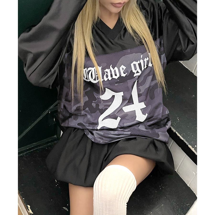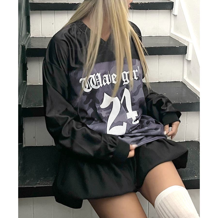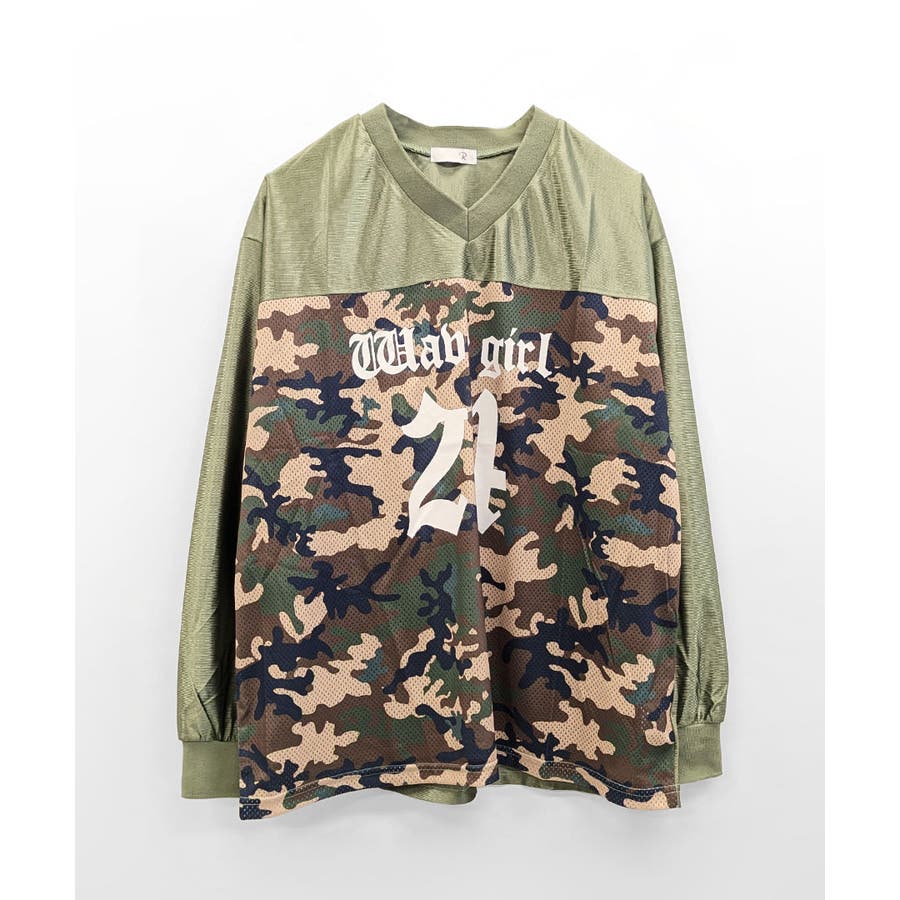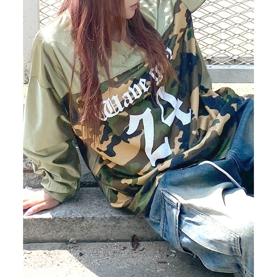 カモフラージュナンバリングトップス。