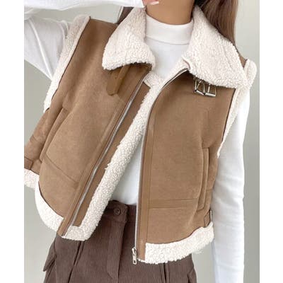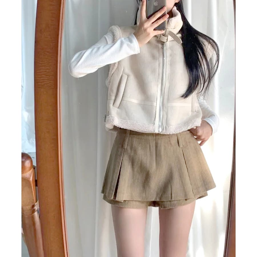 スエードタッチで高見えなフェイクムートンボアベスト。