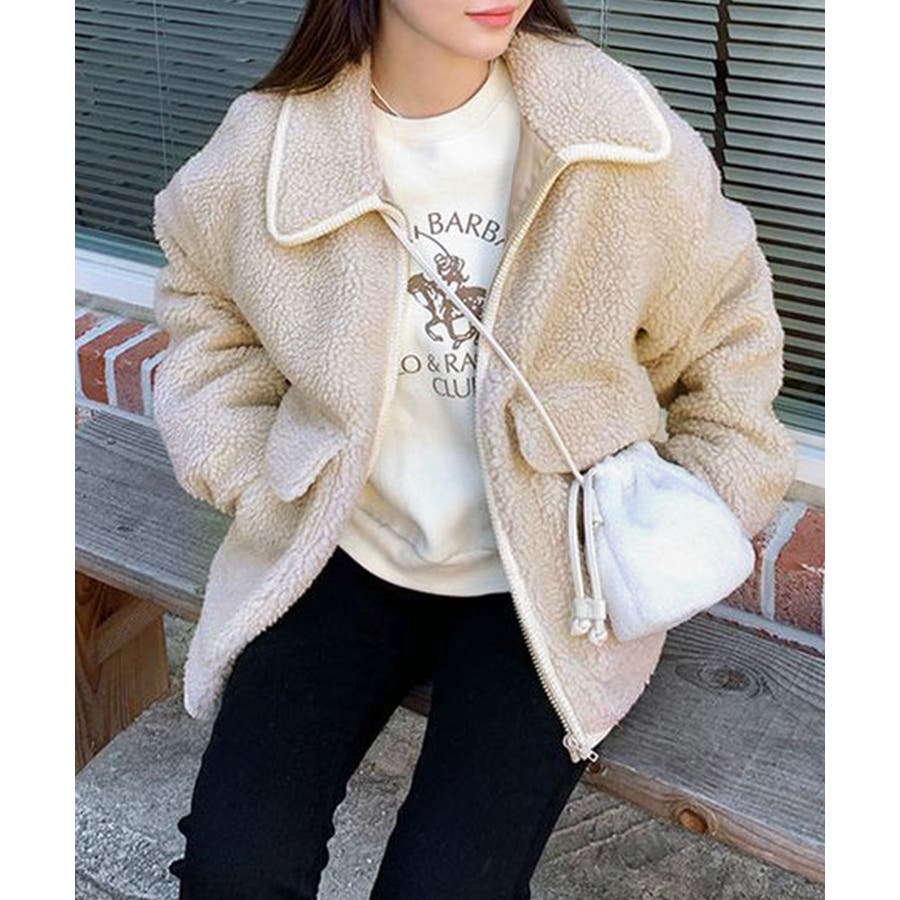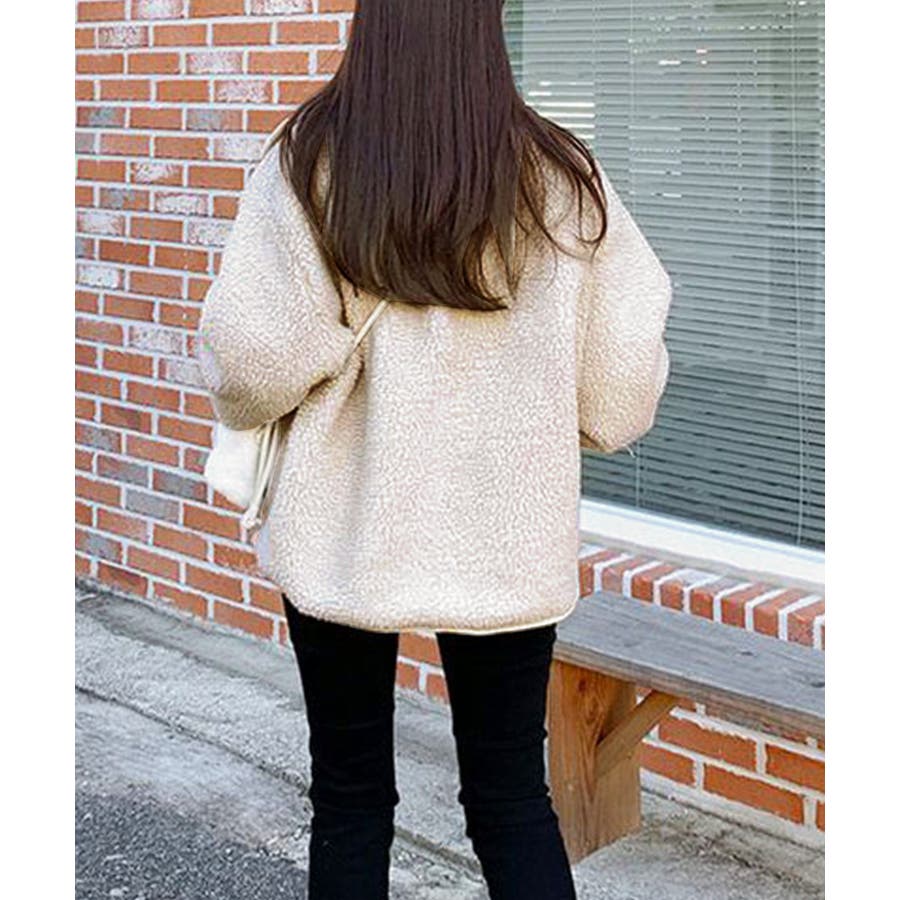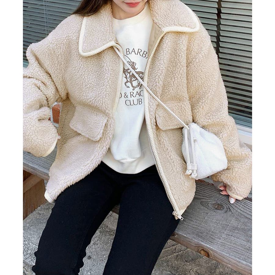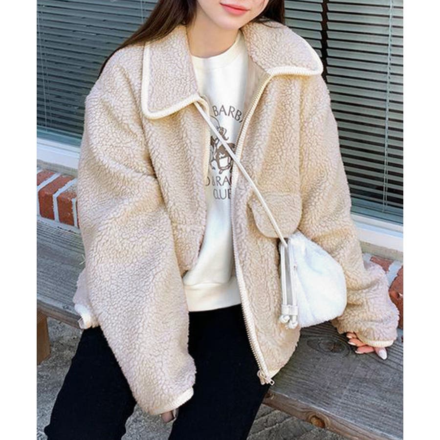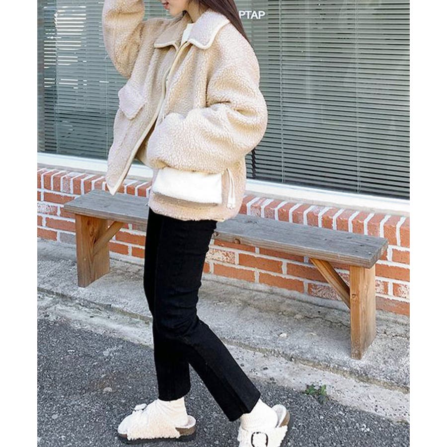 ・ゆったりめのボア素材でゆるっと可愛い冬スタイルを演出。