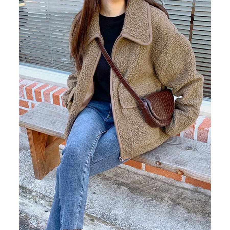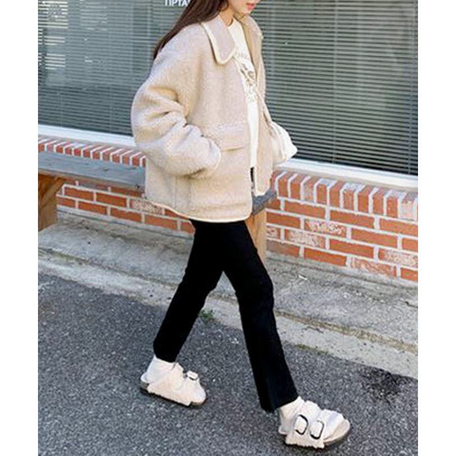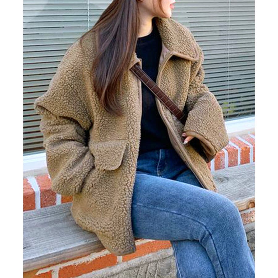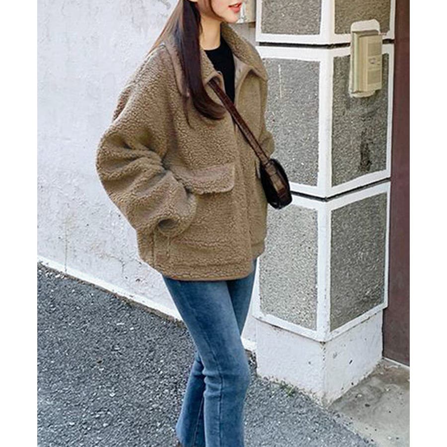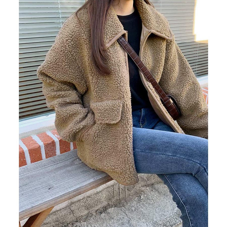 ・ゆったりめのボア素材でゆるっと可愛い冬スタイルを演出。