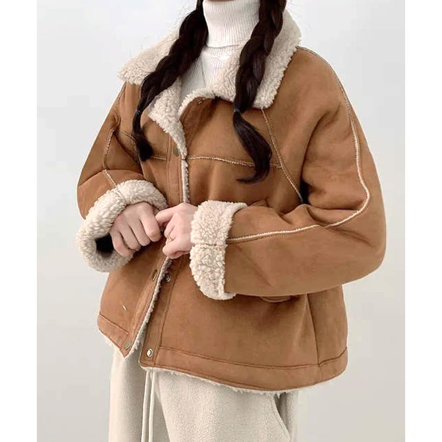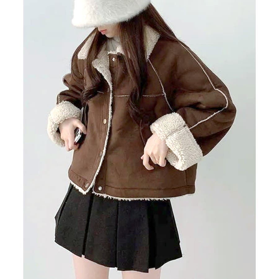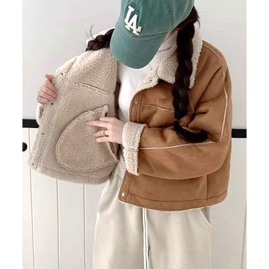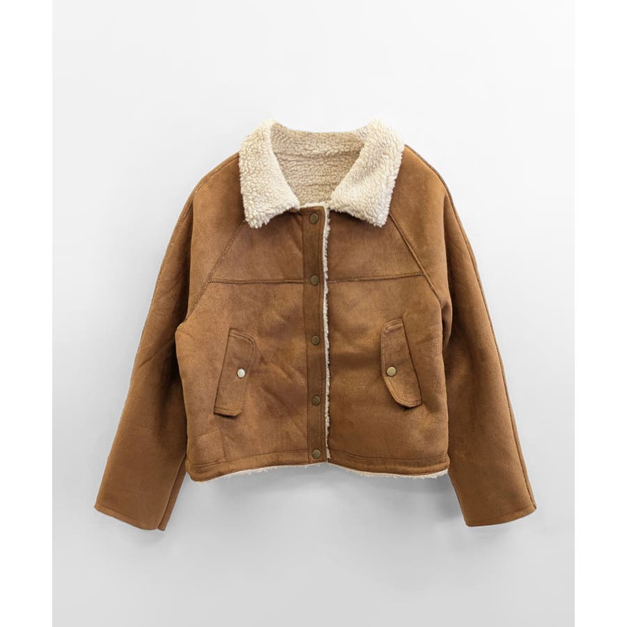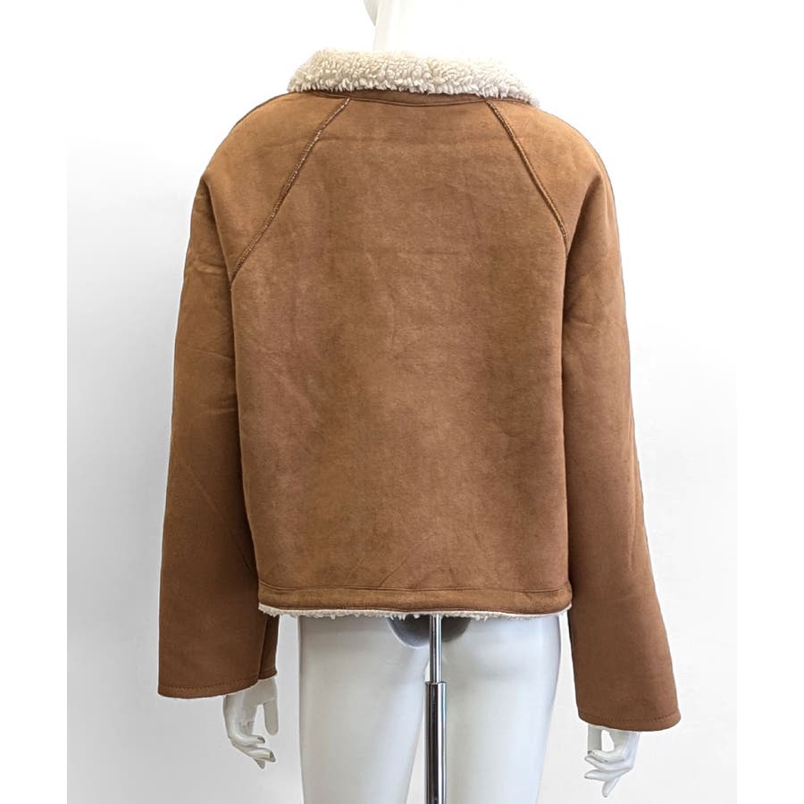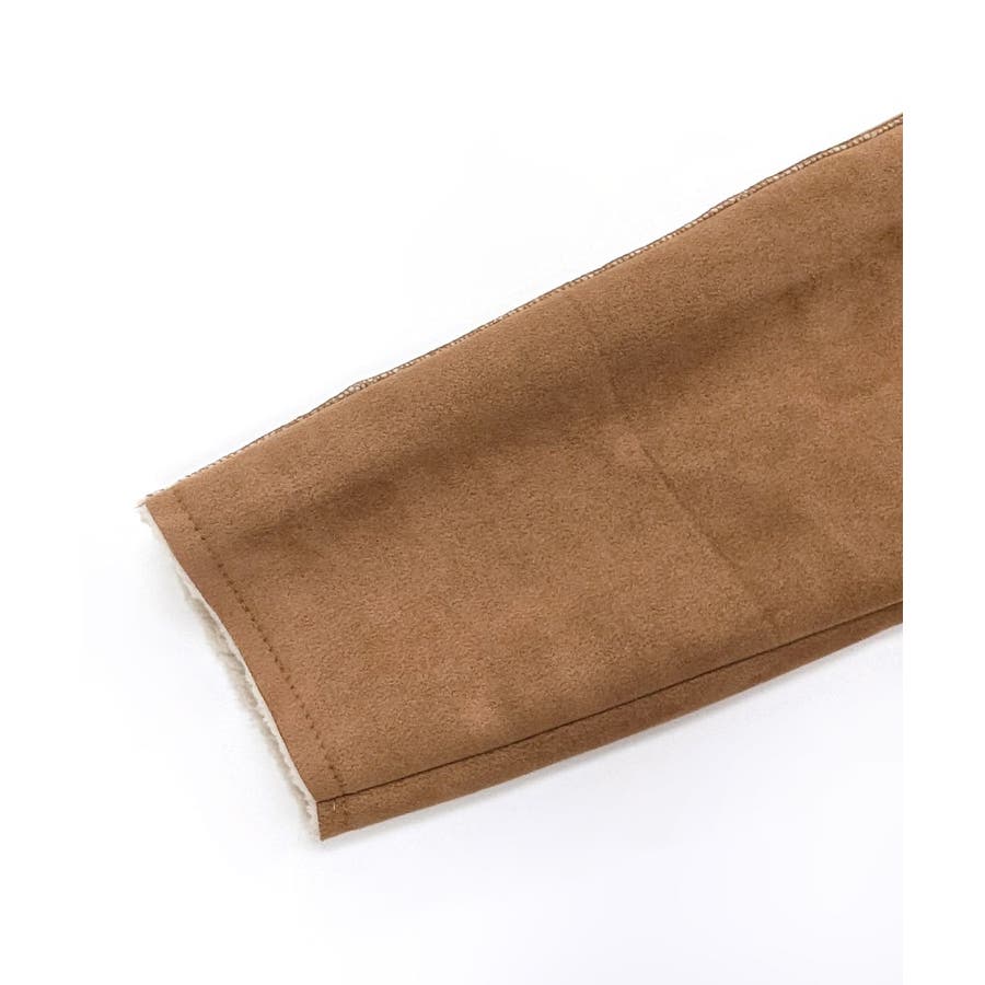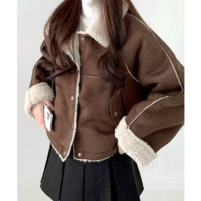 ・やわらかなフェイクムートンにボア裏地を合わせた、シーズンムード溢れるジャケット。