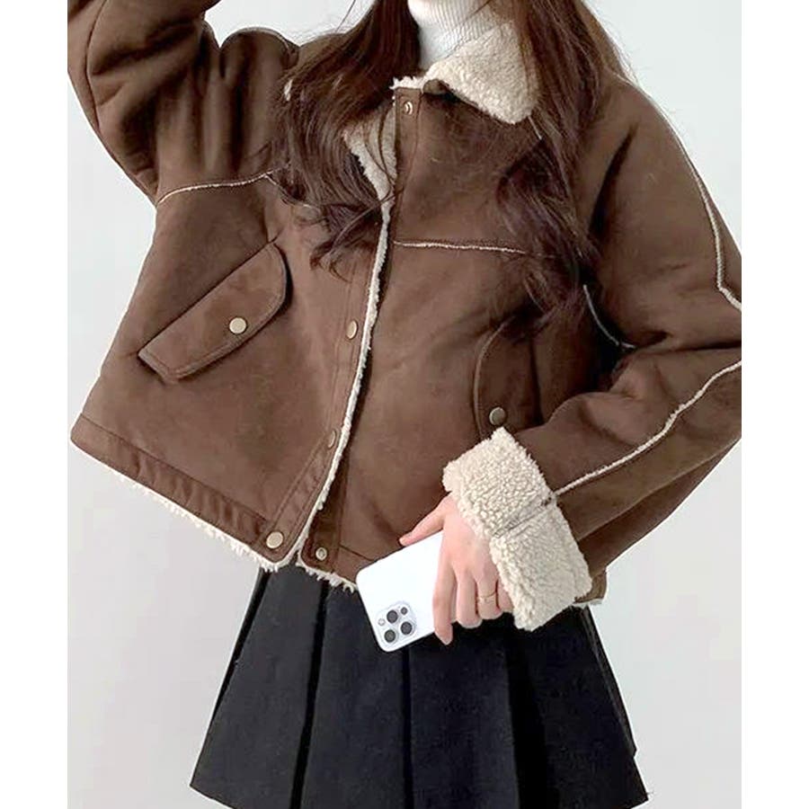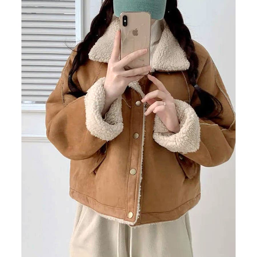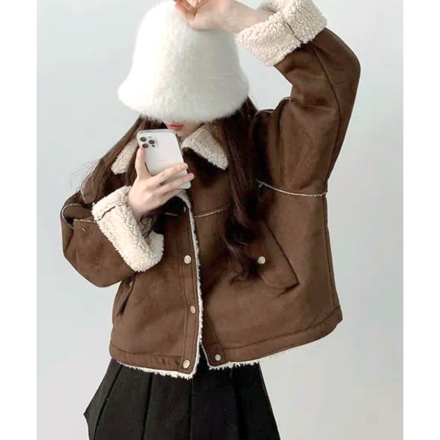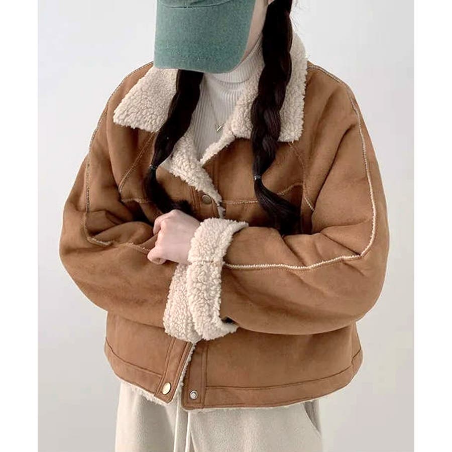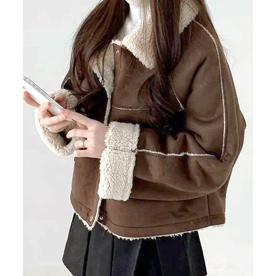 ・やわらかなフェイクムートンにボア裏地を合わせた、シーズンムード溢れるジャケット。